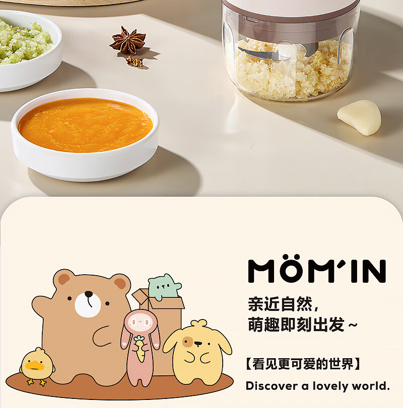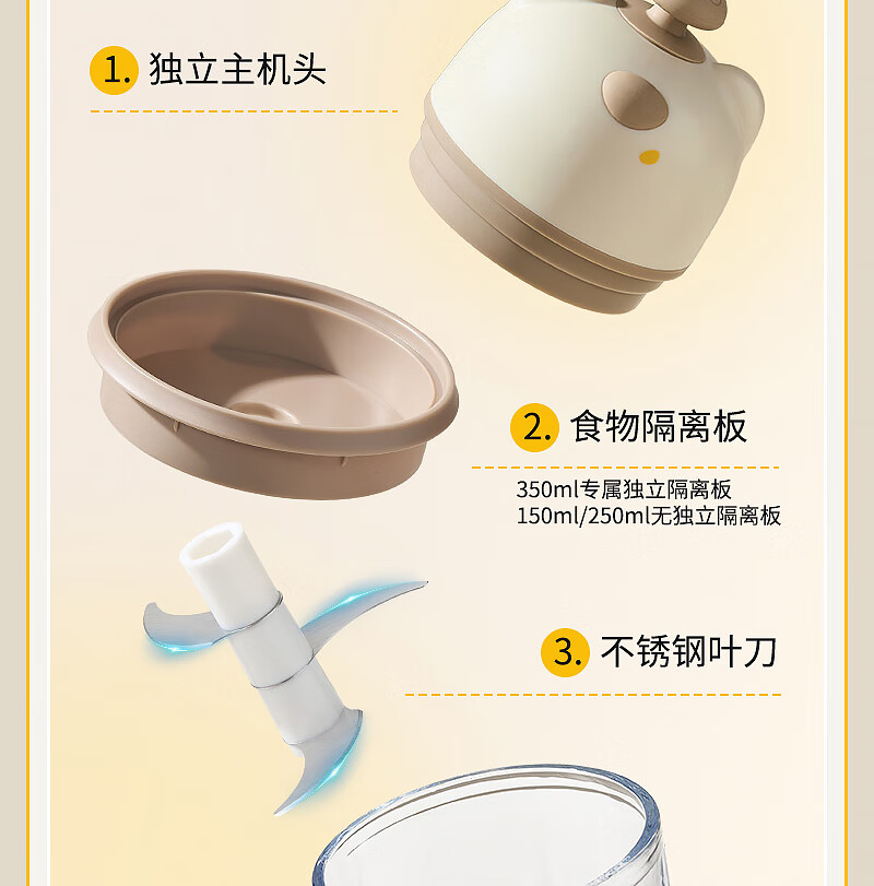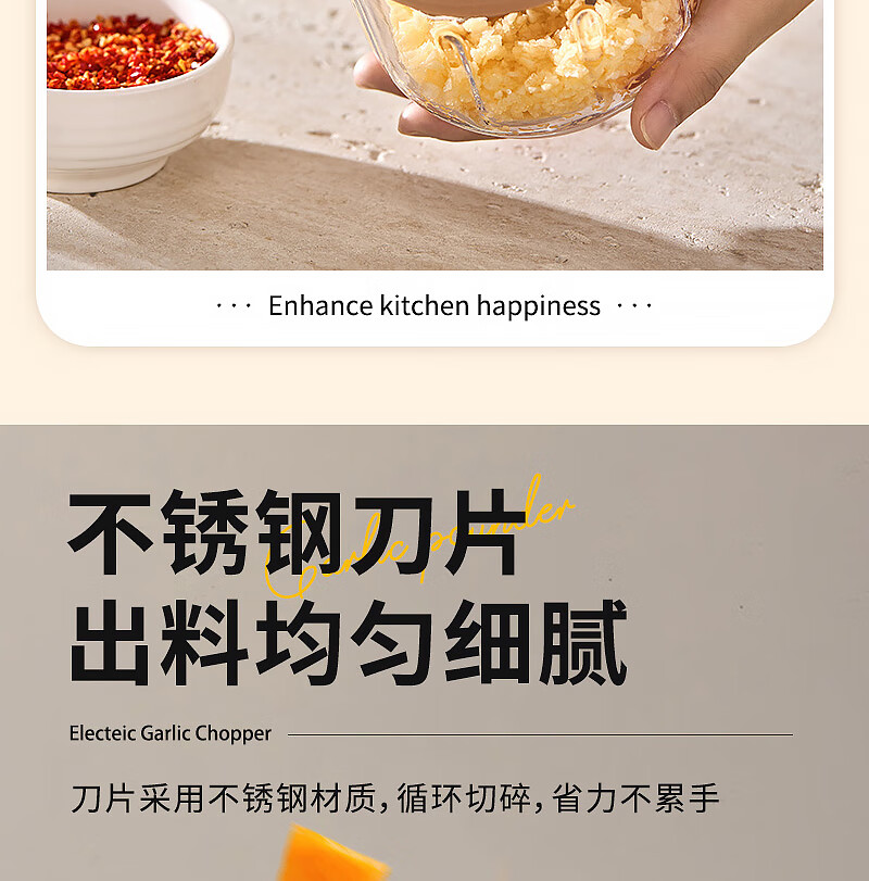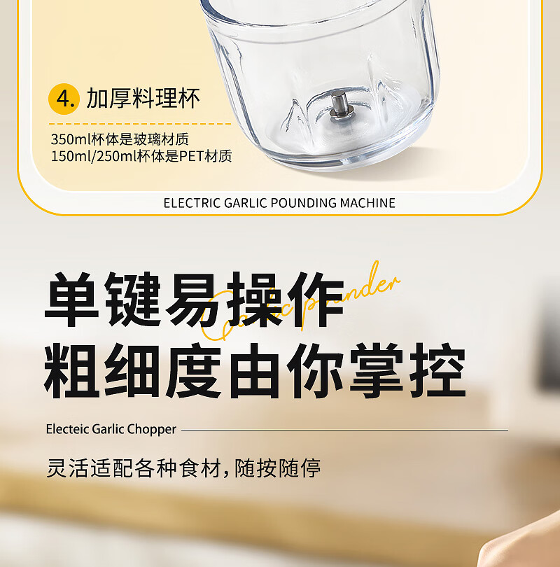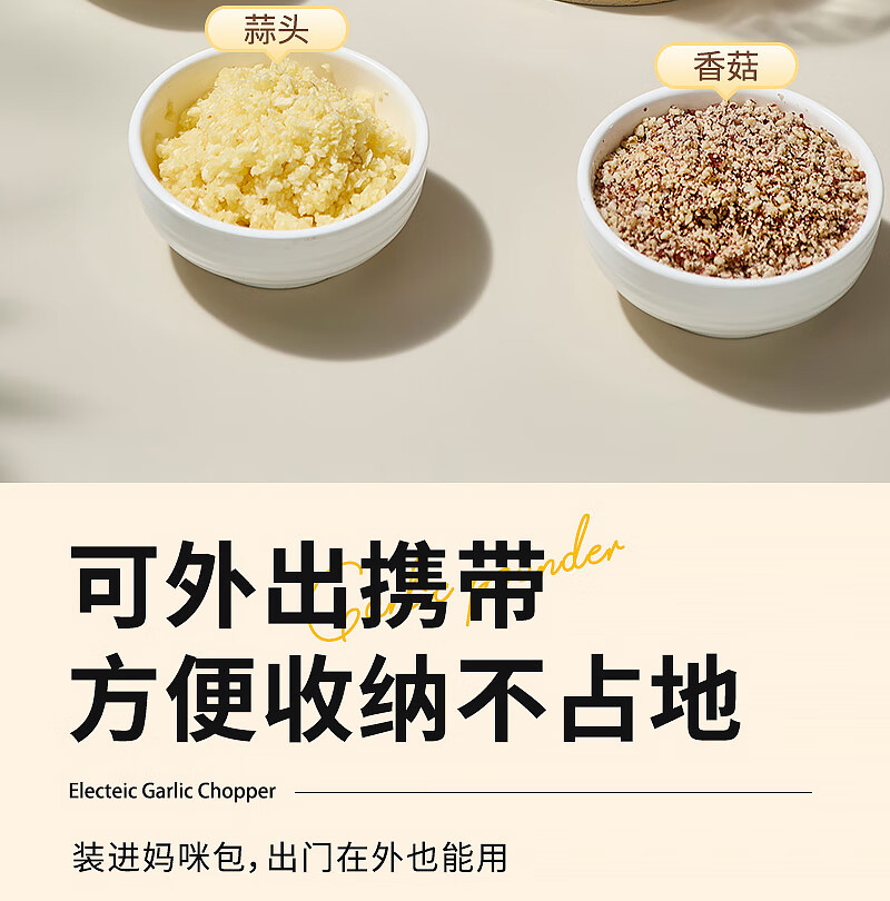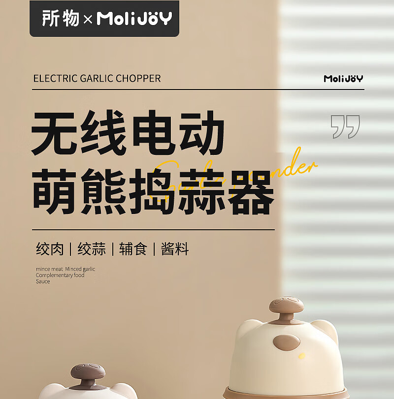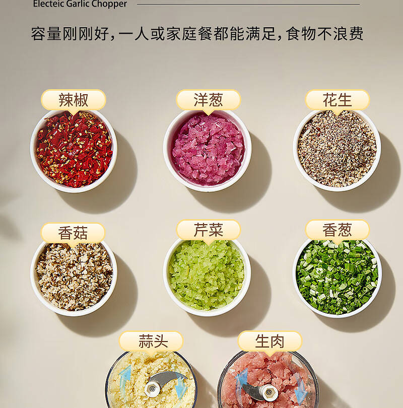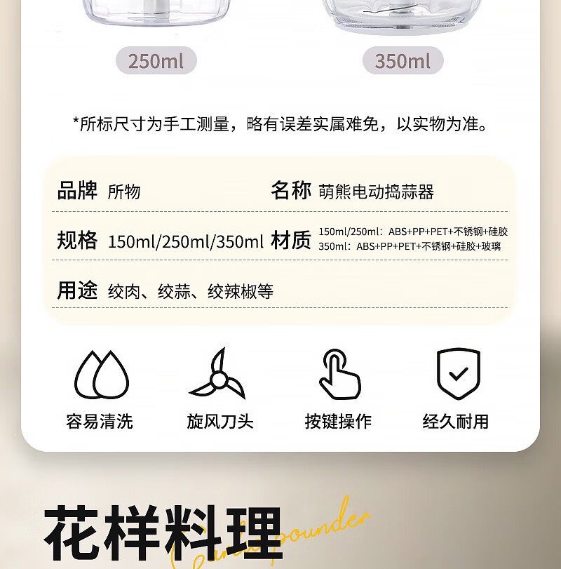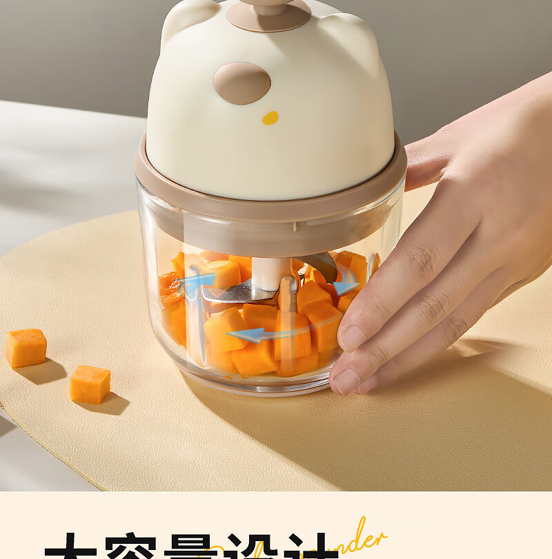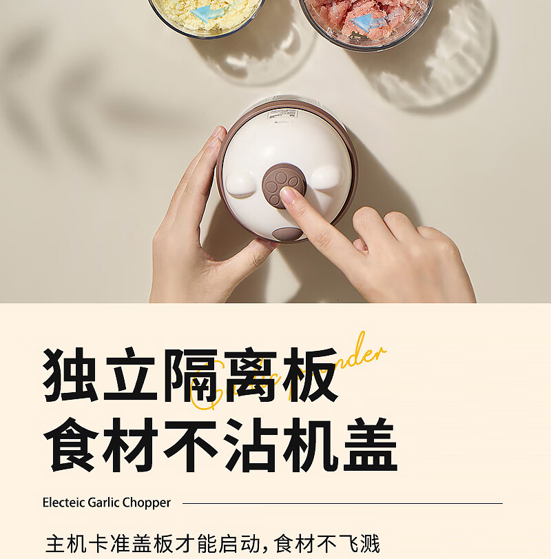 Zhuowu Electric Garlic Pounder for Garlic and Garlic Mince, Small Home Cooking Supplement, Wireless Minced Meat, Garlic and Garlic Artifact, Kaka Bear 150ML Two-leaf Knife Head - Suitable for Stirring Garlic_Chili_PE