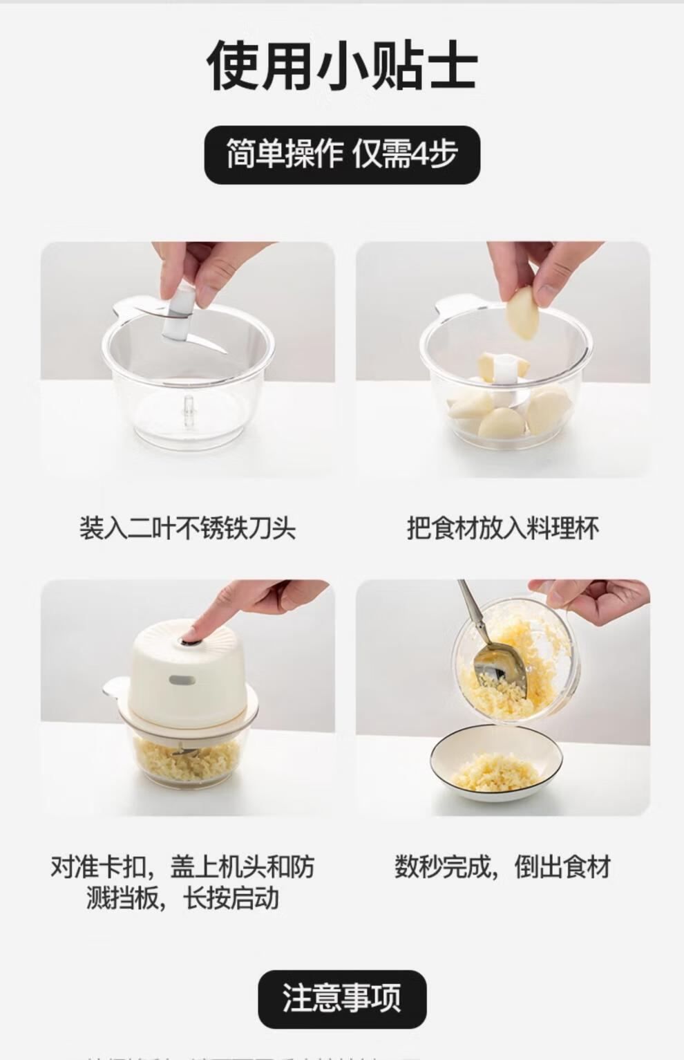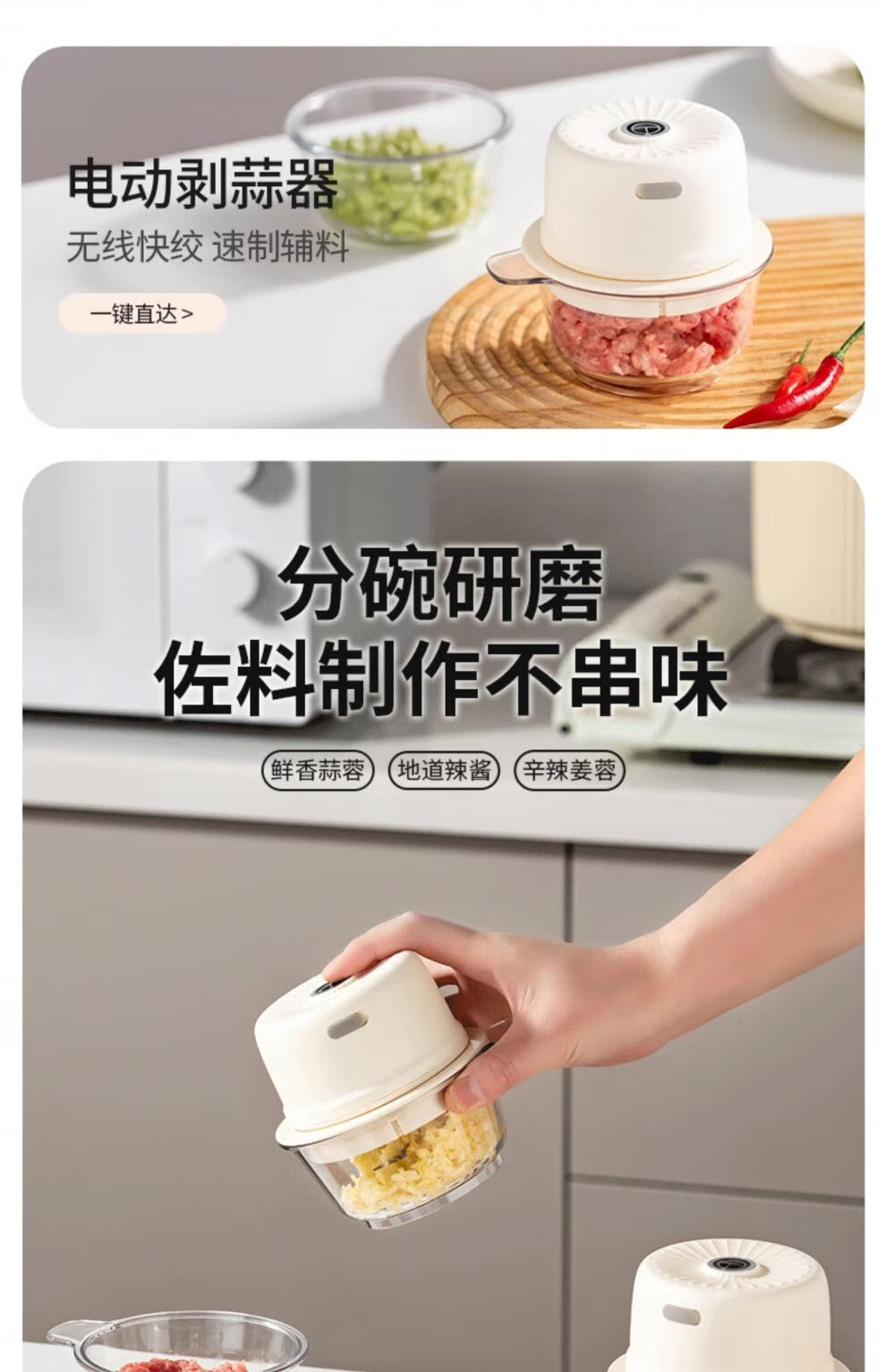 Shijanu small wireless garlic beater baby food supplement machine garlic chili garlic masher electric garlic masher 3 bowls double knife wireless 1 pack mincing material_supplementary food_minced meat