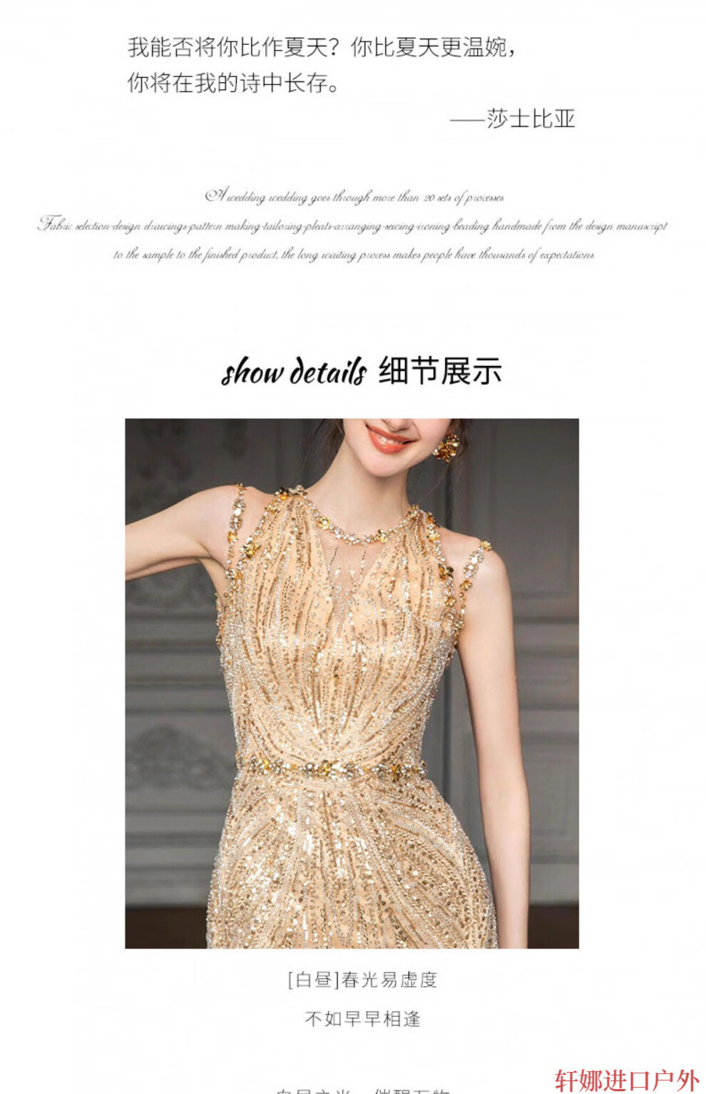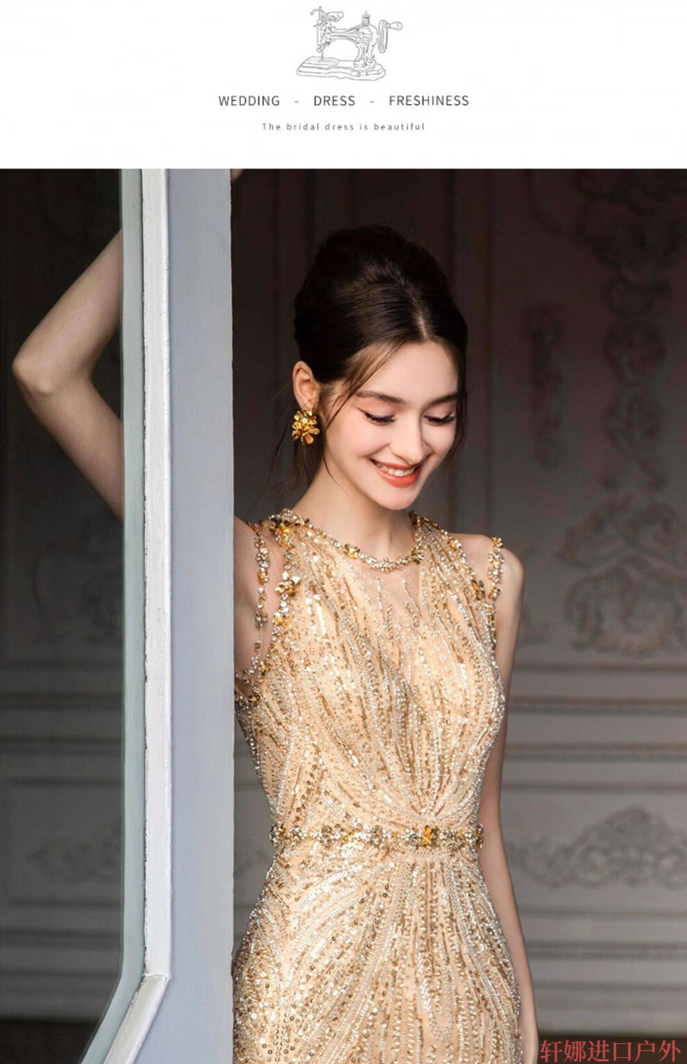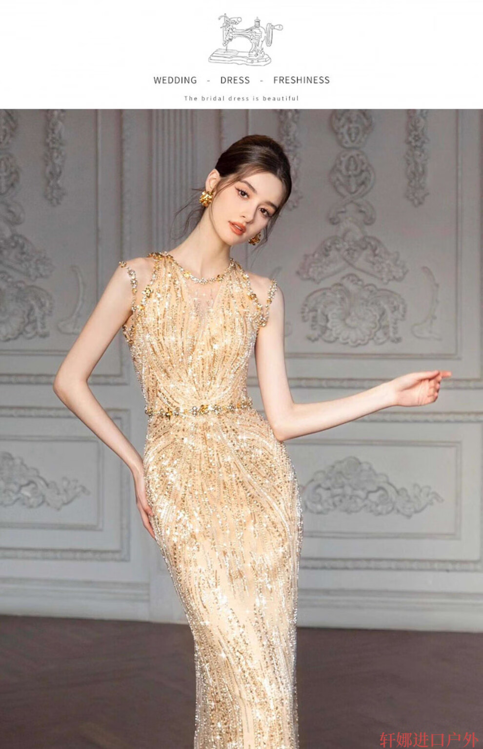 OEMG High-End 2025 New Gold Host Evening Dress Female Heavy Industry Student Day Etiquette Exam Annual Party Engagement Return Gold XS