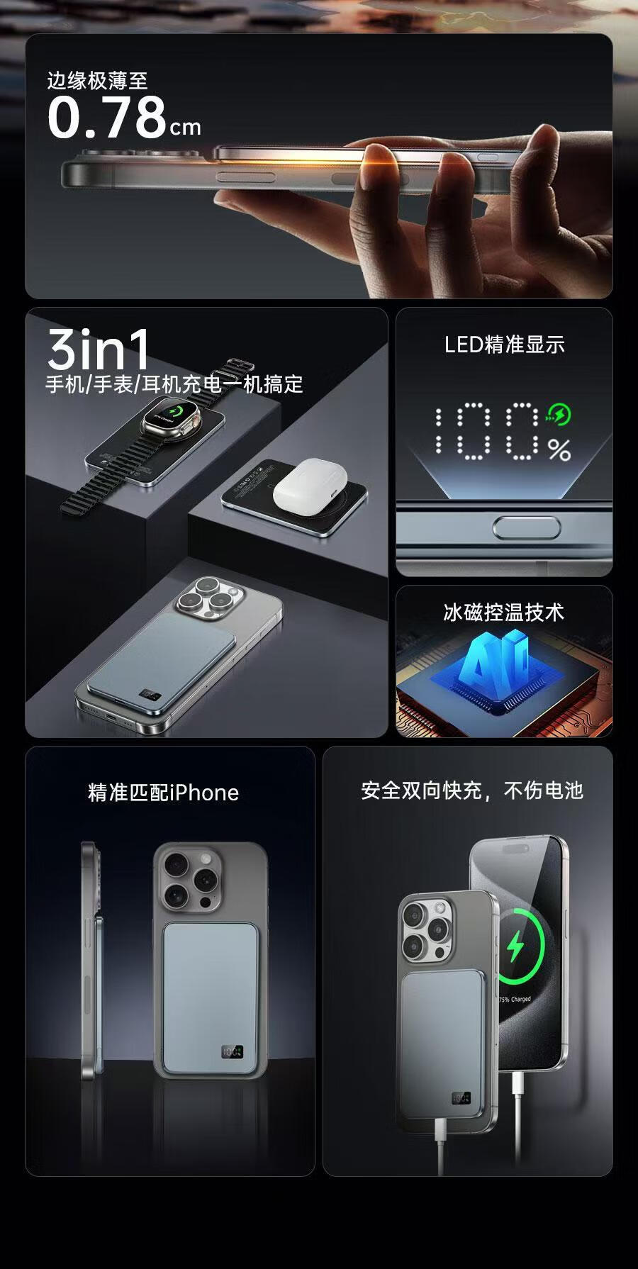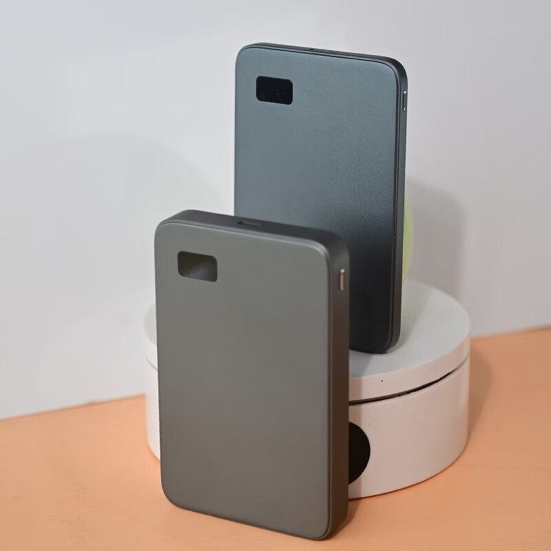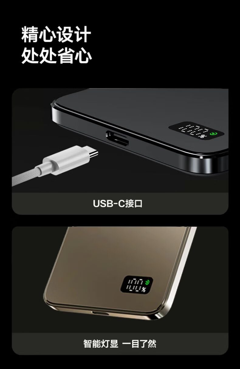 1314 three-in-one ultra-thin wireless magnetic power bank for Android and Apple magsafe external battery rechargeable headphones f19 gray + double pop-up window 5000 mAh