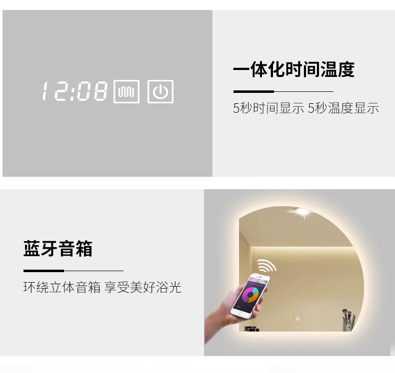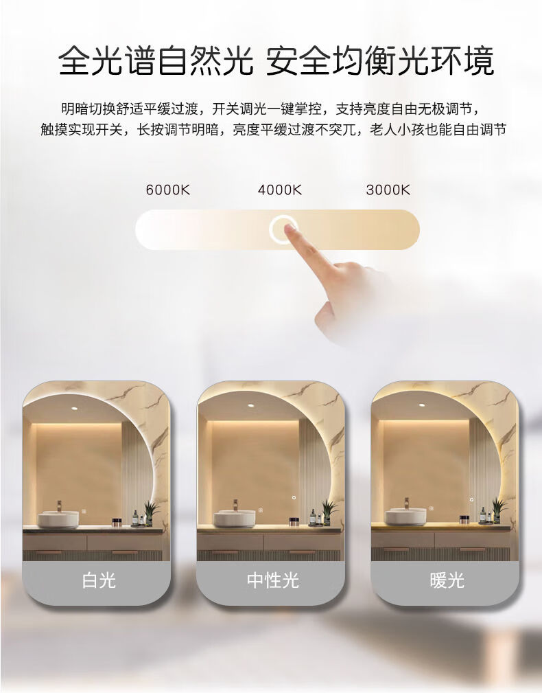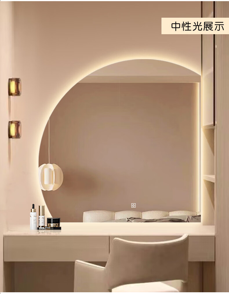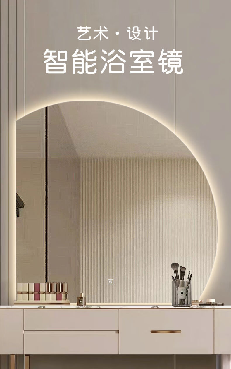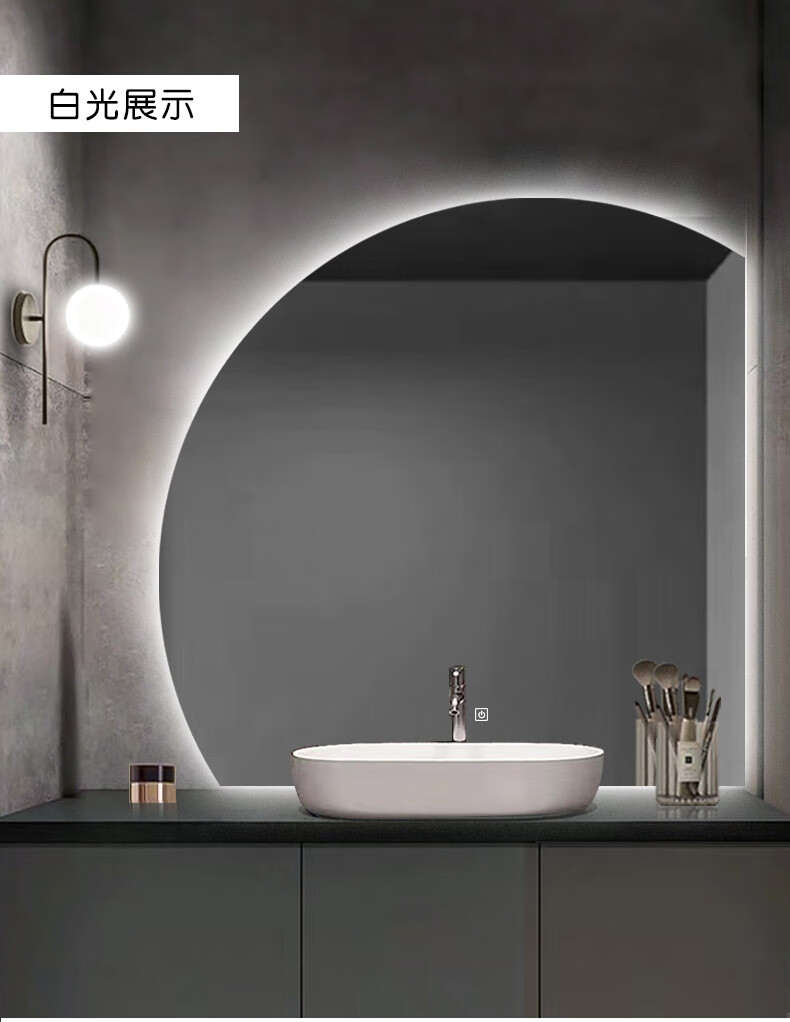Internet celebrity smart mirror special-shaped semicircular luminous dressing vanity wall-mounted bathroom with light led bathroom mirror basic model white light + no touch 90x90 cm