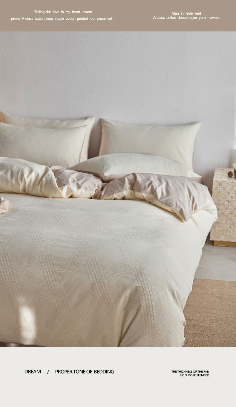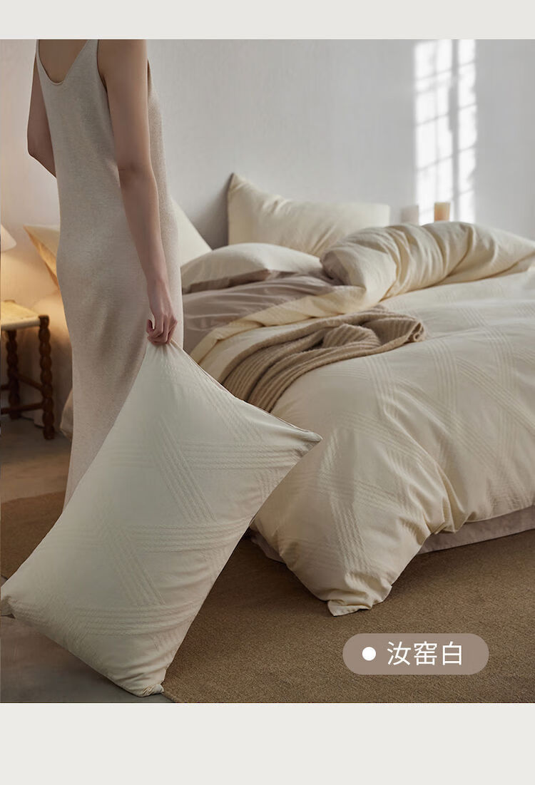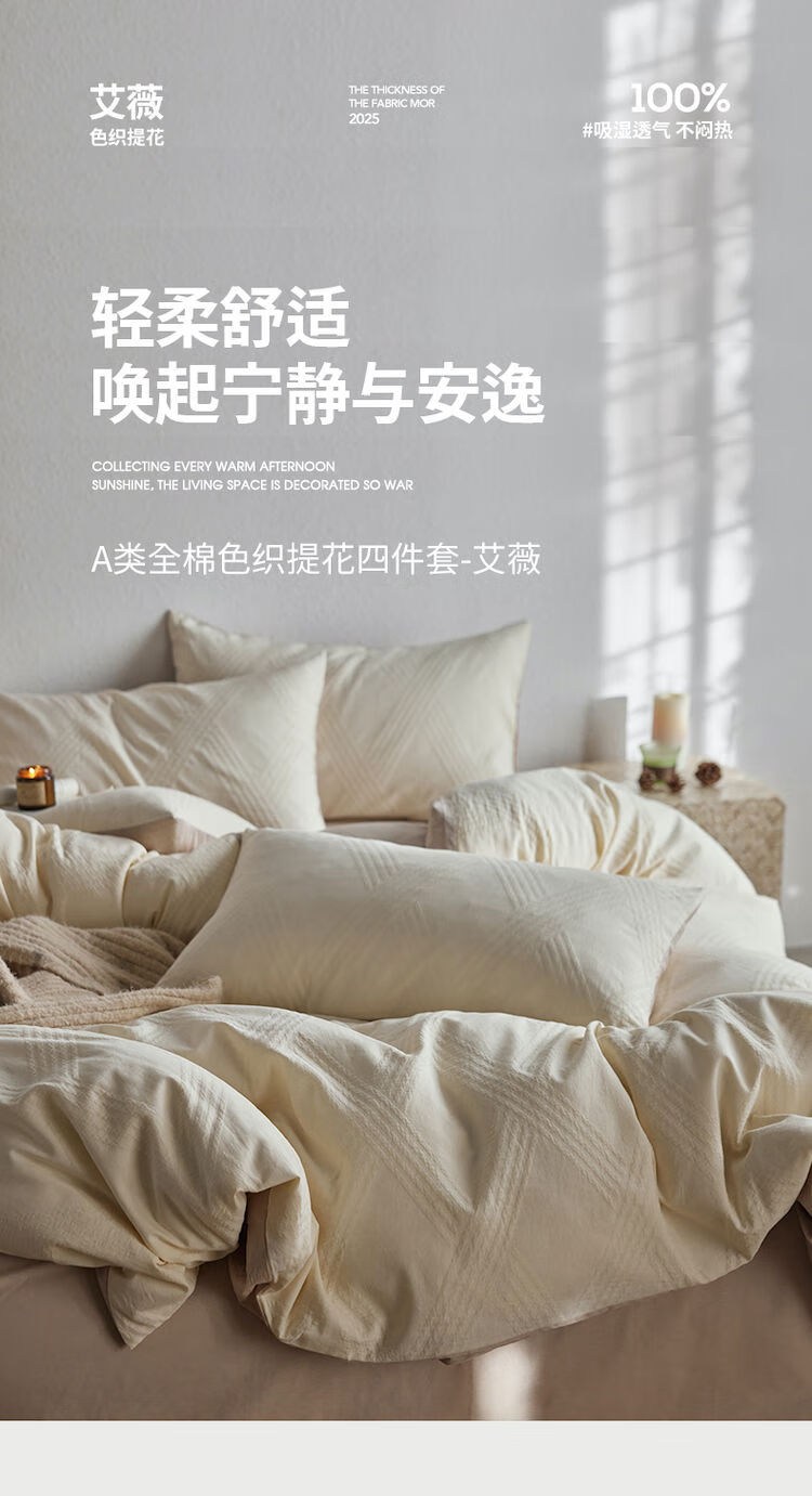 He Jiagong Light Luxury 100S cotton yarn-dyed four-piece set A-grade baby grade pure cotton satin bed sheet and quilt cover spring and summer simple Ruyao white 100 pure cotton class A baby grade 1.5m bed sheet quilt cover 200*230cm