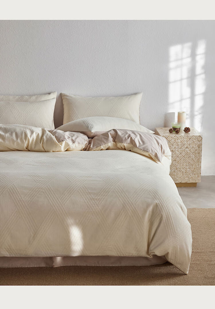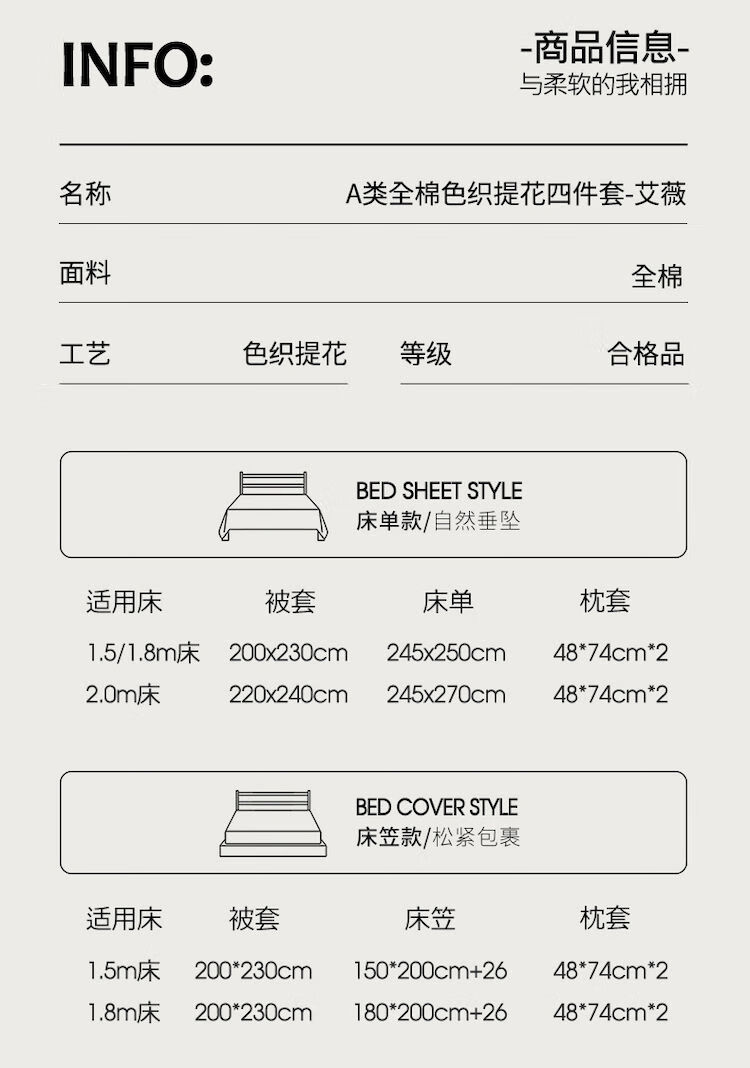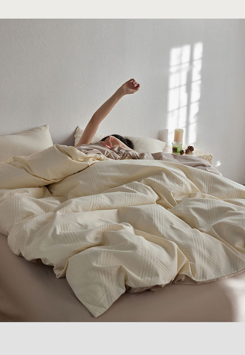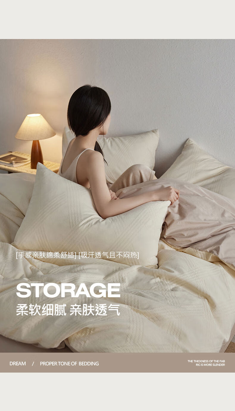 He Jiagong Light Luxury 100S cotton yarn-dyed four-piece set A-grade baby grade pure cotton satin bed sheet and quilt cover spring and summer simple Ruyao white 100 pure cotton class A baby grade 1.5m bed sheet quilt cover 200*230cm