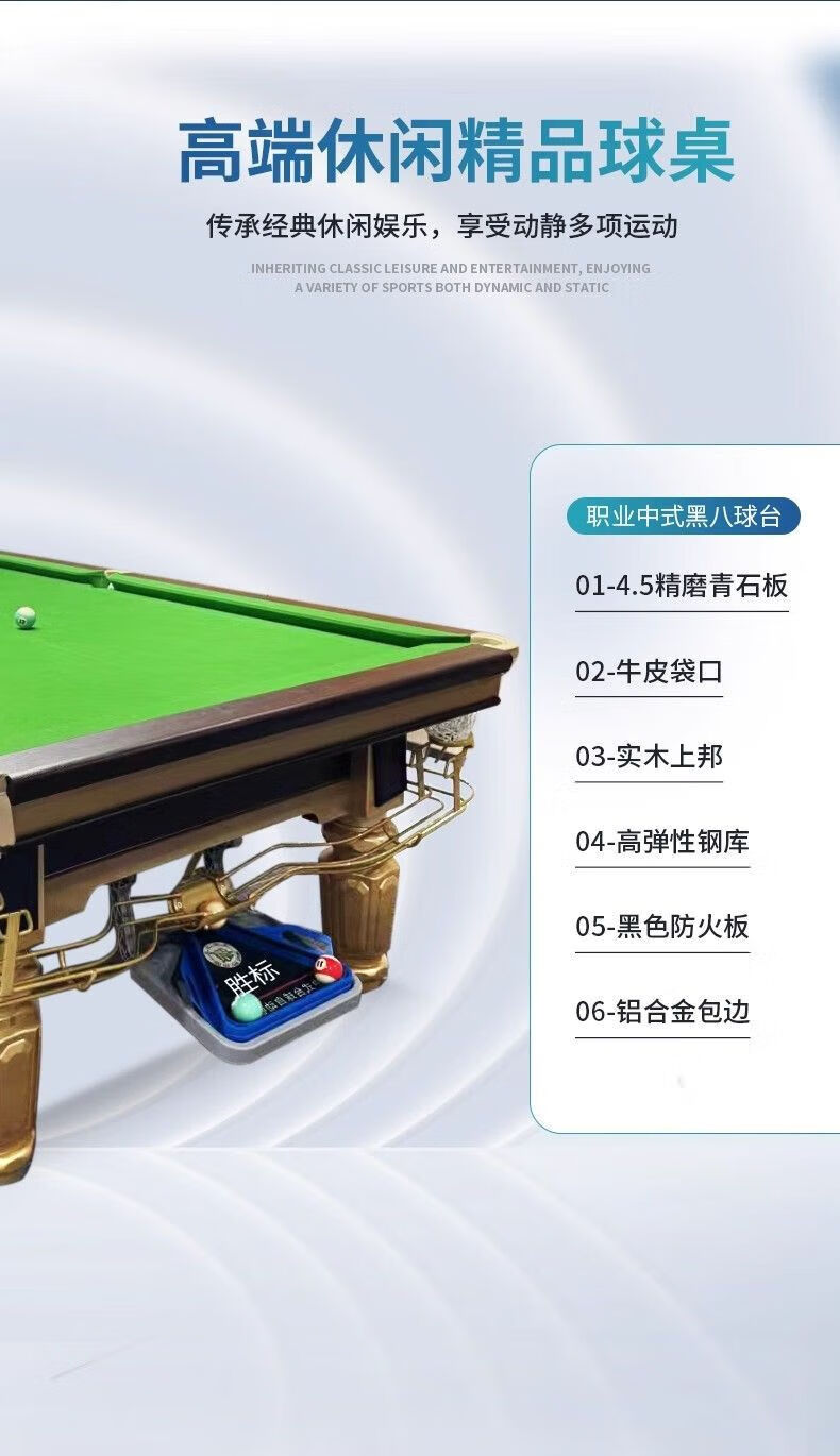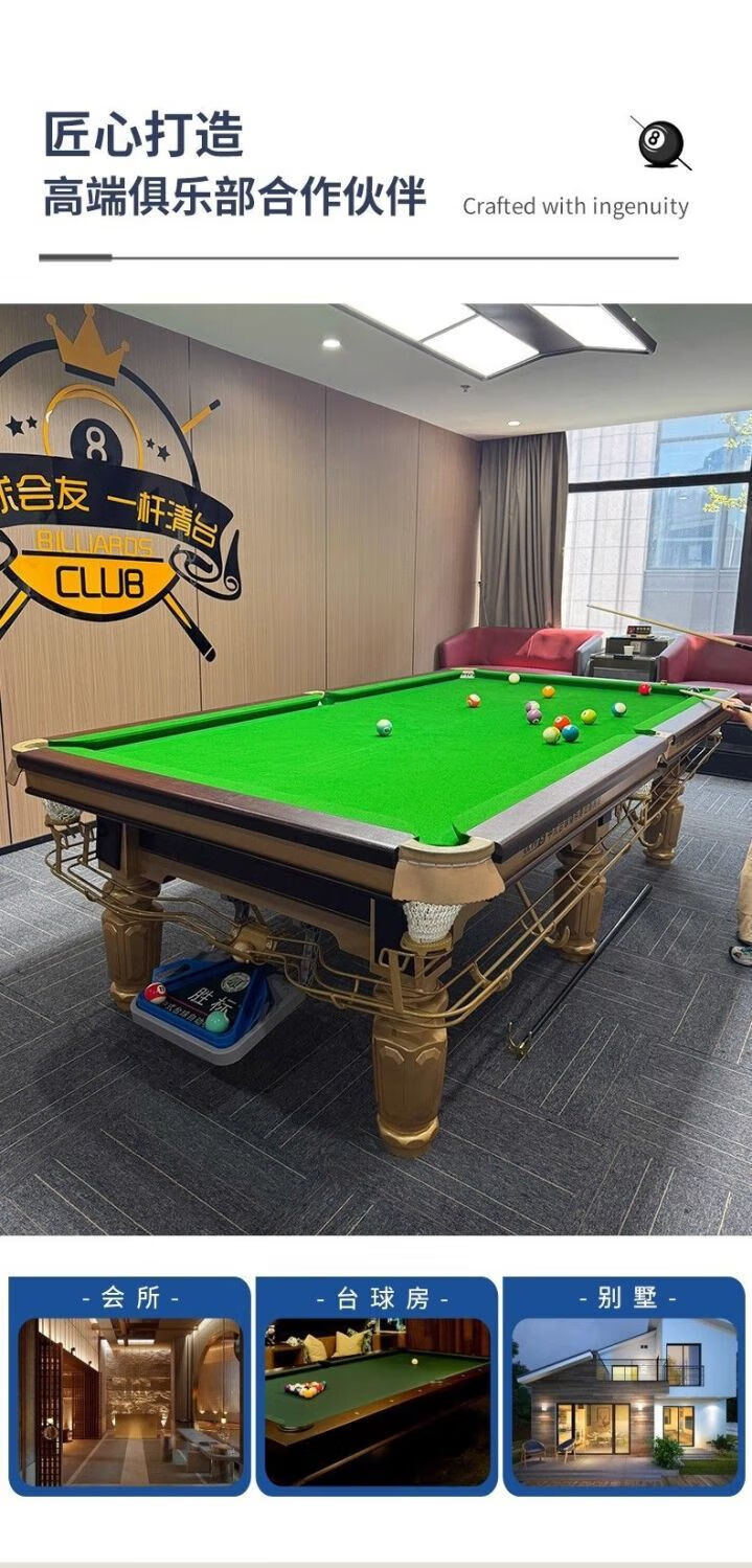 Vinoa commercial Qiao style billiard table standard type adult household indoor steel warehouse flat slate Chinese style black eight billiard table wood warehouse competition table A 1.2 steel warehouse Jiujiang Cao's complete set delivery