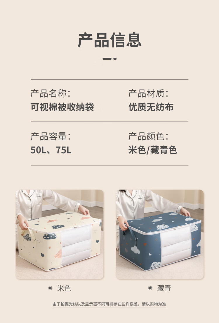 Yusenyi Quilt Storage Bag Quilt Clothes Storage Bag Big Mac Moving Bag Packing Organizing Bag Kindergarten Beige Cloud Large Large Capacity/No Odor/Strong Load Bearing 1-Large Capacity/No Odor