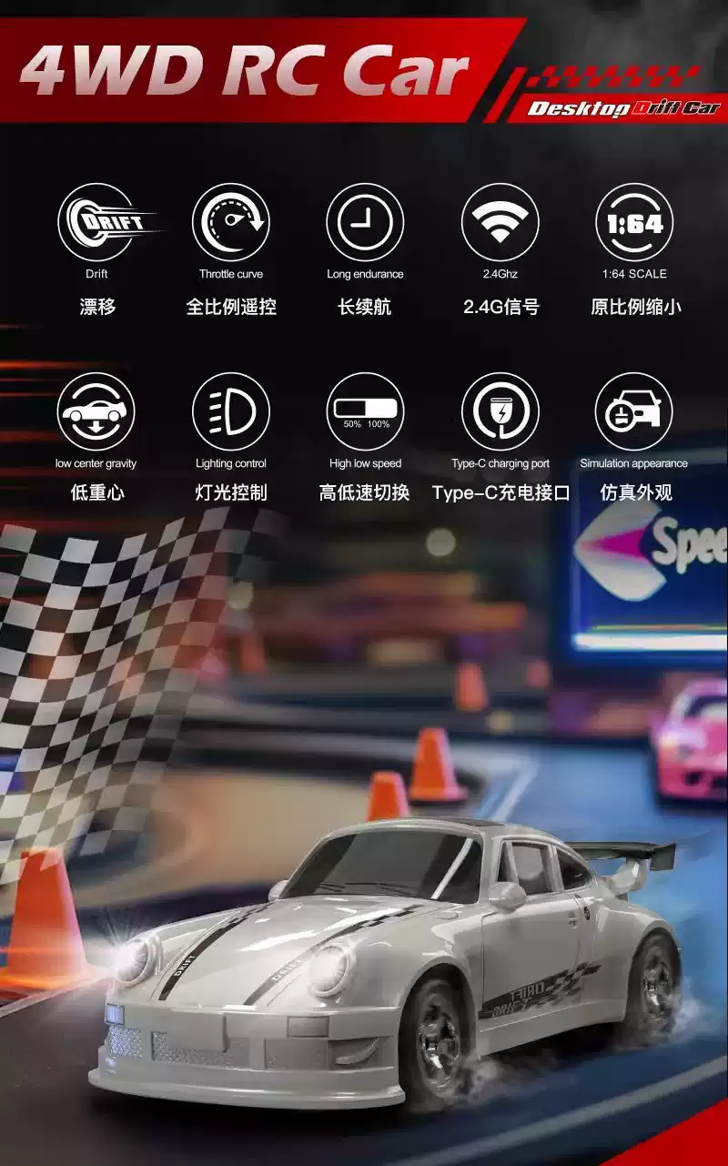 Four-wheel drive rc mini drift remote control car desktop pocket ultra-small alloy car children's boy toy birthday gift white - BMW M4 sports car throttle speed control/full proportion of front and rear lights gun type remote control Type-c charging cable + 4 ice cream cones + high-end gift box