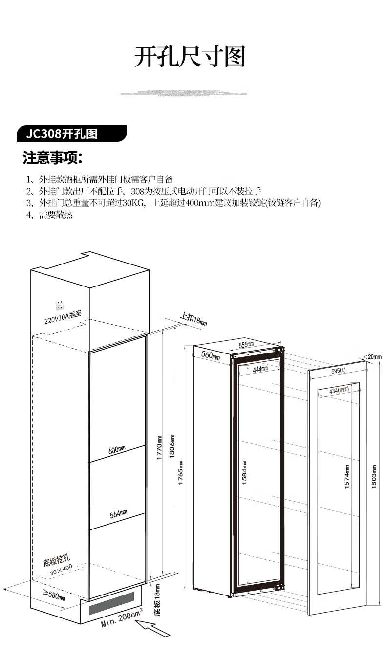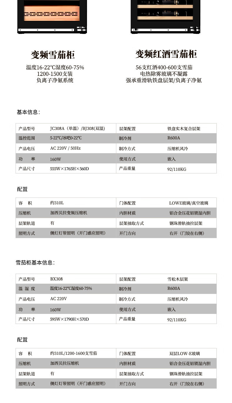 EREMITE JC308 external door embedded red wine cabinet constant temperature wine cabinet inlaid household red wine storage and fresh-keeping cabinet cold drink cabinet tea cabinet cigar cabinet red wine and cigar integrated cabinet/electric door opening 310L