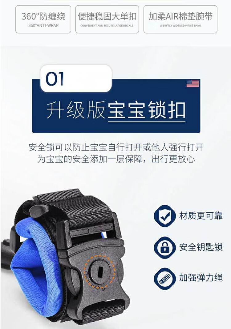 Anti-lost belt traction rope, child safety, child anti-lost rope, breathable bracelet, baby anti-lost belt, baby-walking artifact, light blue belt wrist two-in-one