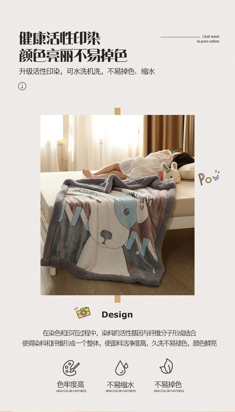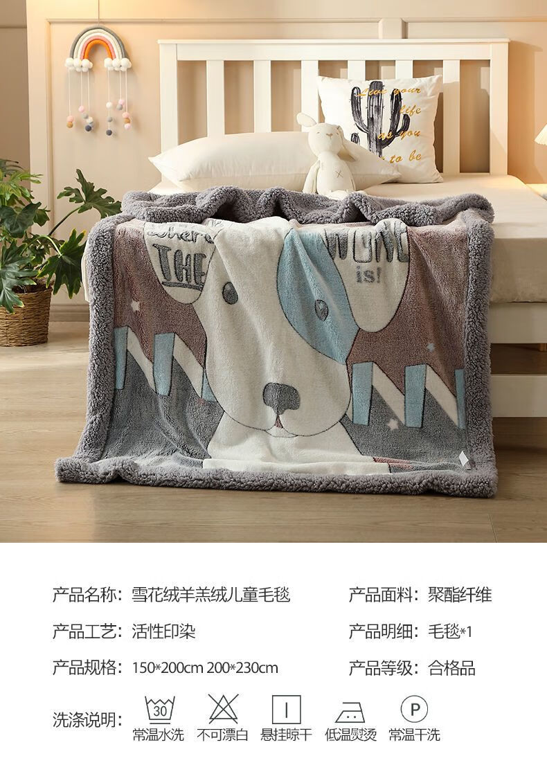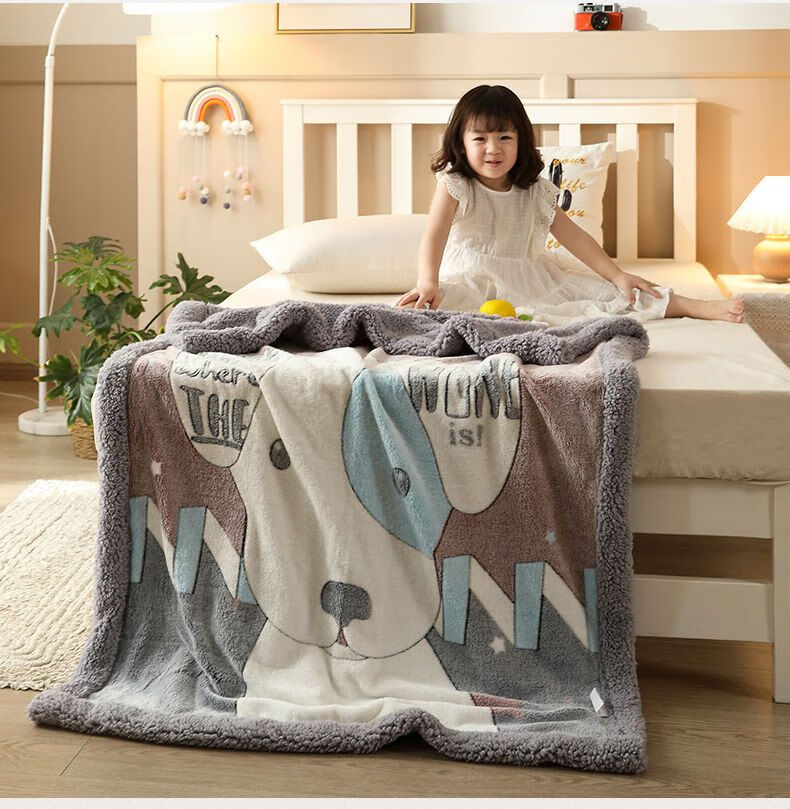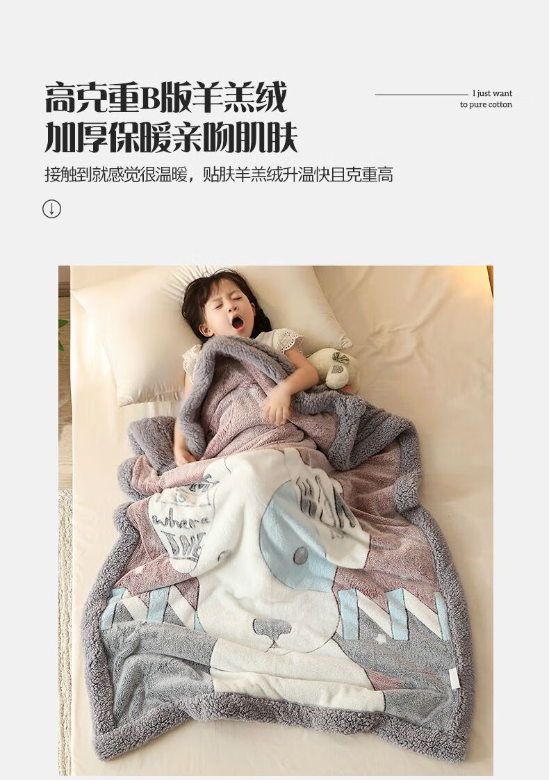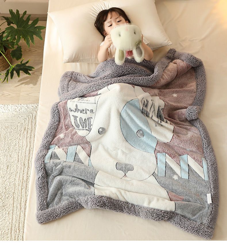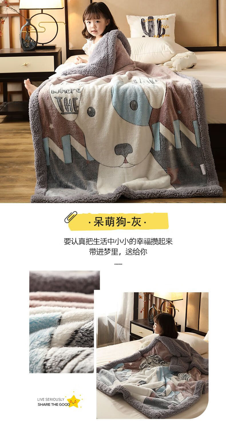 Fantasy children's blanket double-layer thickened winter lamb velvet small quilt kindergarten nap baby baby coral velvet cute dog-grey/2Jin Jin is equal to 0.5kg about 100x150cm children's blanket/back pad dual-purpose