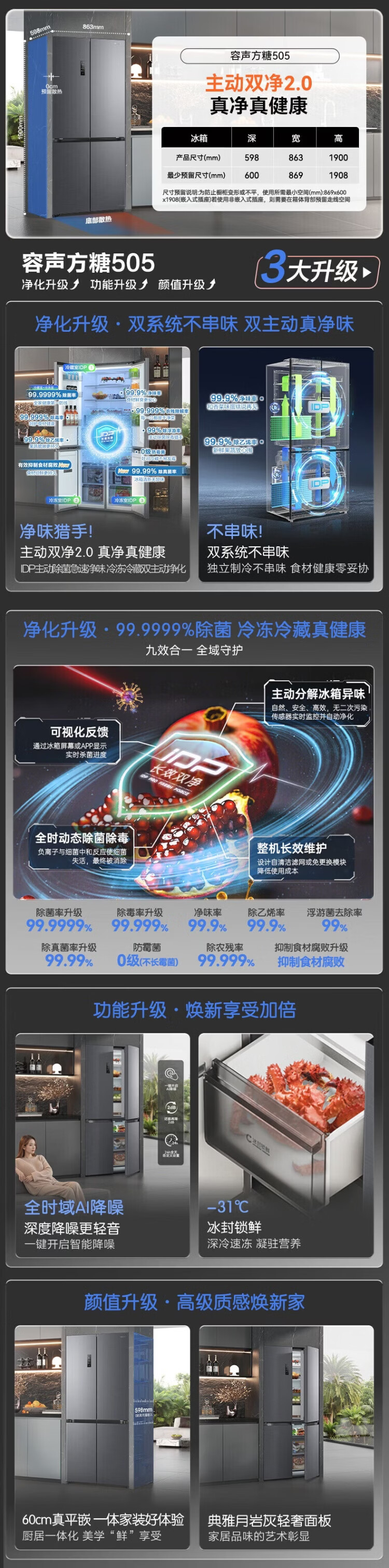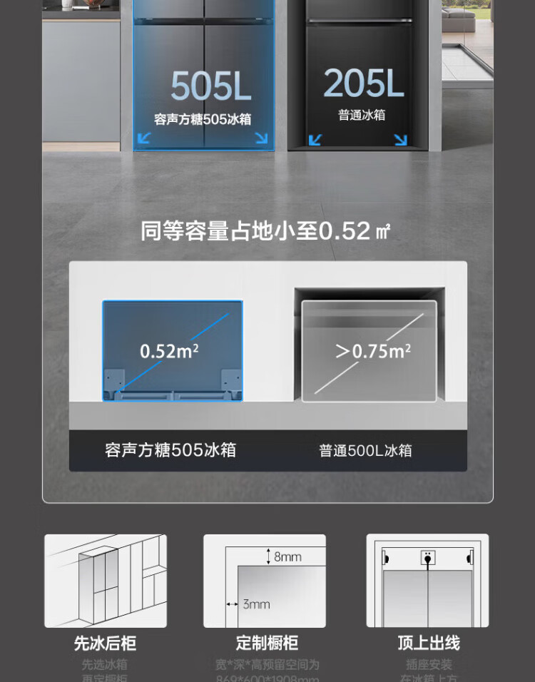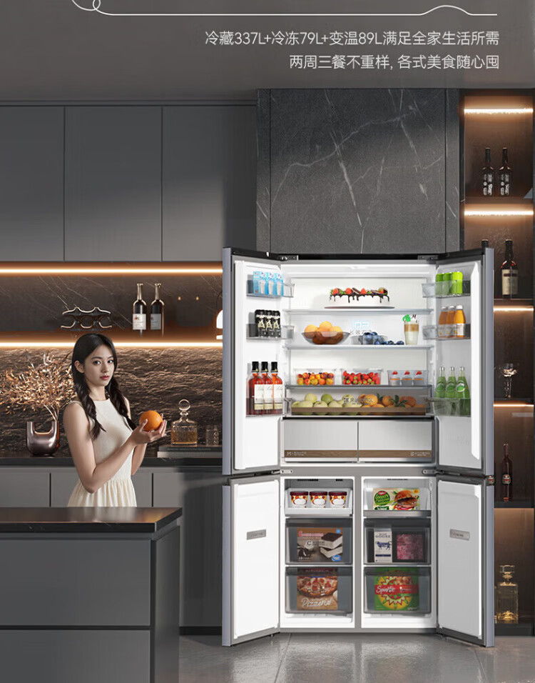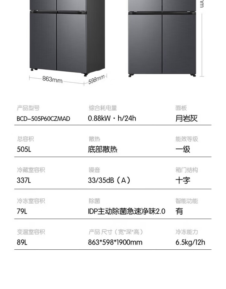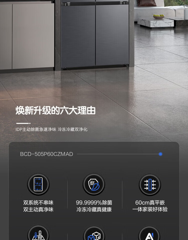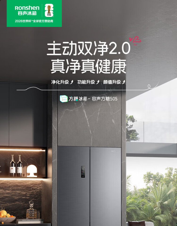 Rongsheng Refrigerator World Cup Customized Cube Sugar 505 King Cross Door Four-Door Refrigerator Dual System Ultra-Thin Embedded Automatic Ice Making Level One Energy Efficiency BCD-505P60CZNAD Cube Sugar 505 King Automatic Ice Making