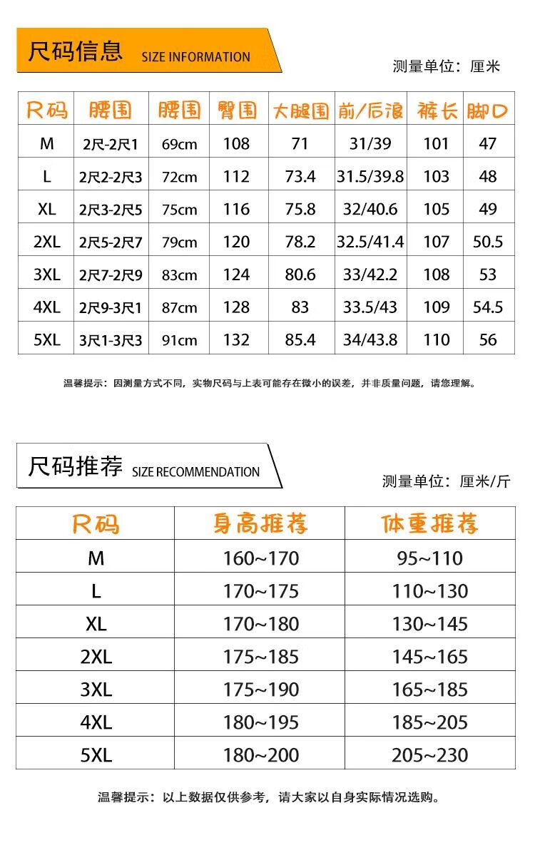 Outseam (cm) 99 cm 101.5 cm 104 cm 106.5 cm 109 cm