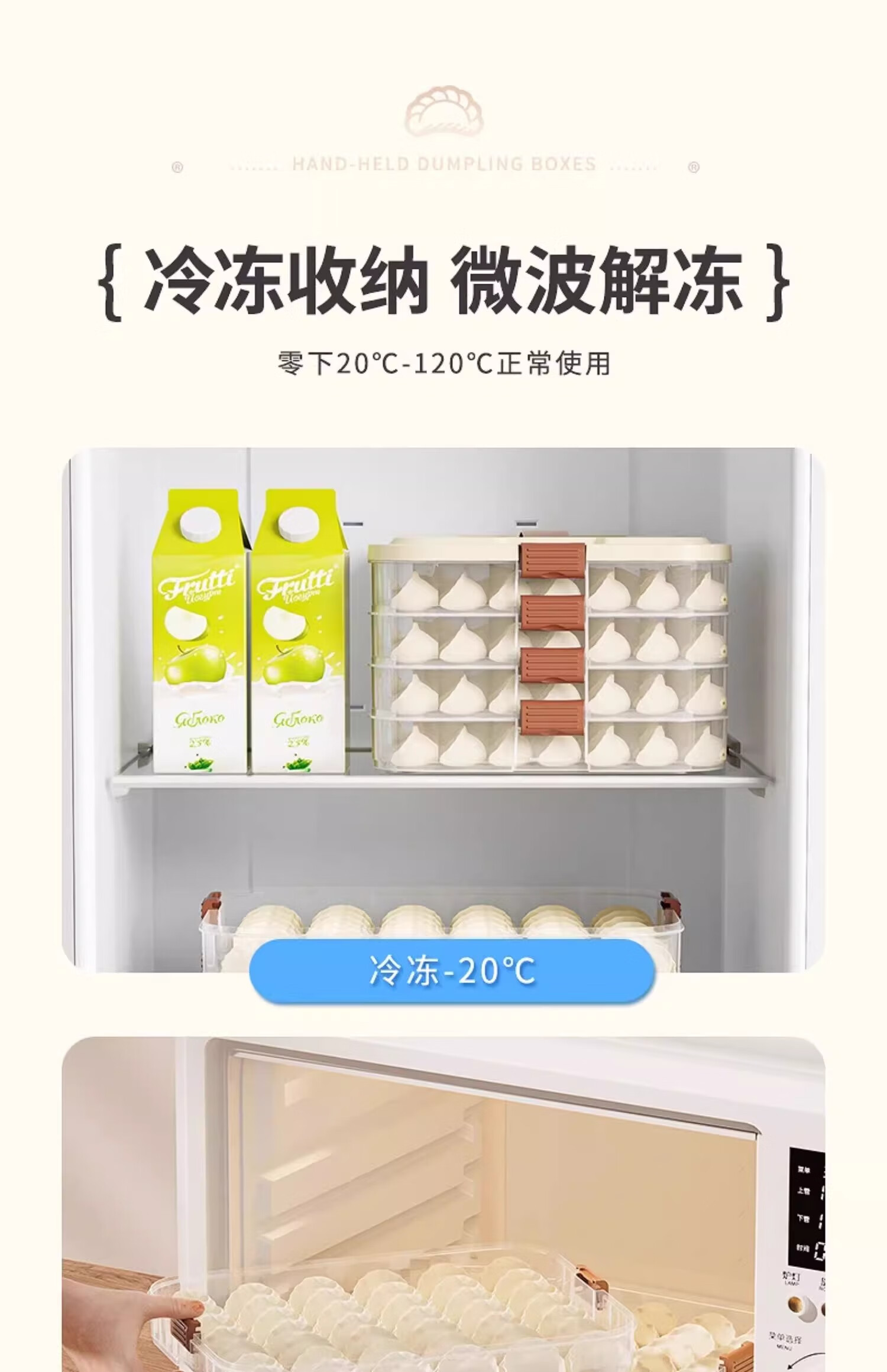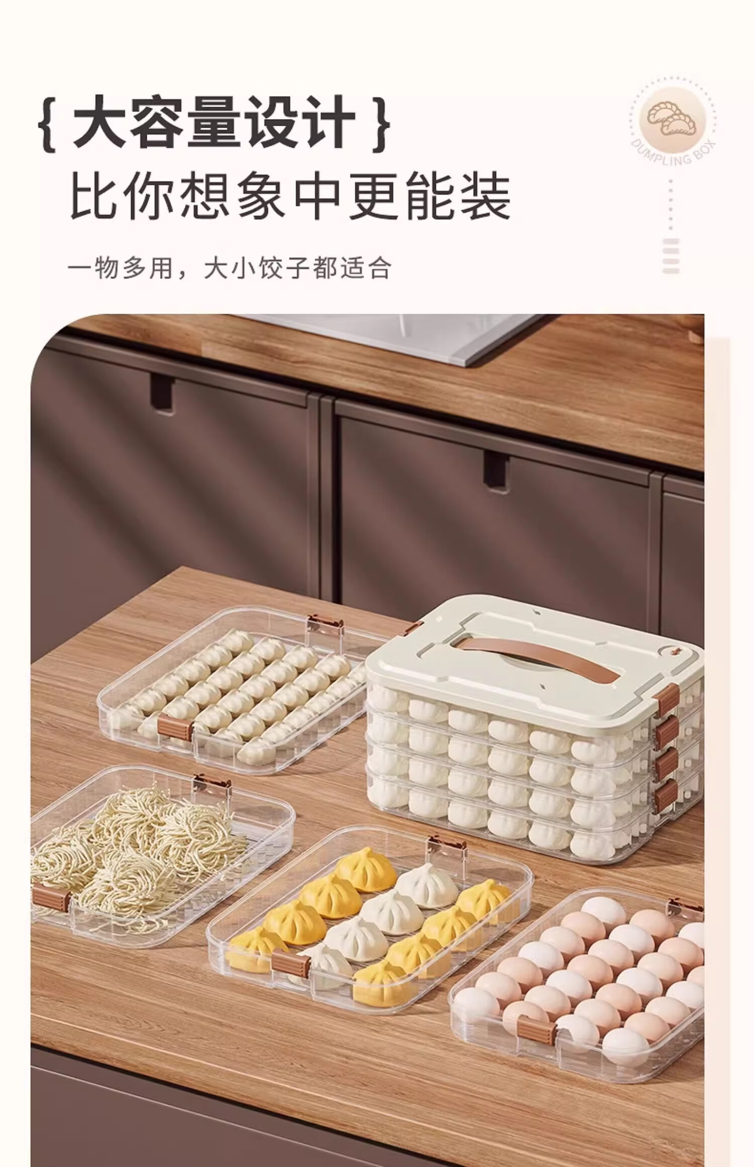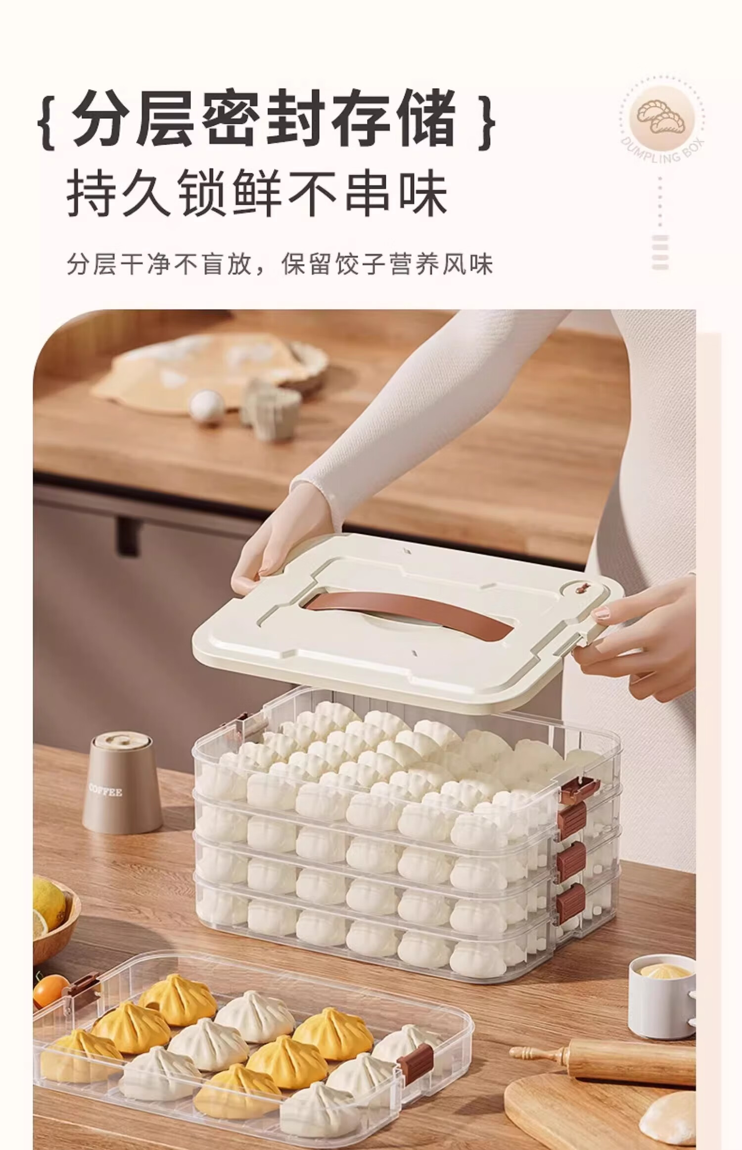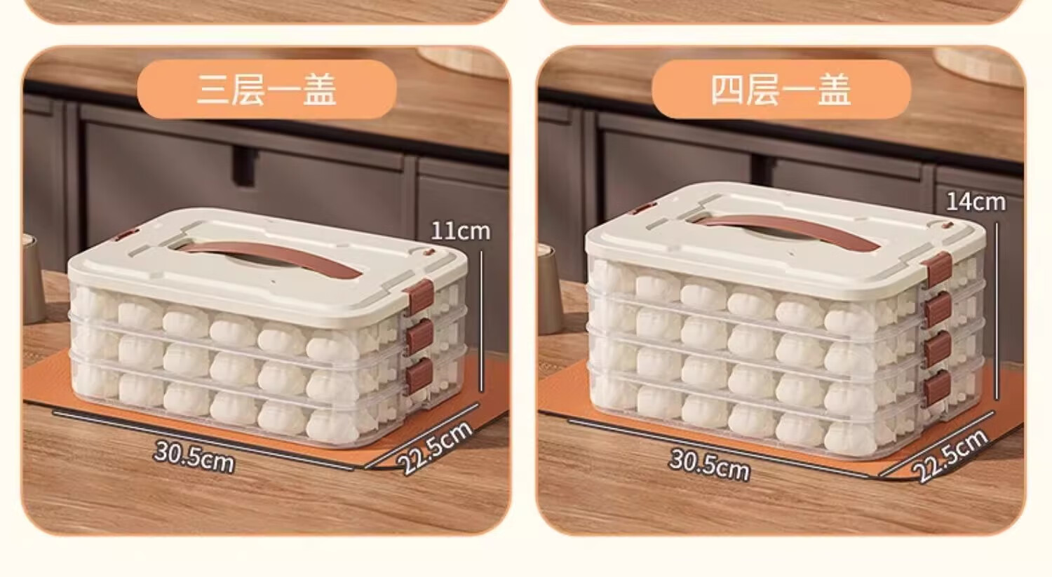 Qumuye dumpling storage box can be refrigerated and frozen, food-specific dumpling tray, multi-layer quick-frozen wonton crisper, portable, can hold about 70 dumplings, 1 layer, recommended for 1-2 people