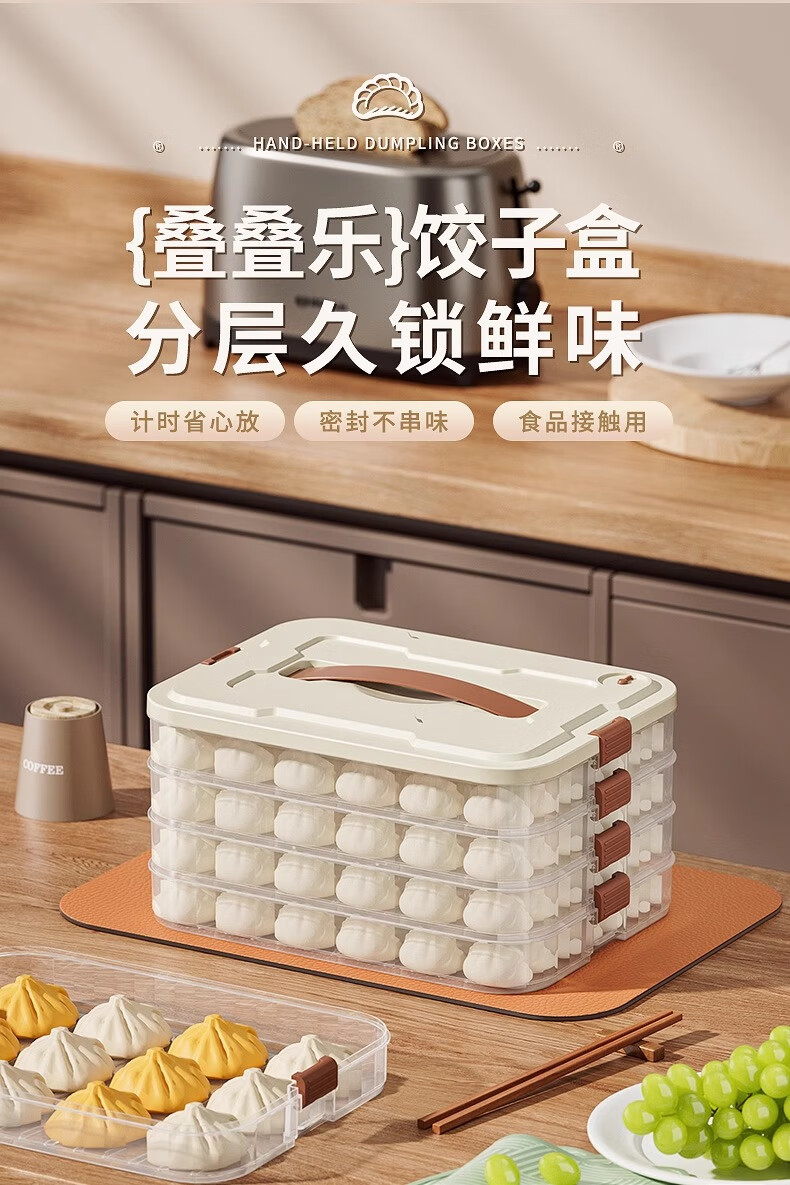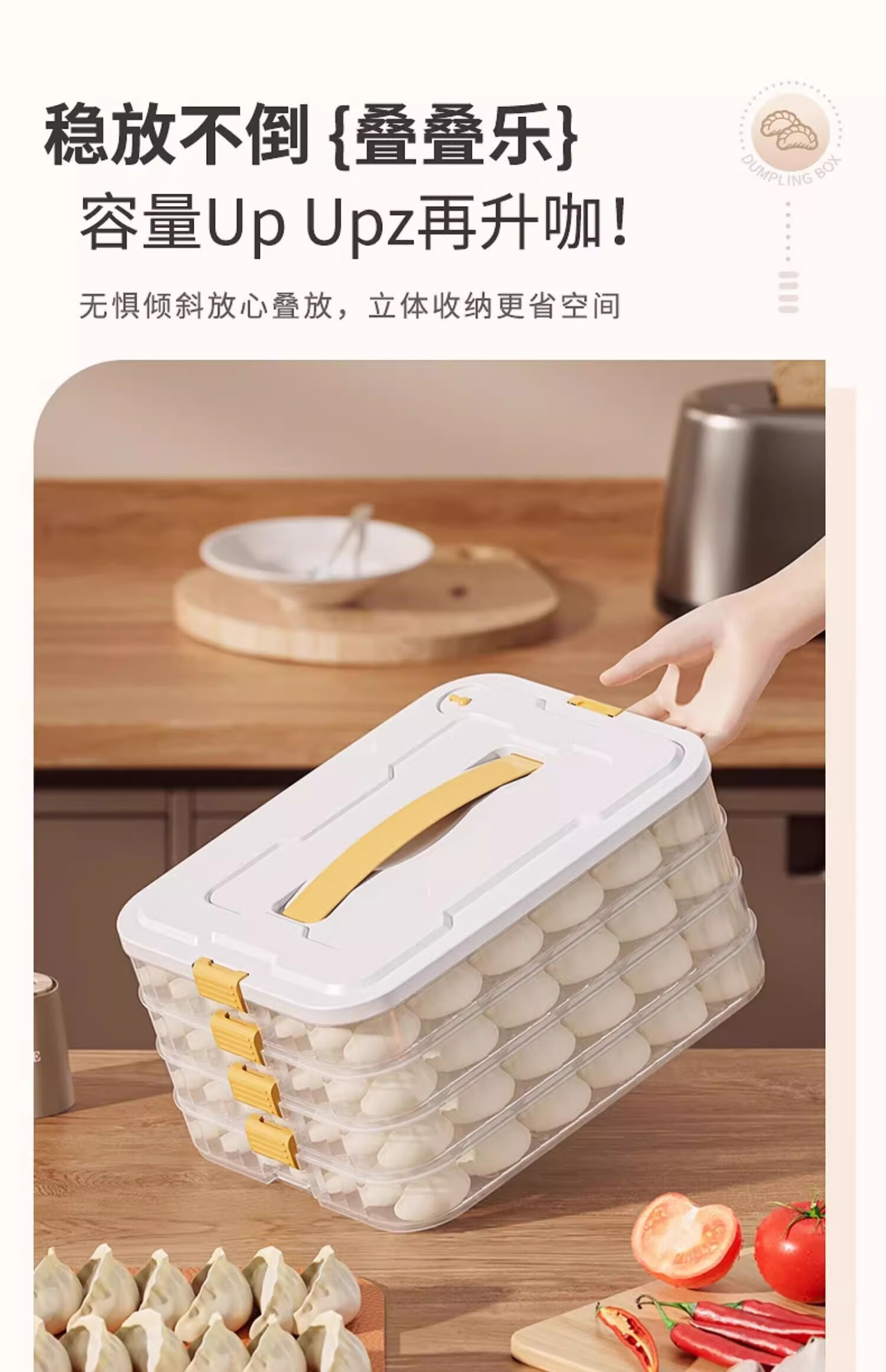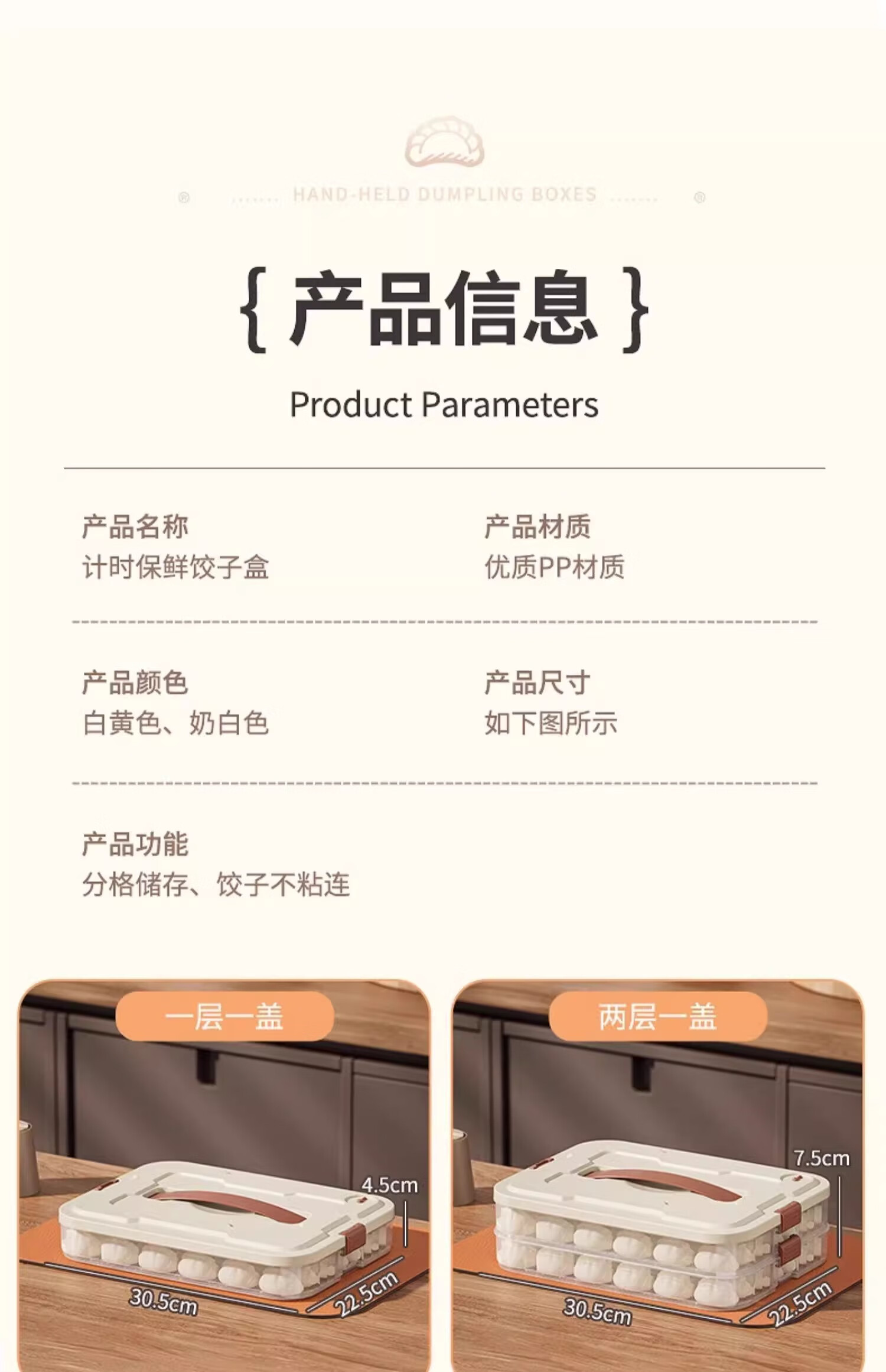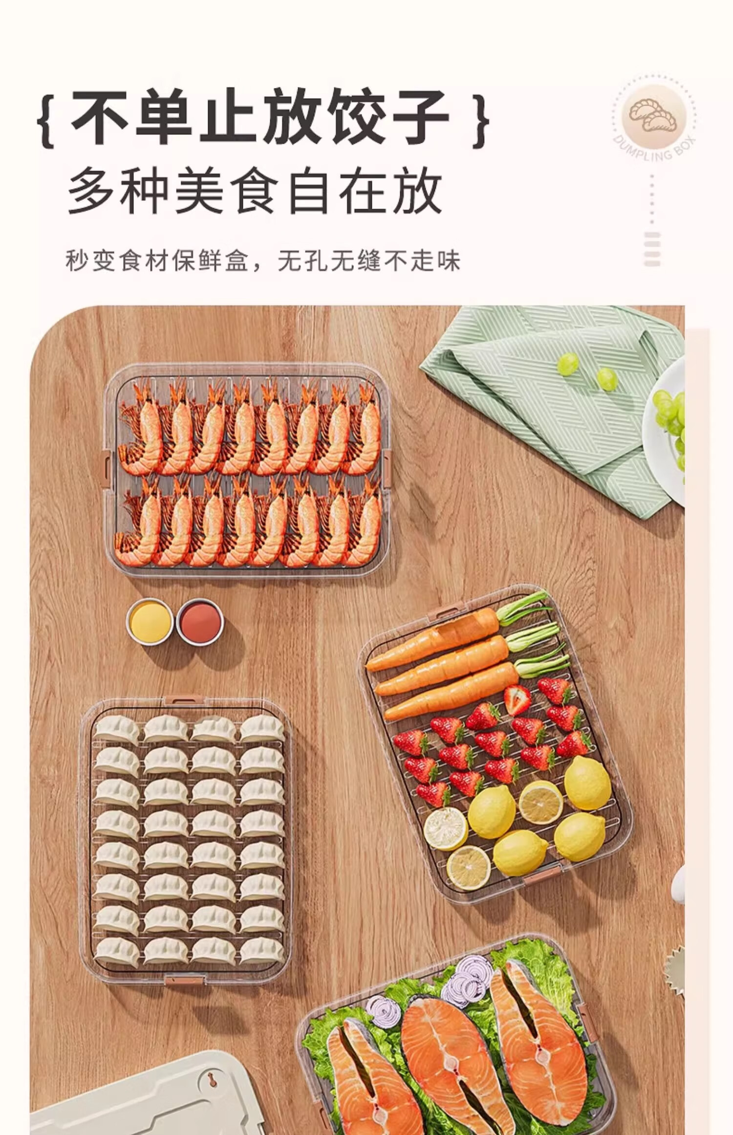 Qumuye dumpling storage box can be refrigerated and frozen, food-specific dumpling tray, multi-layer quick-frozen wonton crisper, portable, can hold about 70 dumplings, 1 layer, recommended for 1-2 people