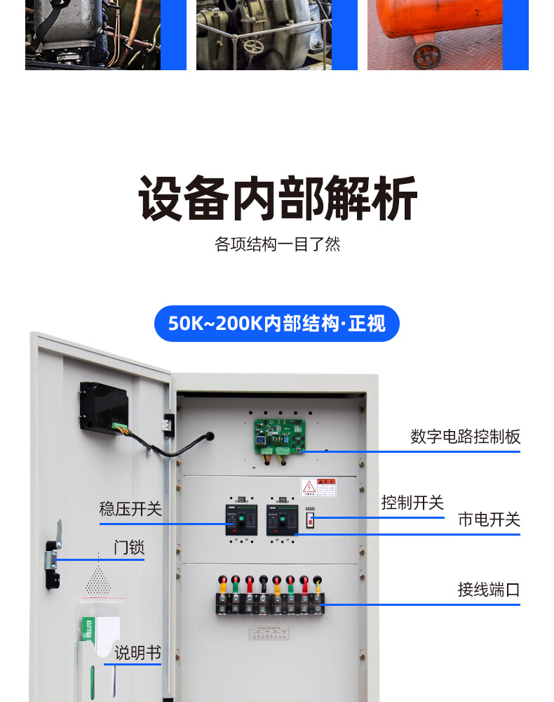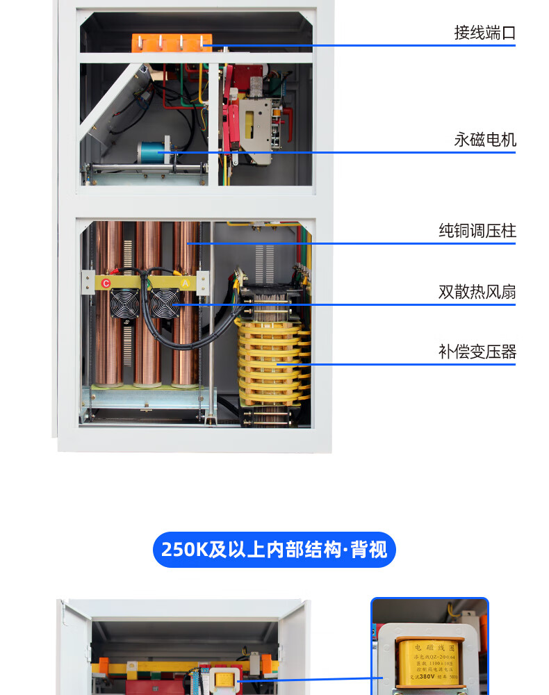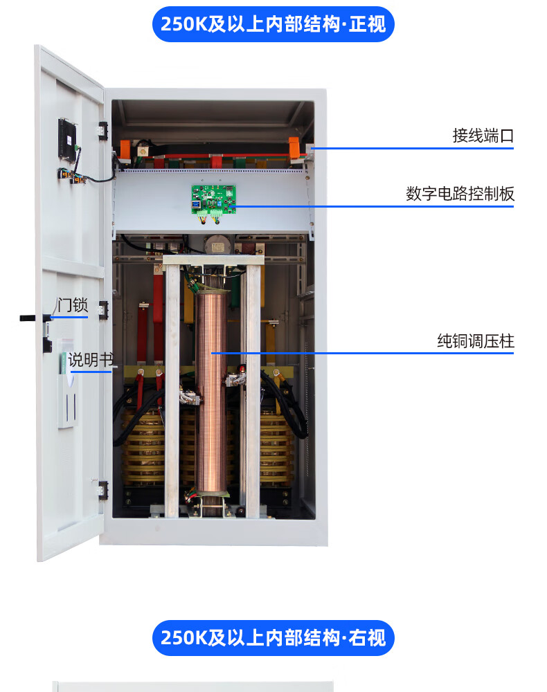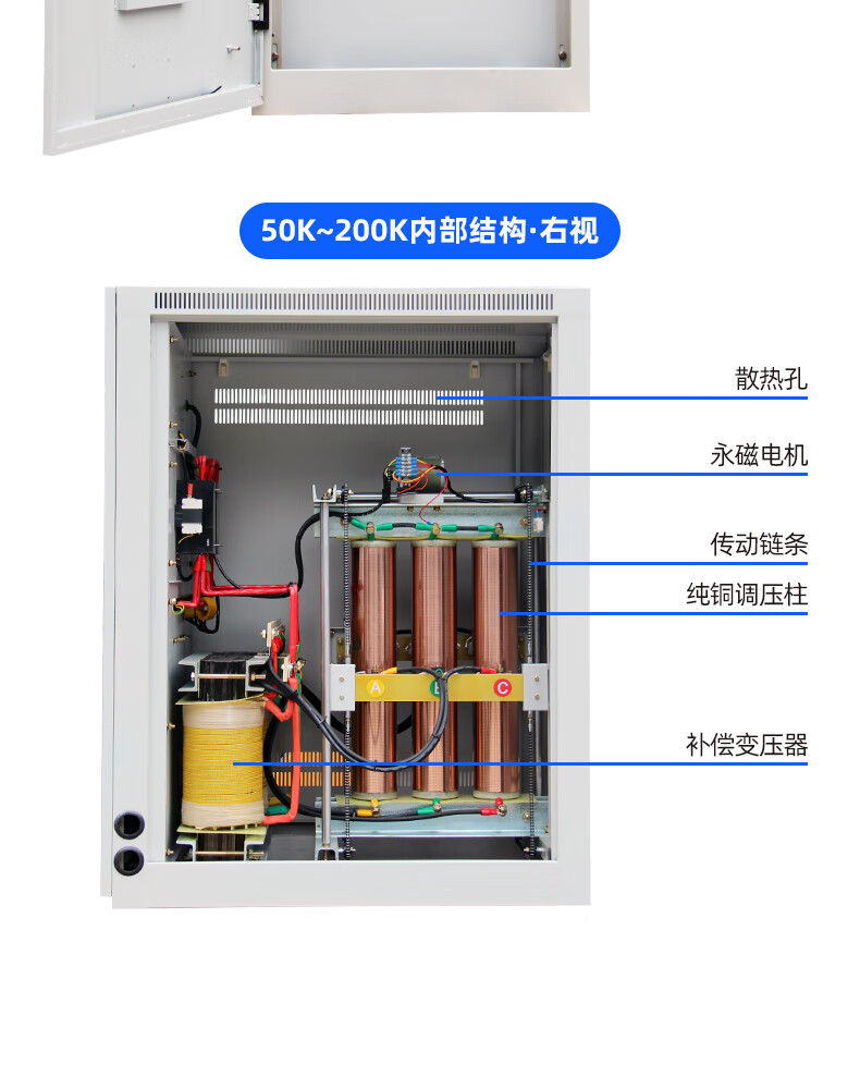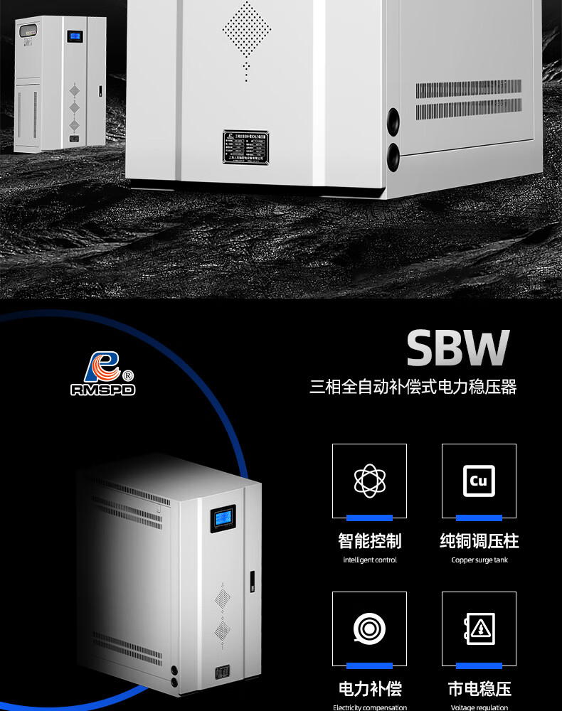 Shanghai People's Voltage Stabilizer 380V three-phase high-power copper pillar regulated power supply SBW compensated fully automatic voltage regulation SBW-200KVA (copper pillar LCD model)