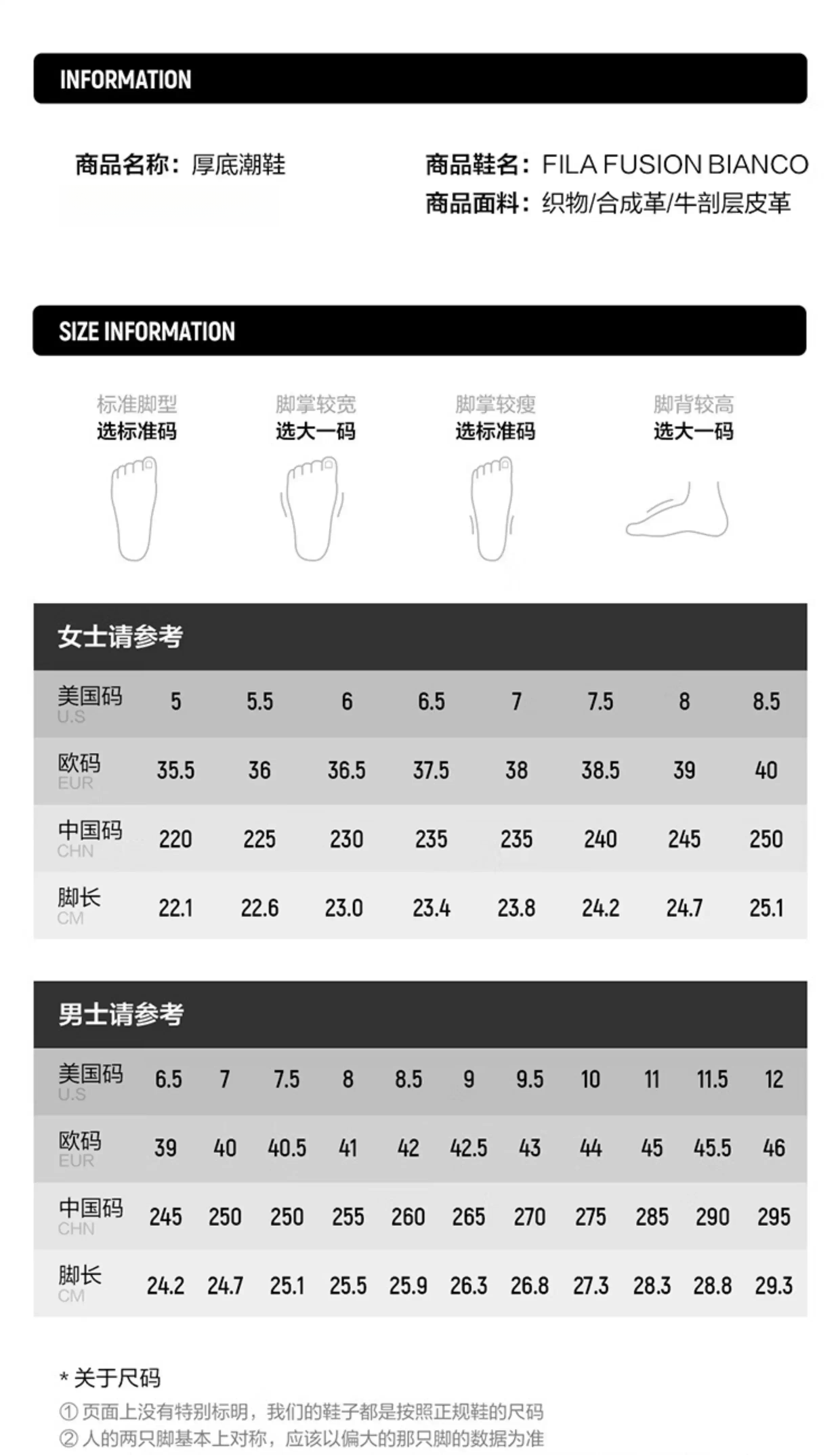 China (cm) 36 - 37 38 - 39 40 - 42 43 - 44 45 - 47