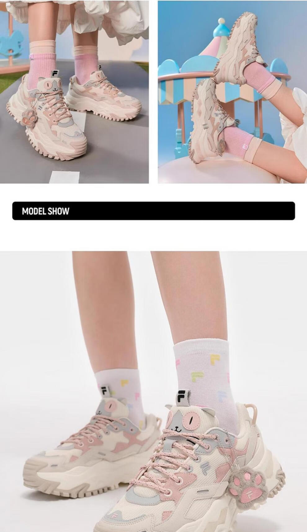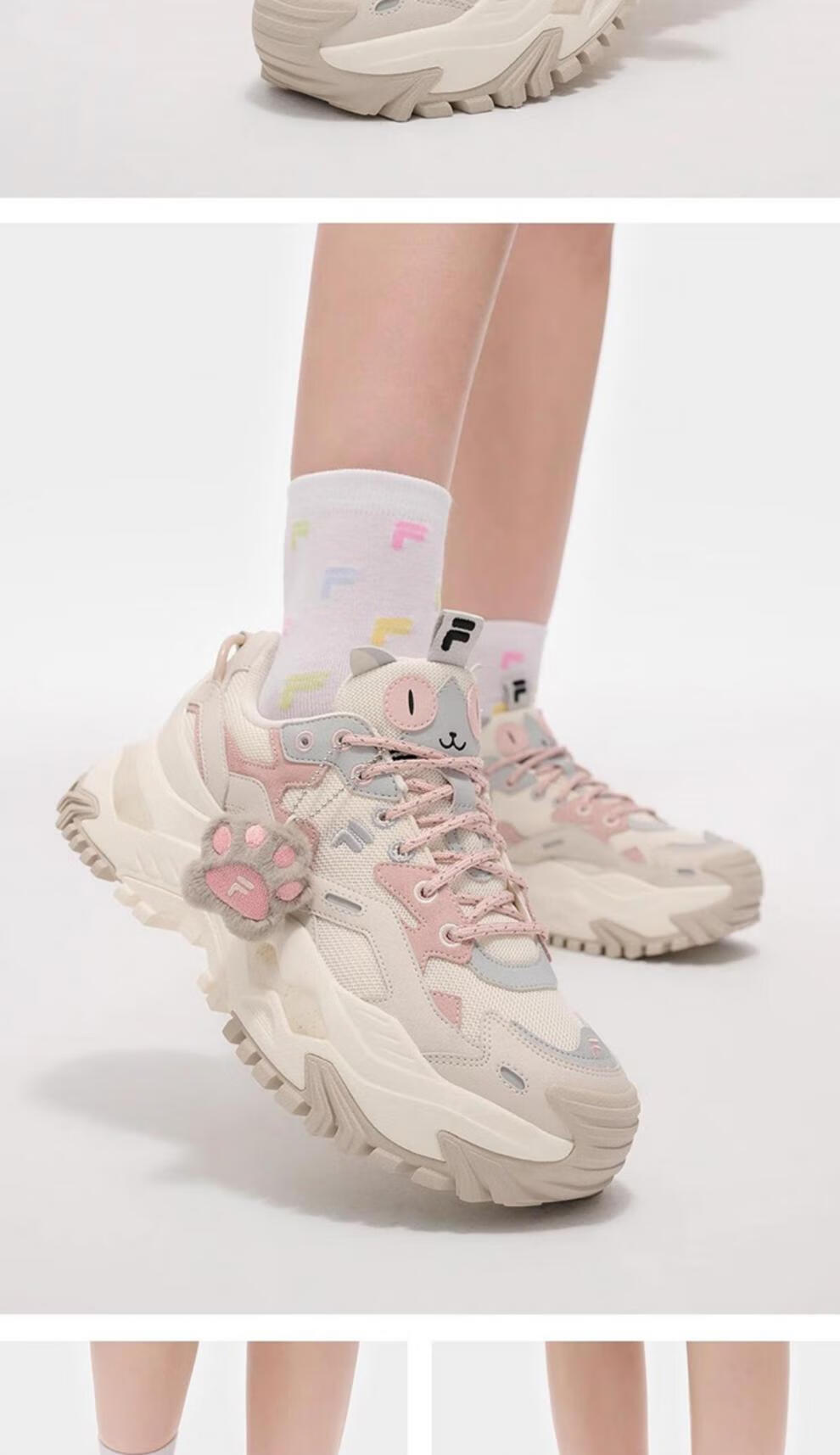 FILA Women's Hard Candy Shoes Winter New Velvet Warm Sports Shoes Dad's Shoes T12W521006 Official Flagship Genuine T12W541007FGS Milk White Black Rose Pink Velvet 36.5