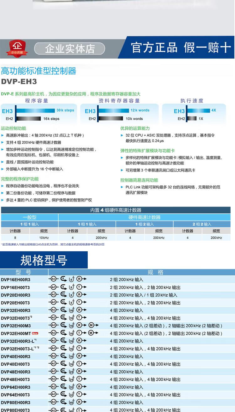 Delta EH3 series PLC/DVP16/24/32/40/58/60EH00R3/DVP40EH00T3/DVP80EH00R3