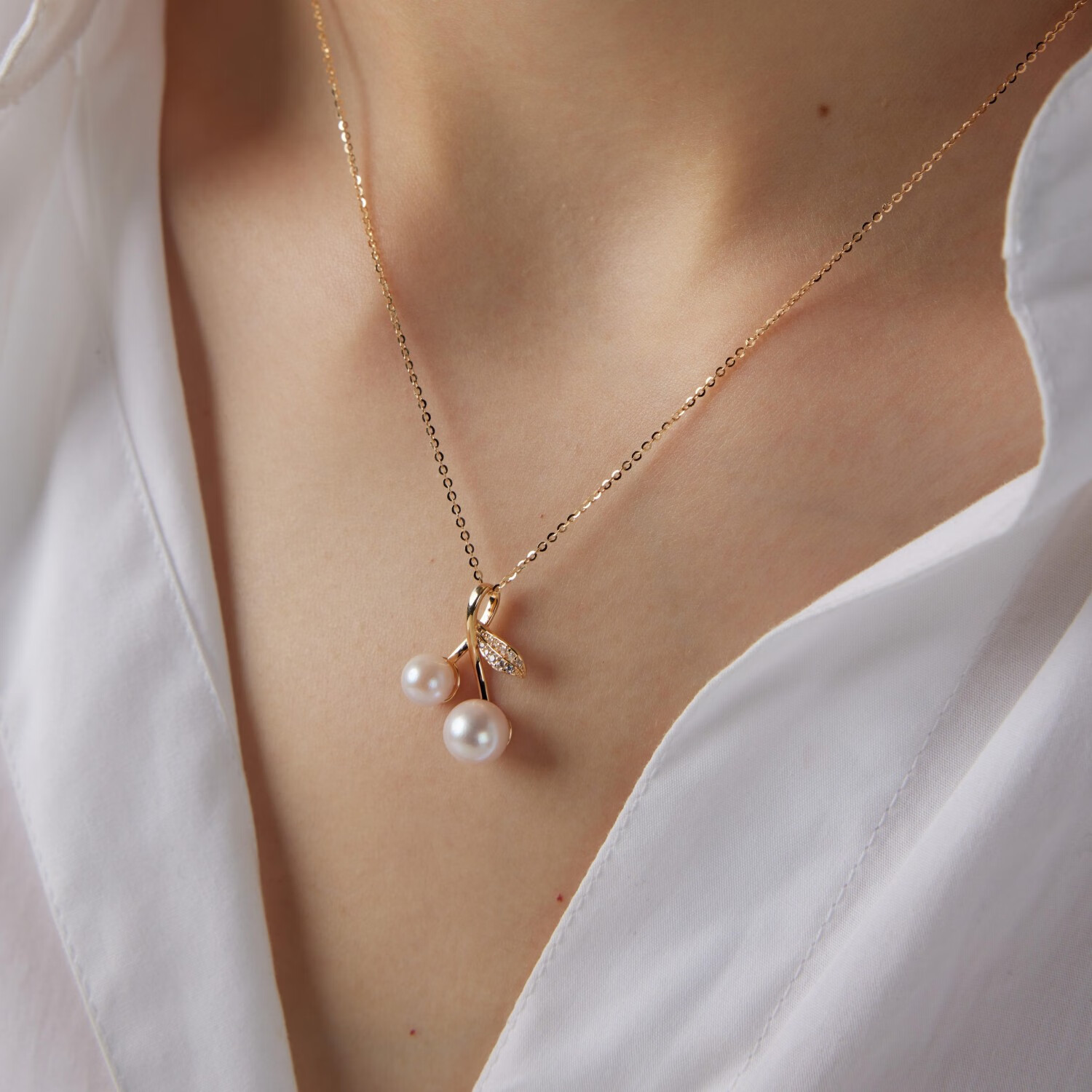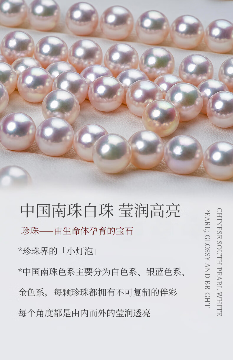 Zunding Pearl-S925 Silver Seawater Pearl Chinese South Pearl White Pearl Double Bead Pendant (Including Chain) 6-7mm/8-9mm White