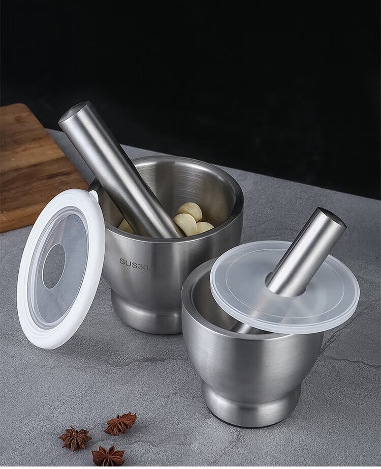 Aoyanlai 304 stainless steel masher, household grinder, manual garlic masher, garlic crusher, grinding bowl, tablet pounding jar, 304 stainless steel (small straight body 10CM) grinding bowl