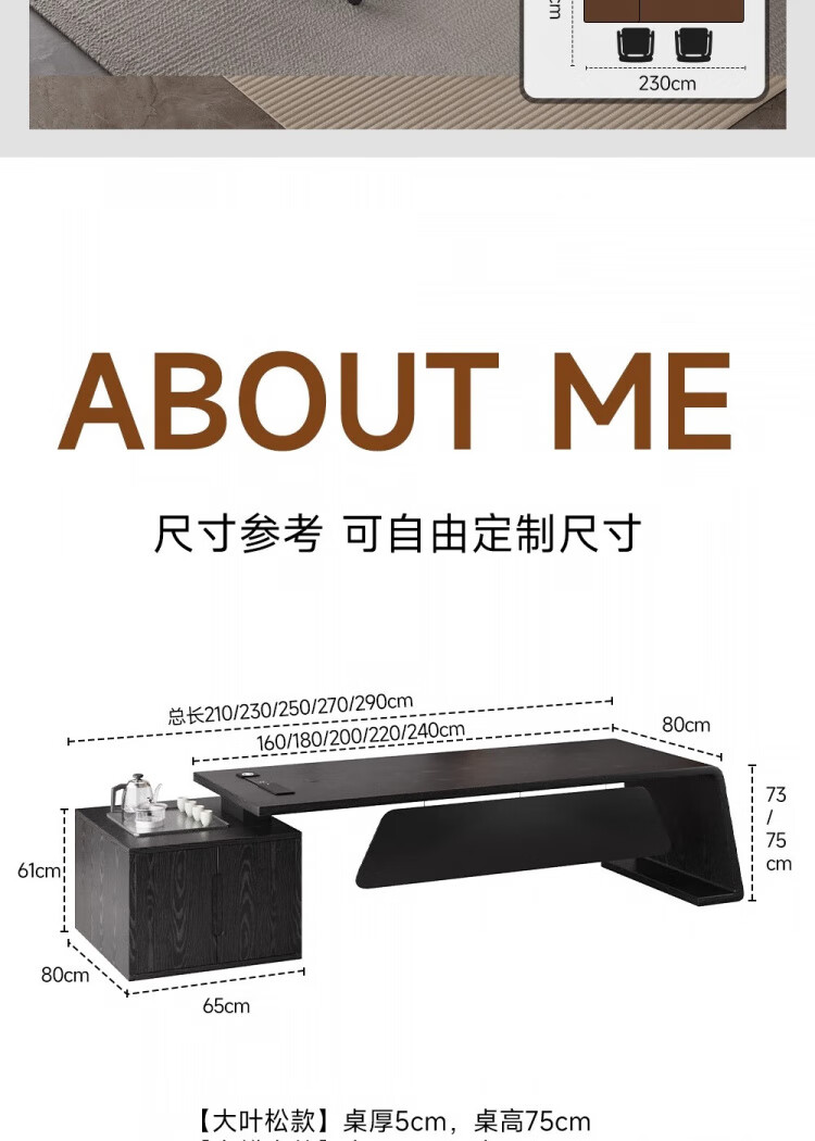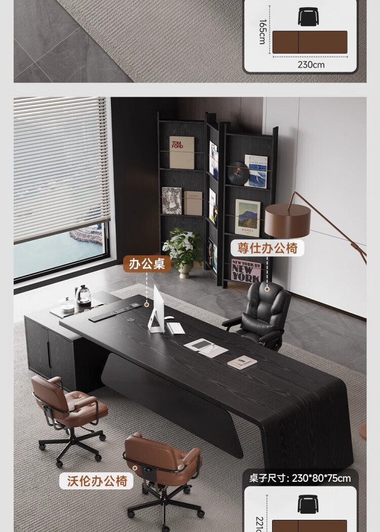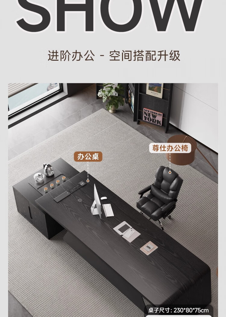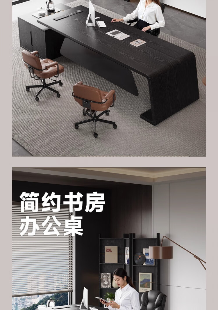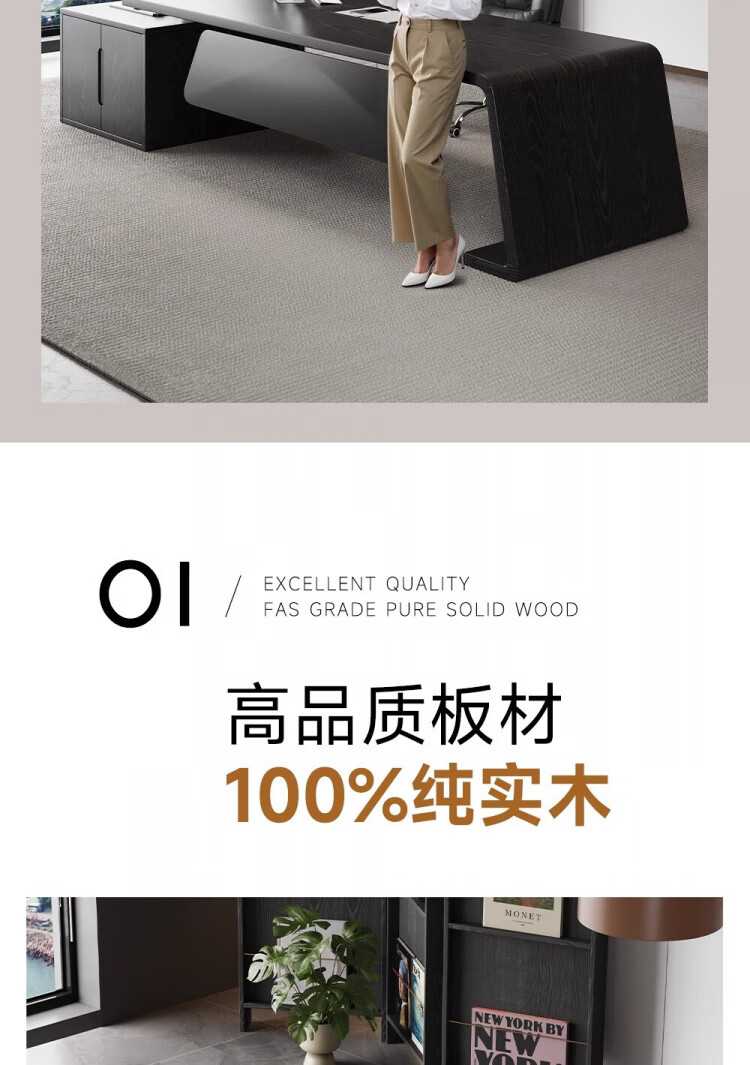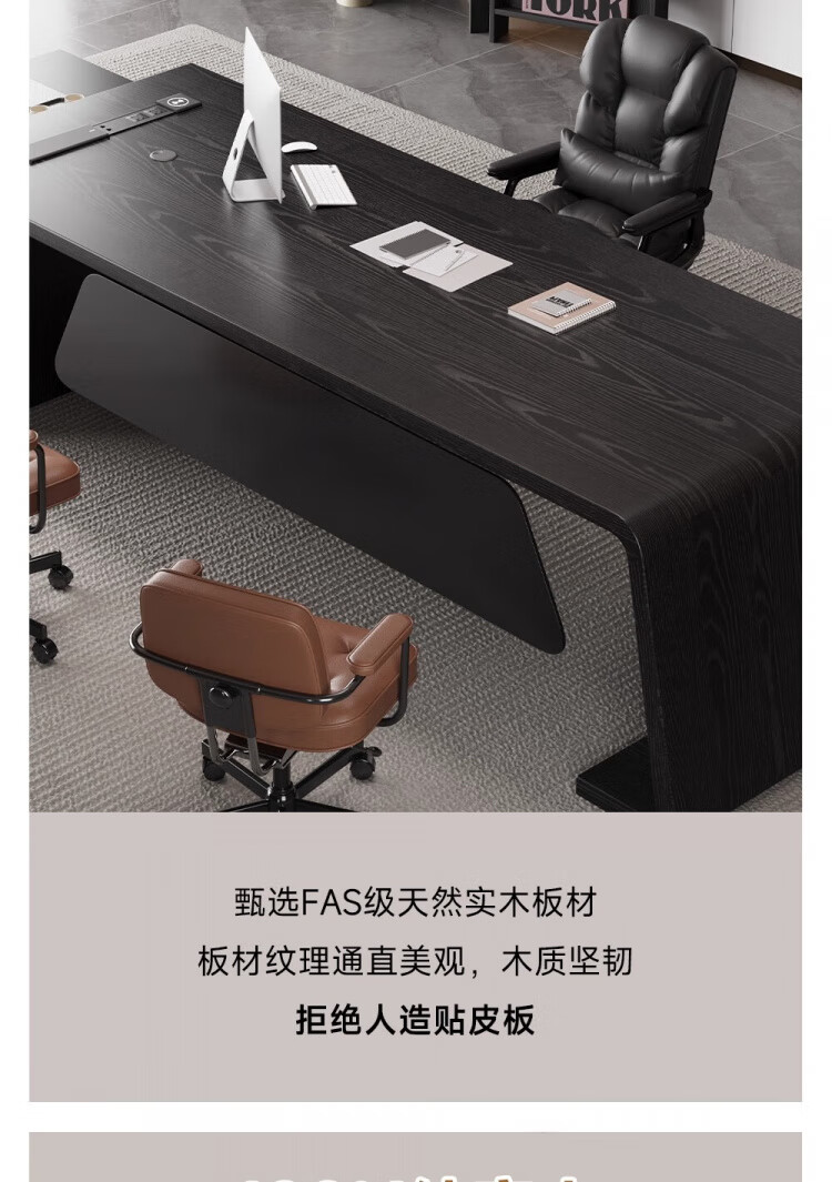 JOBOSNJC solid wood big board boss desk young boss desk reception desk office business tea table computer desk 1.6m big leaf pine desk + Zunshi office chair + Warren office chair *2