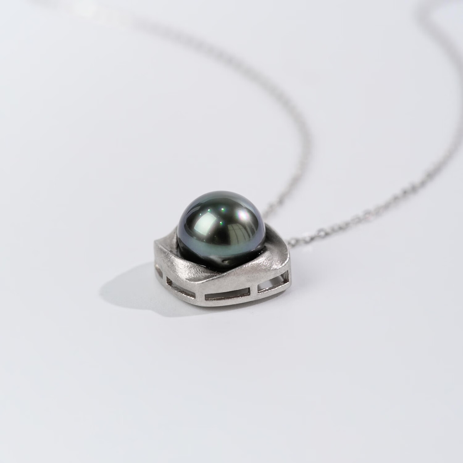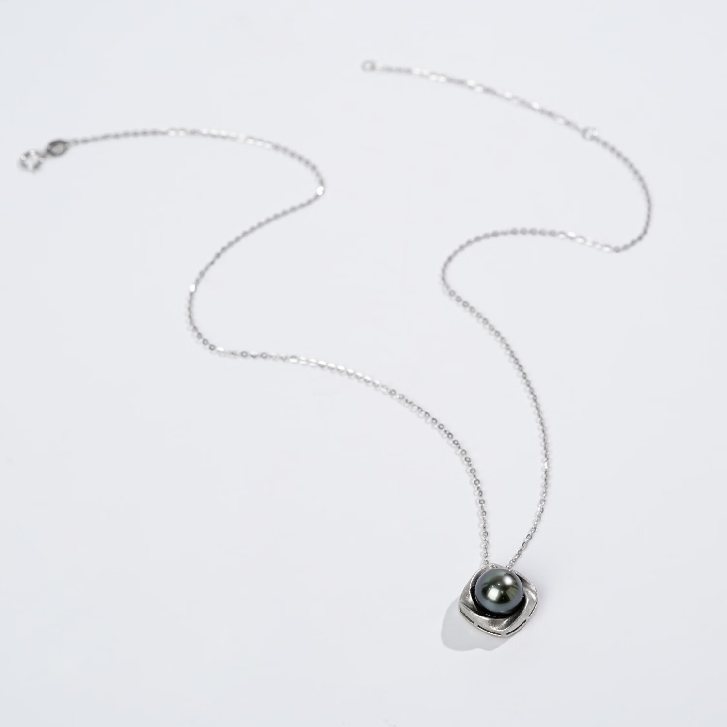 Zunding Pearl-S925 silver seawater pearl Tahitian pendant (including chain) 9-10mm black