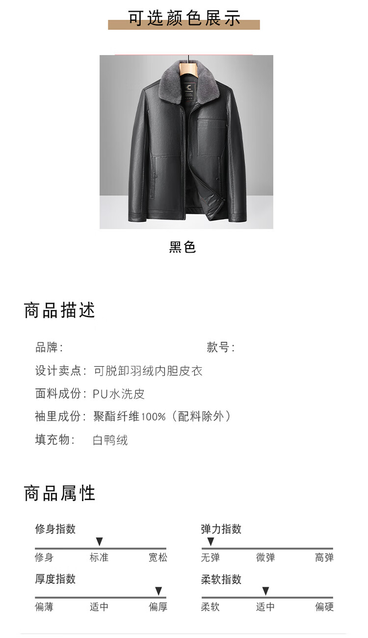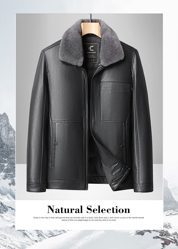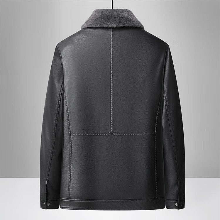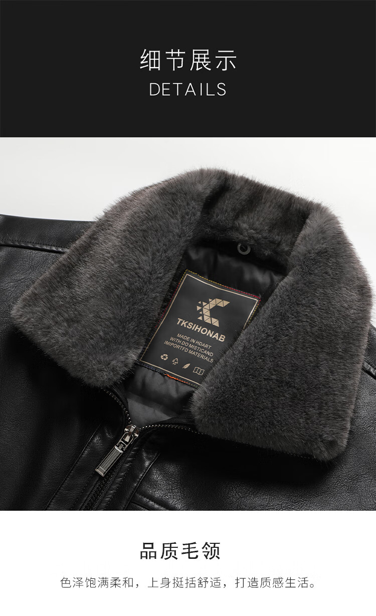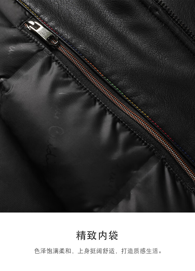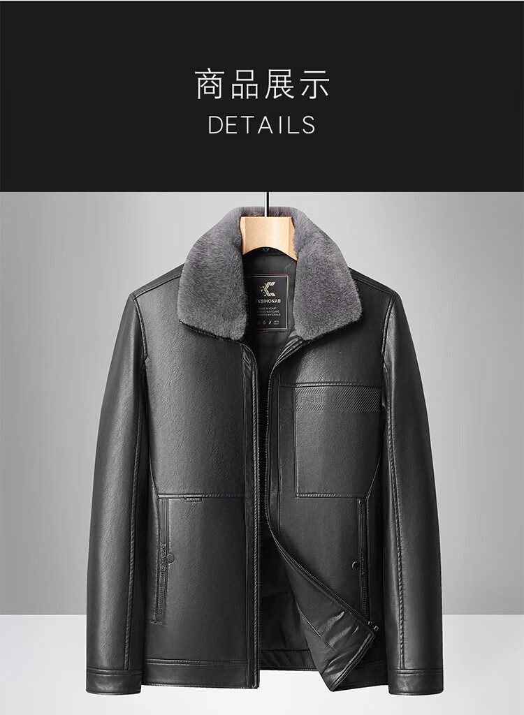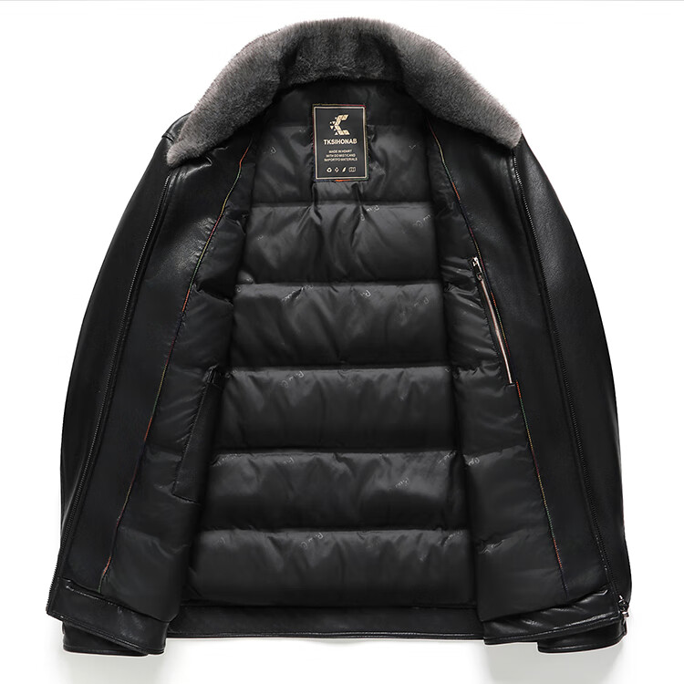 ROMON Leather Jacket Men's Winter Plush Thickened Removable Fur Collar Warm and Cold-proof Down Down Liner Jacket Men Black XL /180 Recommended 120-140 Jin Jin equals 0.5 kg