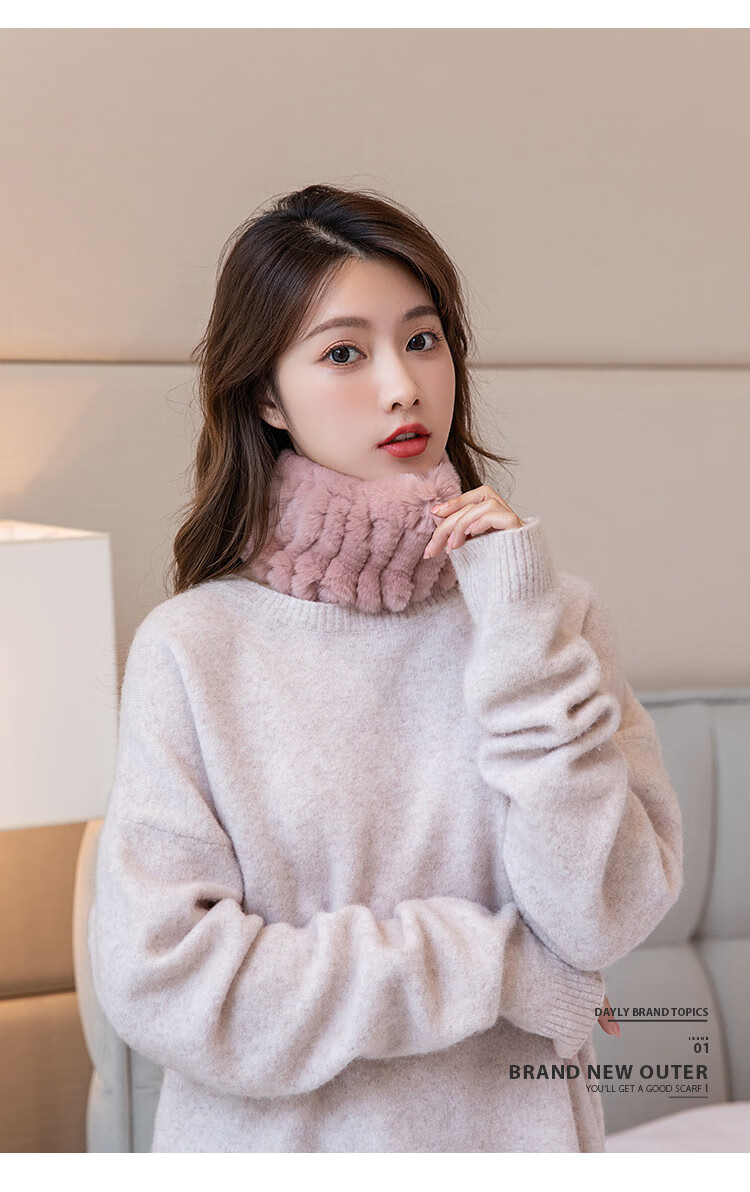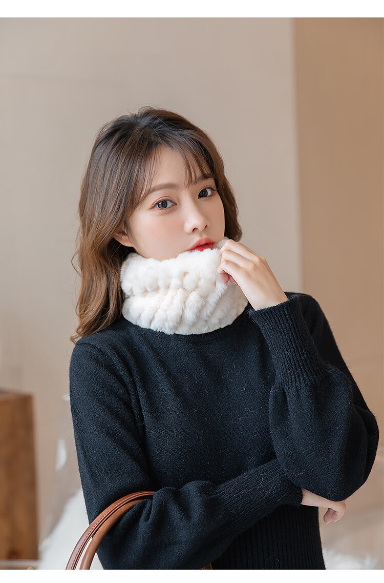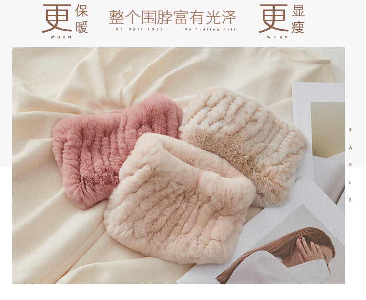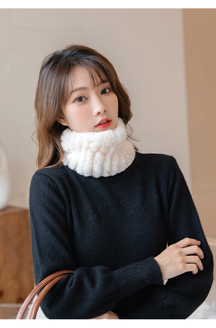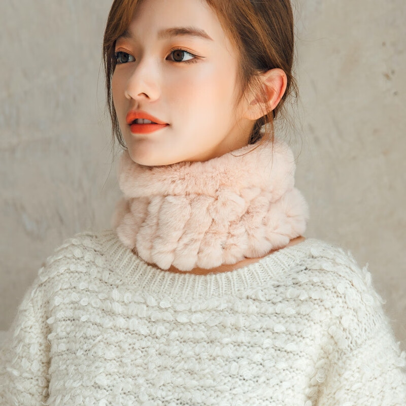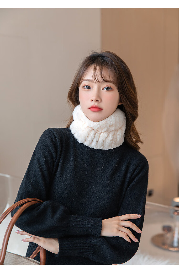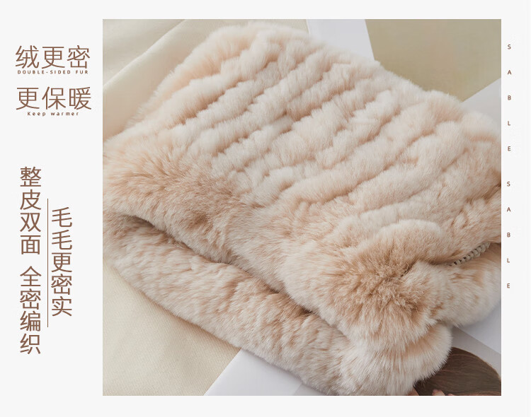 AIFANGNIAO Rex Rabbit Fur Scarf Women's Autumn and Winter Rex Rabbit Headband Fur Scarf Winter Plush Versatile Fur Headband Beige