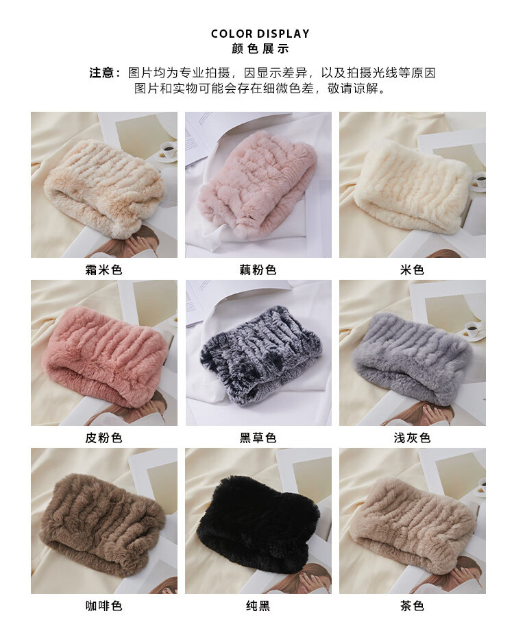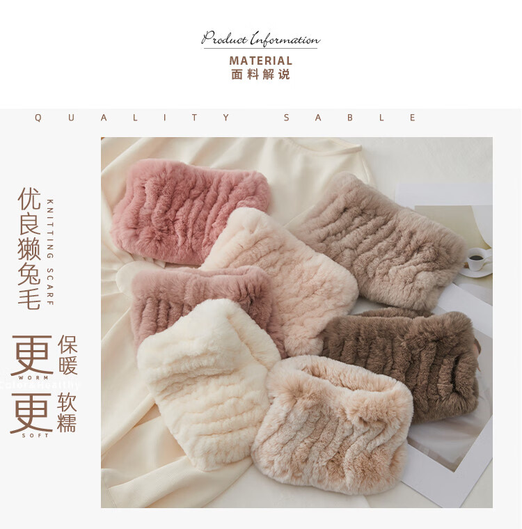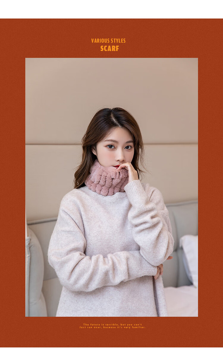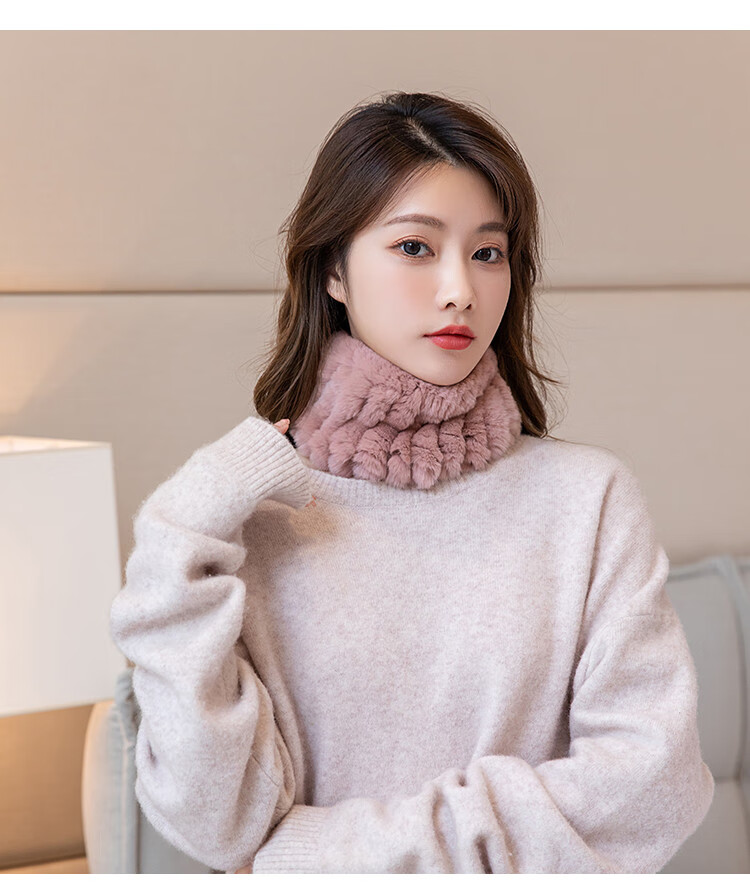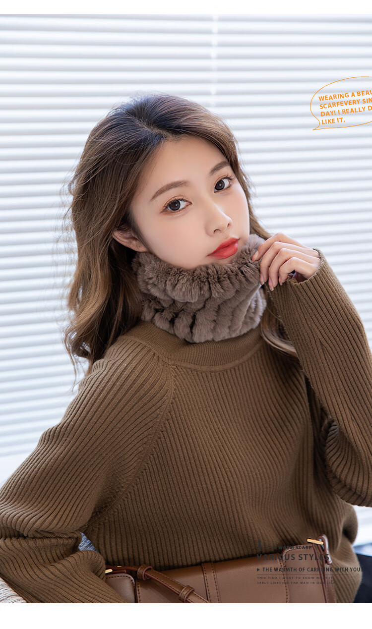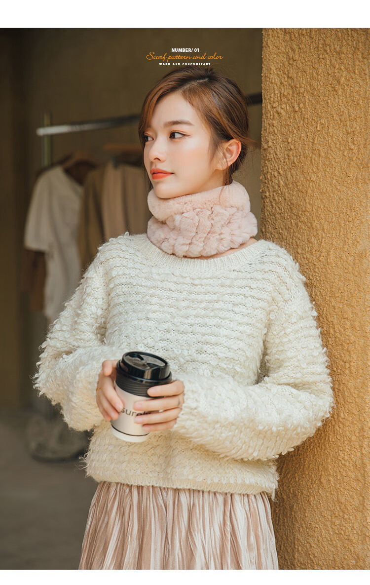 AIFANGNIAO Rex Rabbit Fur Scarf Women's Autumn and Winter Rex Rabbit Headband Fur Scarf Winter Plush Versatile Fur Headband Beige