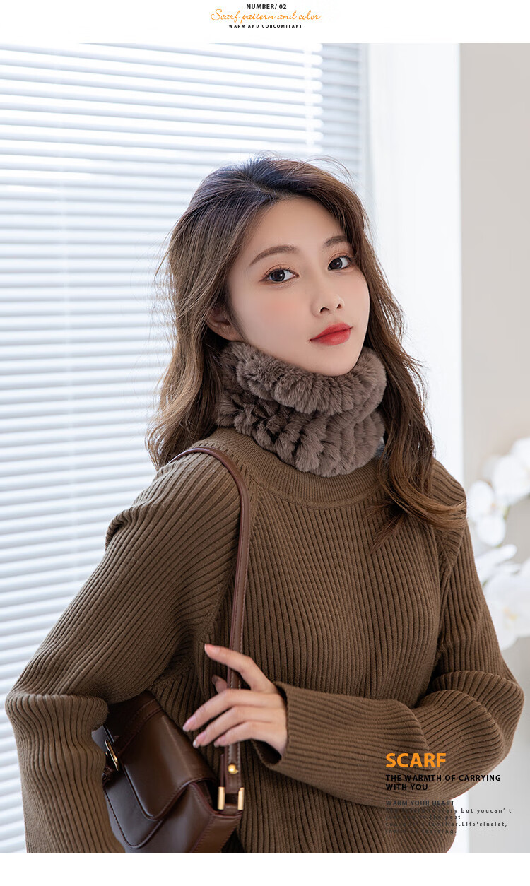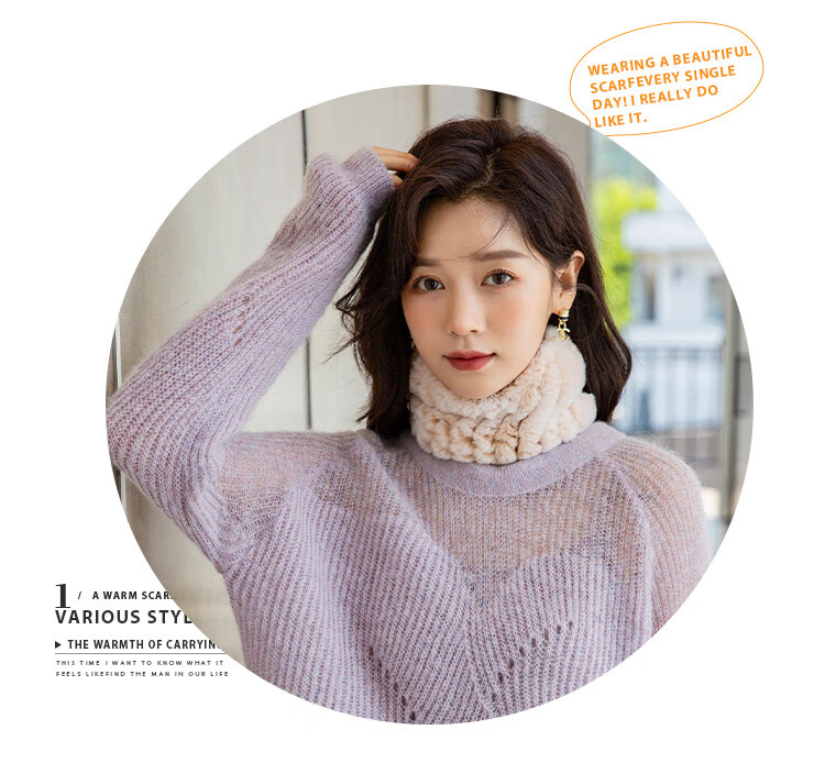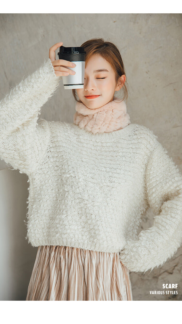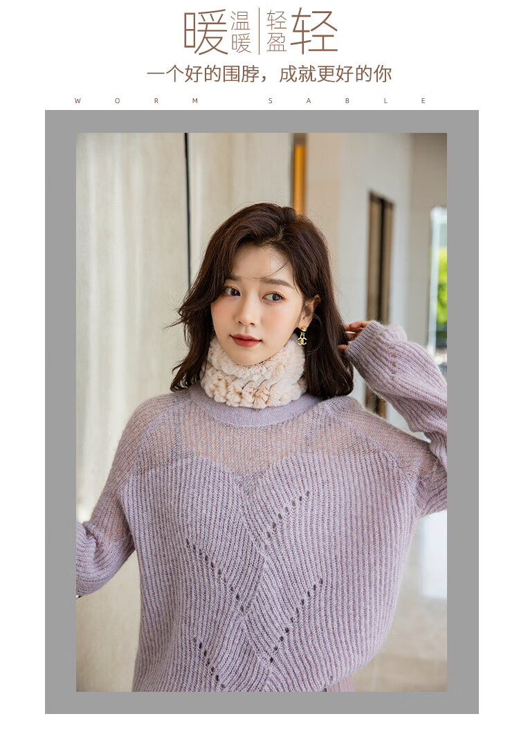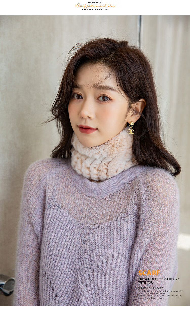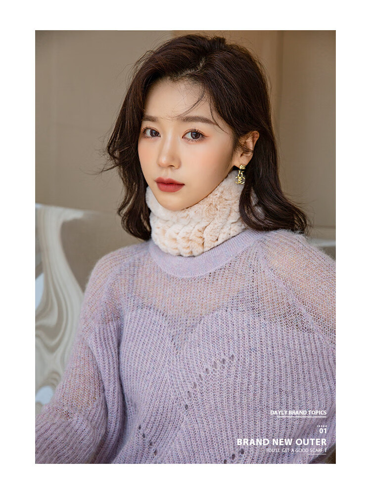 AIFANGNIAO Rex Rabbit Fur Scarf Women's Autumn and Winter Rex Rabbit Headband Fur Scarf Winter Plush Versatile Fur Headband Beige
