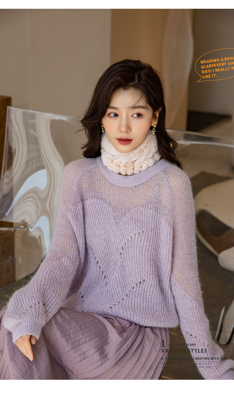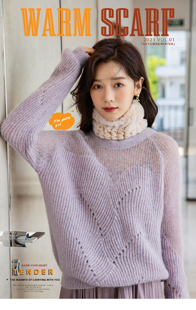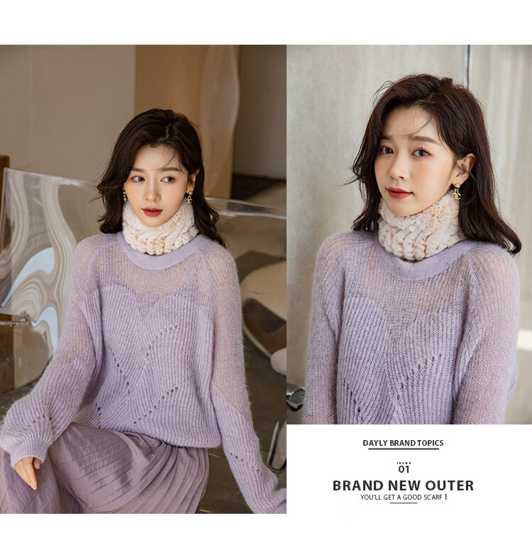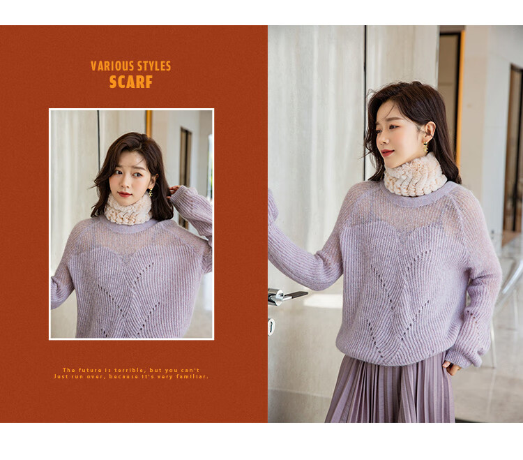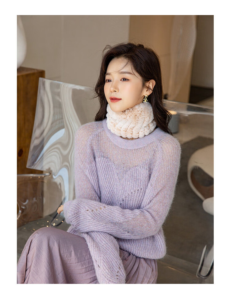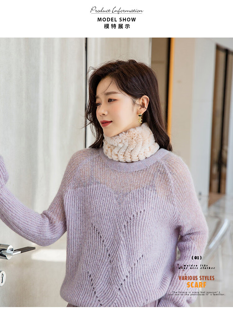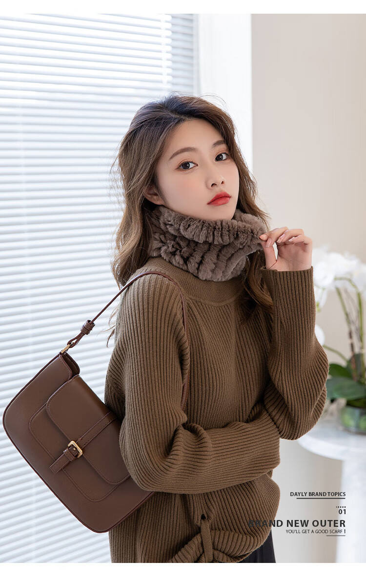 AIFANGNIAO Rex Rabbit Fur Scarf Women's Autumn and Winter Rex Rabbit Headband Fur Scarf Winter Plush Versatile Fur Headband Beige