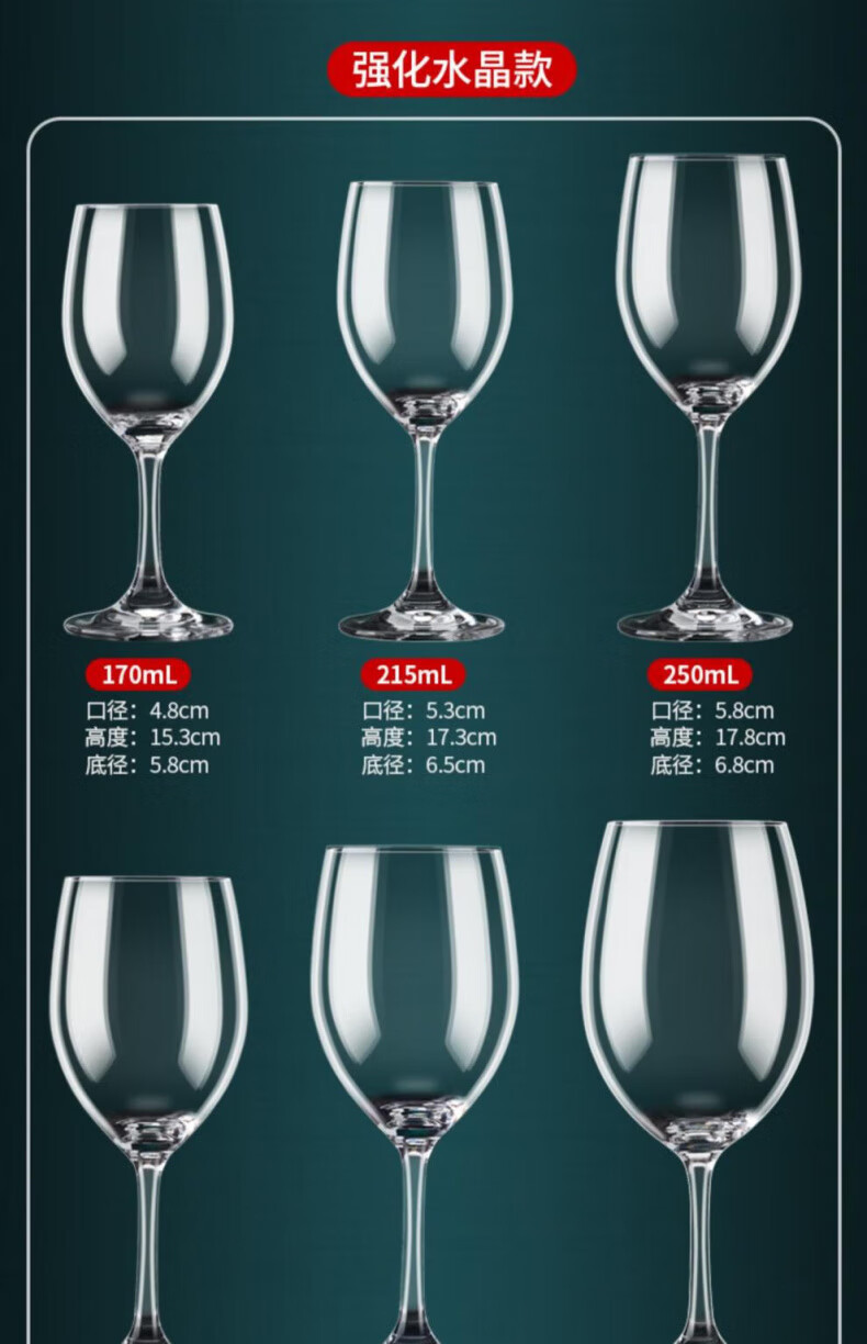 DEATKN German high-end red wine glass European-style hotel hotel household grape and white wine glass set goblet small size reinforced thickened A type (280ml 6 pieces)