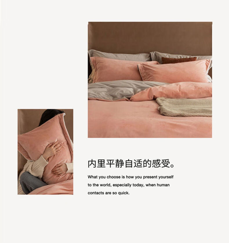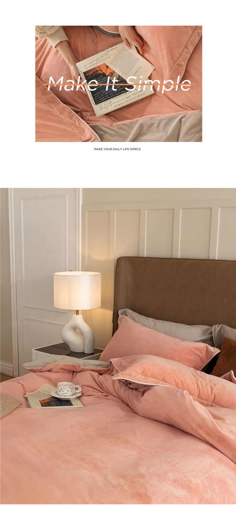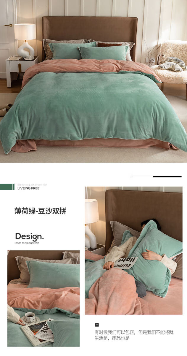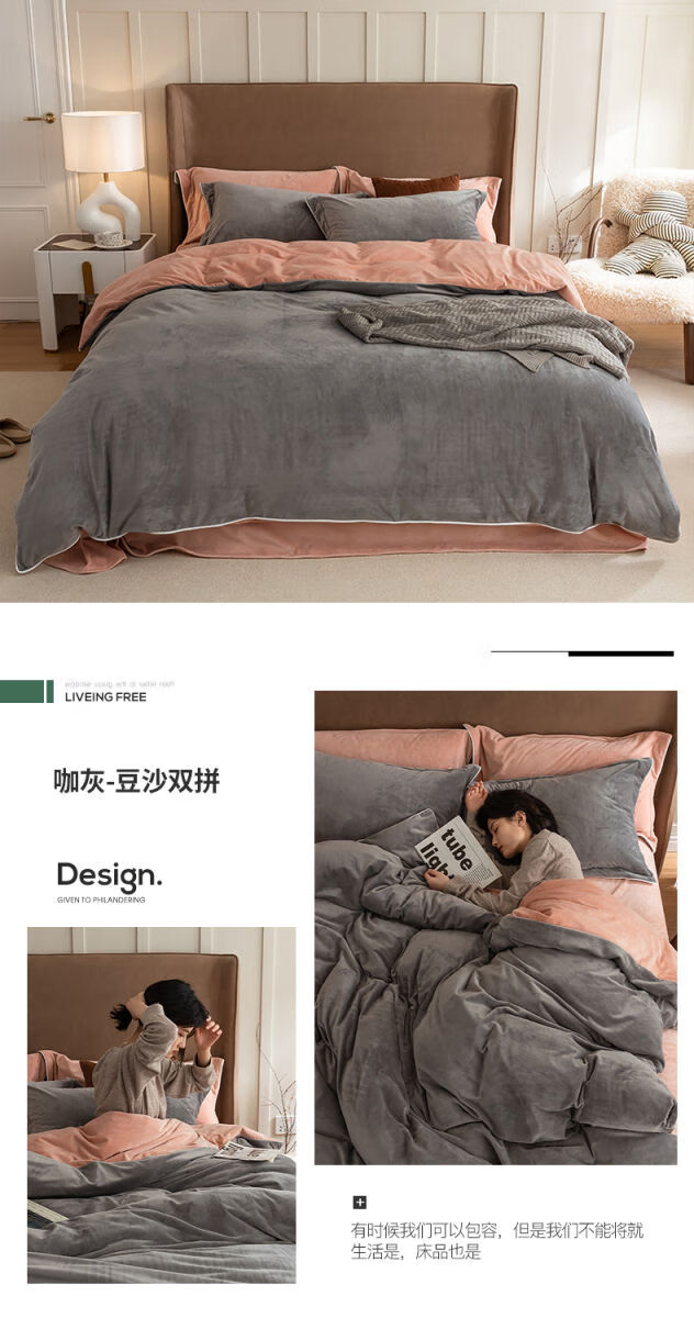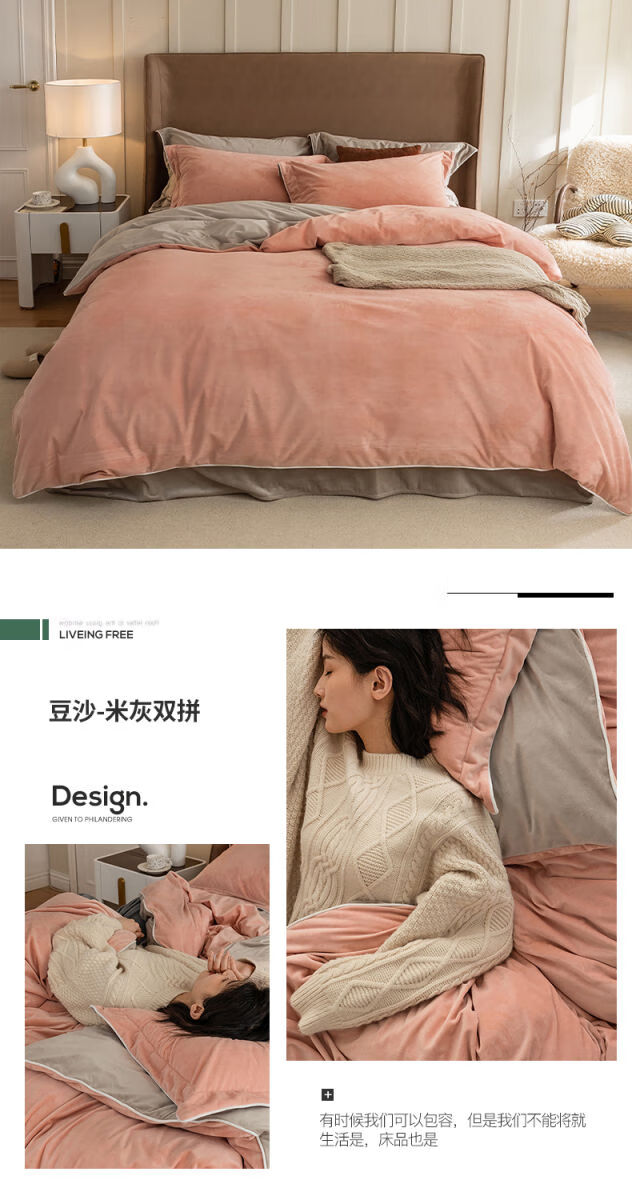 Fantasy bed four-piece set double-sided velvet bed sheet and quilt cover bedding bedding bean paste-beige double combination A type baby velvet anti-static and easy to shed lint sheet style 1.5 meter bed four-piece set bed sheet 240x245 quilt cover
