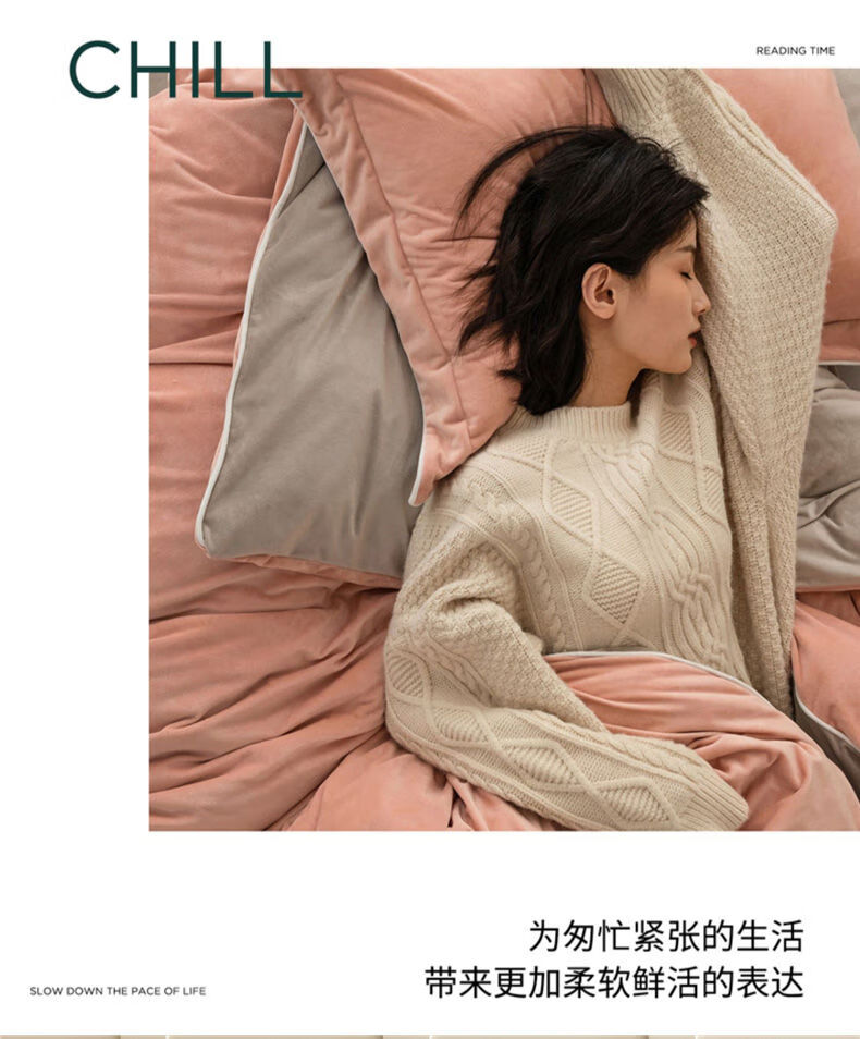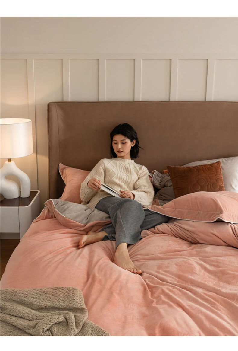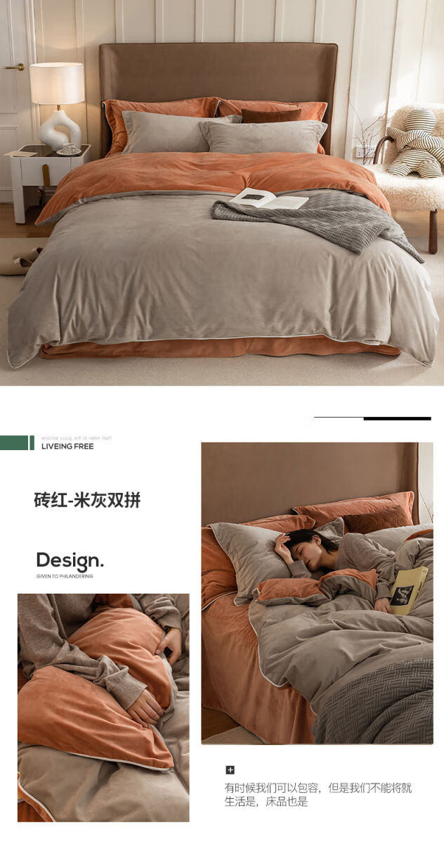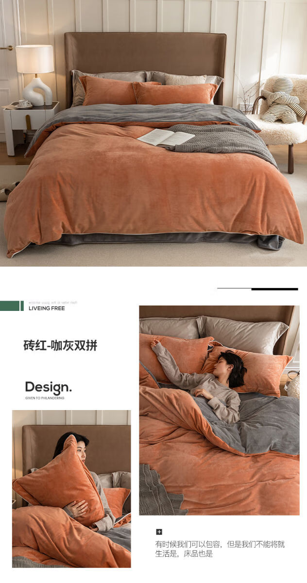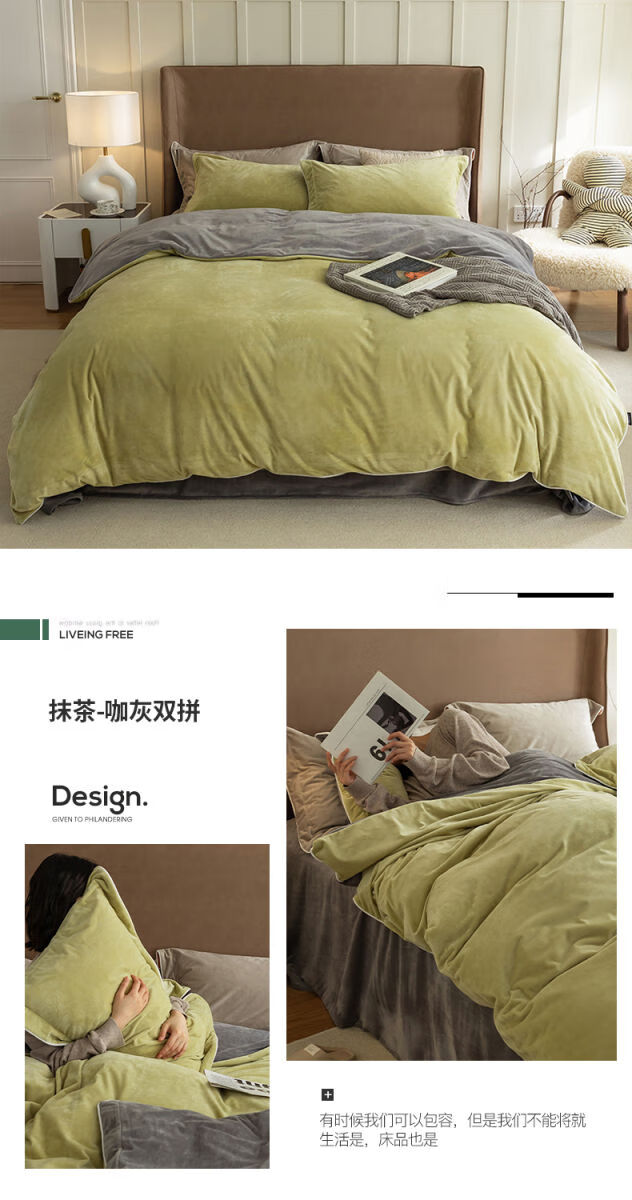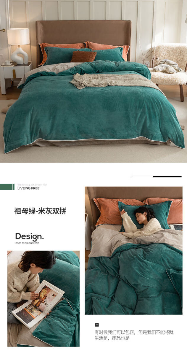 Fantasy bed four-piece set double-sided velvet bed sheet and quilt cover bedding bedding bean paste-beige double combination A type baby velvet anti-static and easy to shed lint sheet style 1.5 meter bed four-piece set bed sheet 240x245 quilt cover