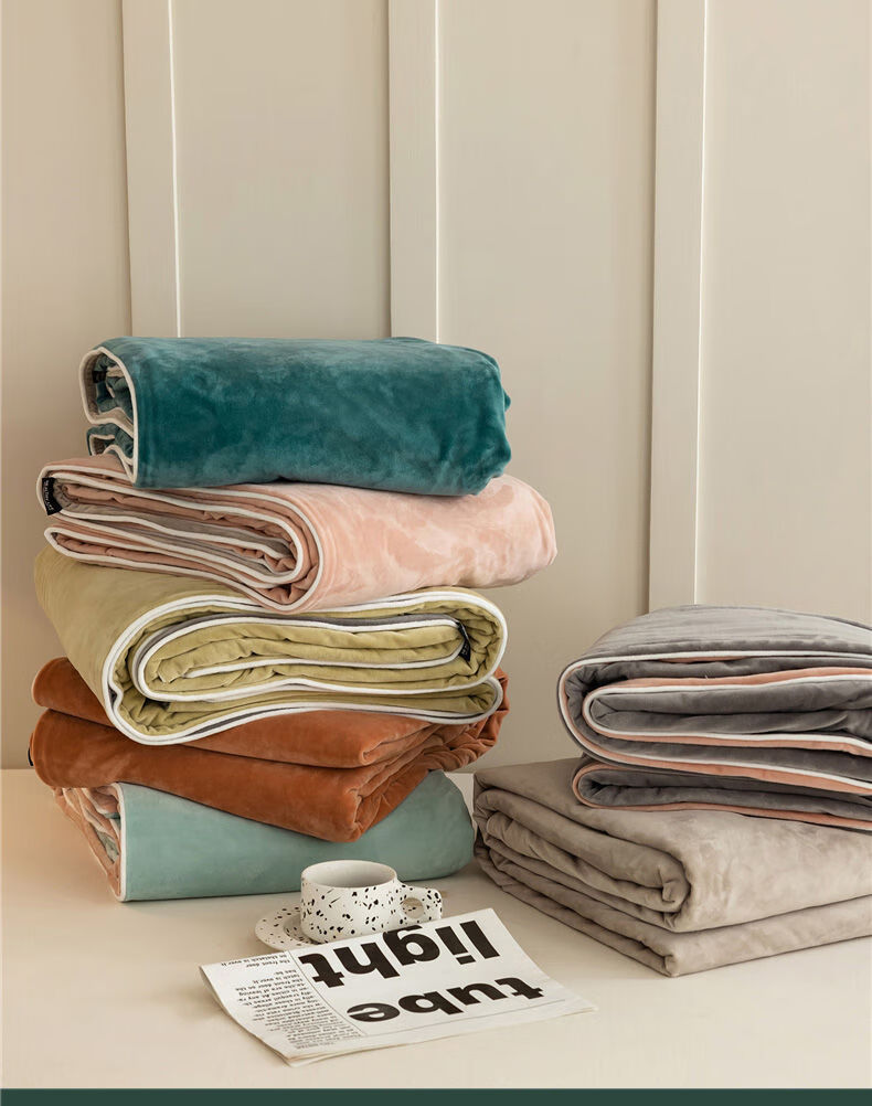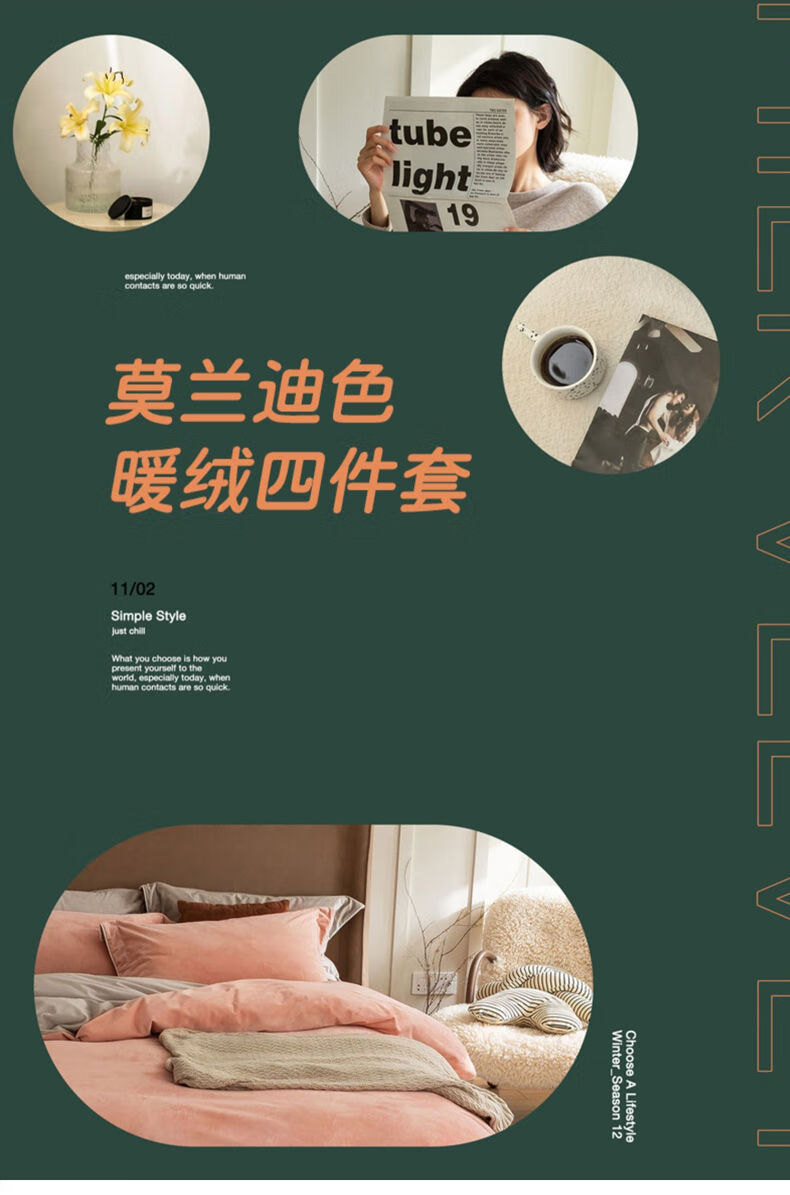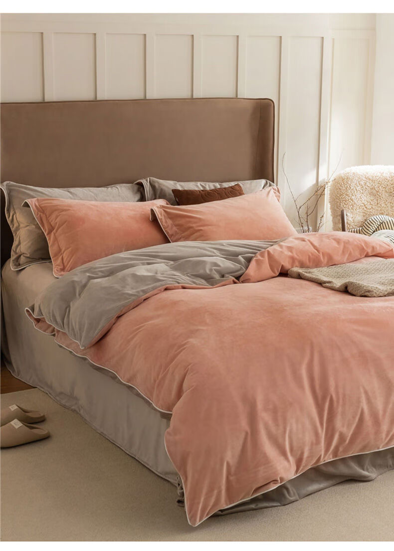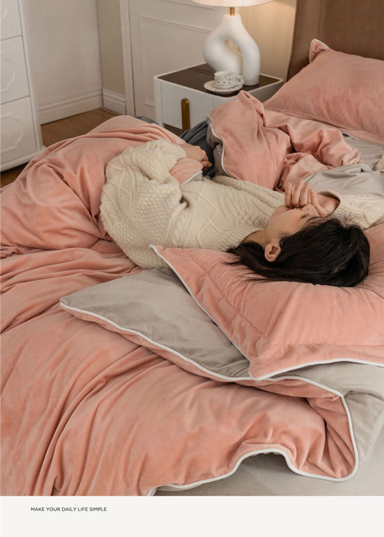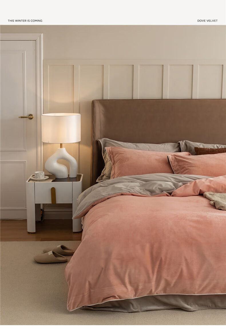Fantasy bed four-piece set double-sided velvet bed sheet and quilt cover bedding bedding bean paste-beige double combination A type baby velvet anti-static and easy to shed lint sheet style 1.5 meter bed four-piece set bed sheet 240x245 quilt cover