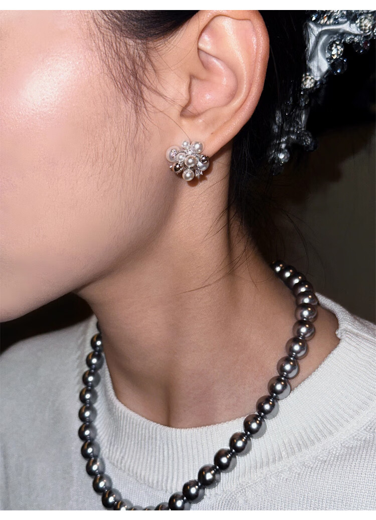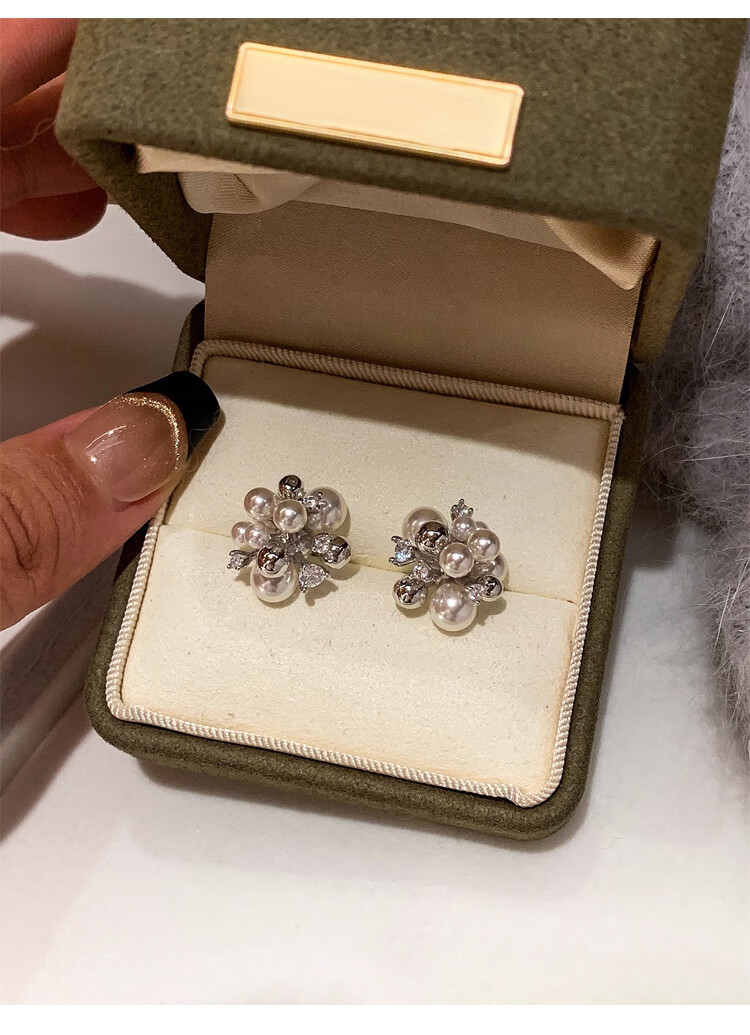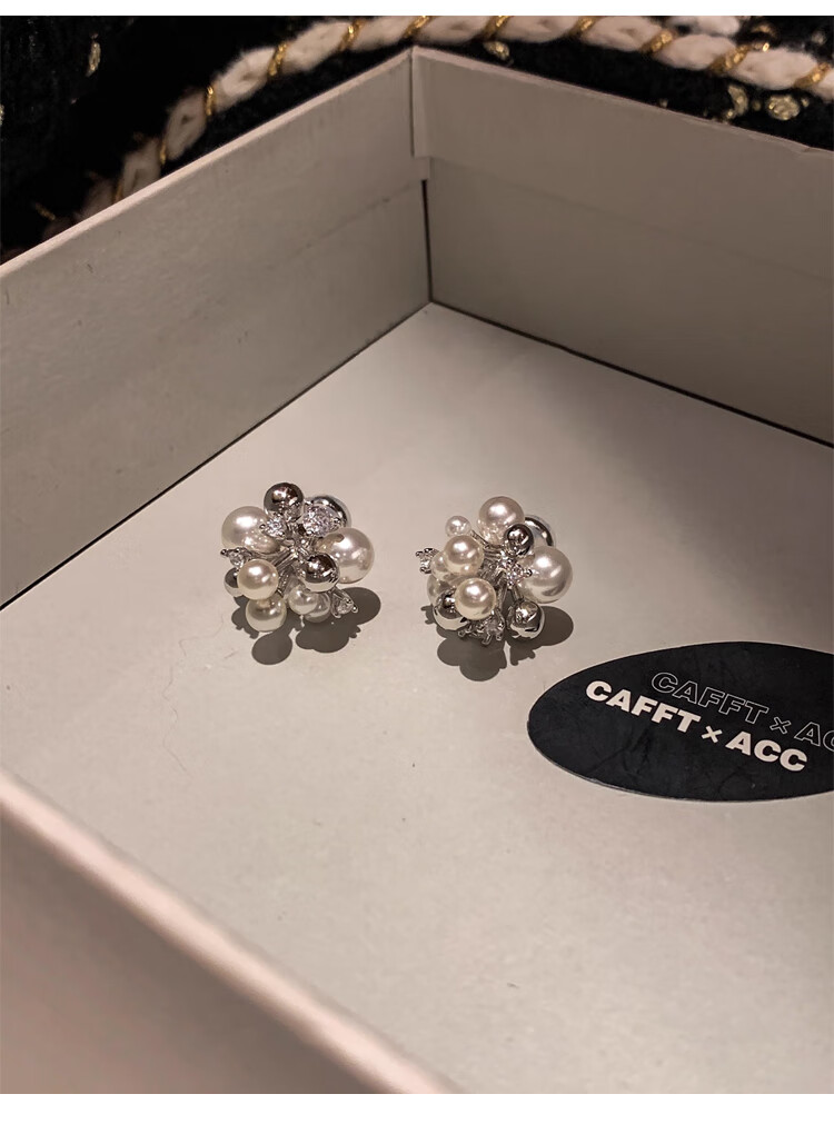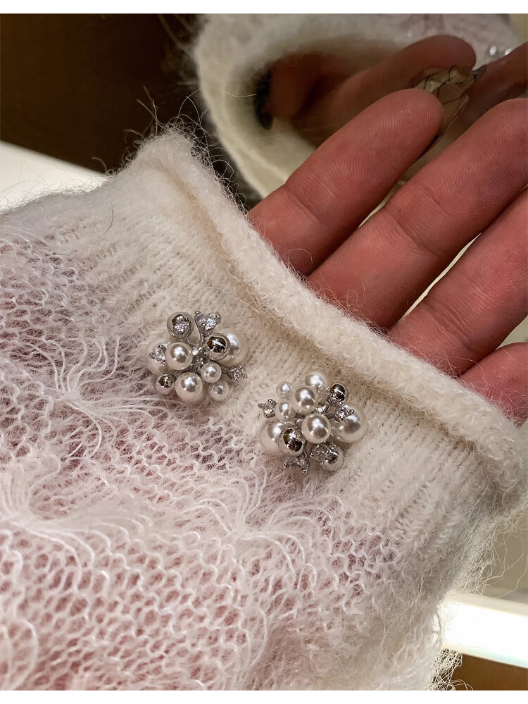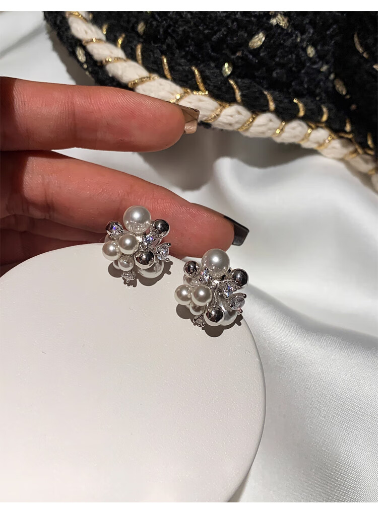 Lnieer925 Silver Needle Zircon Pearl Earrings Women's Light Luxury High-Quality Temperament Versatile Earrings 2025 New Autumn and Winter Earrings Zircon Pearl Flower Ball Earrings 925 Silver Needle