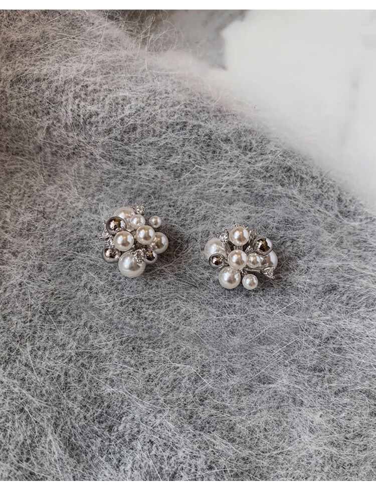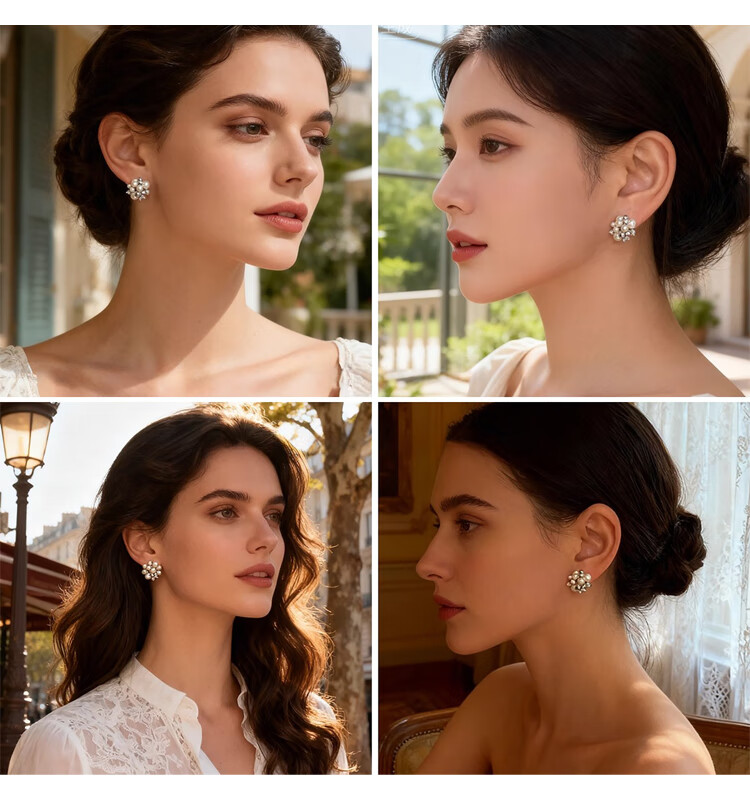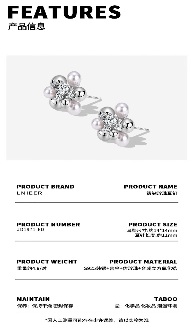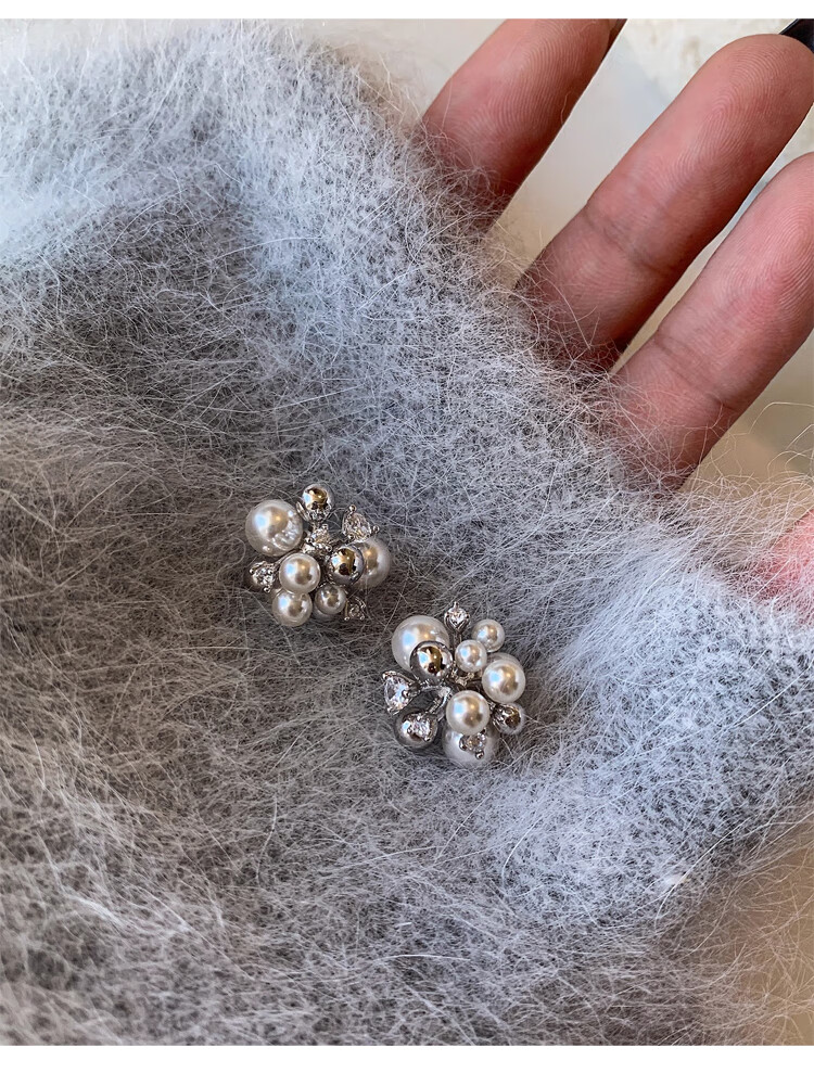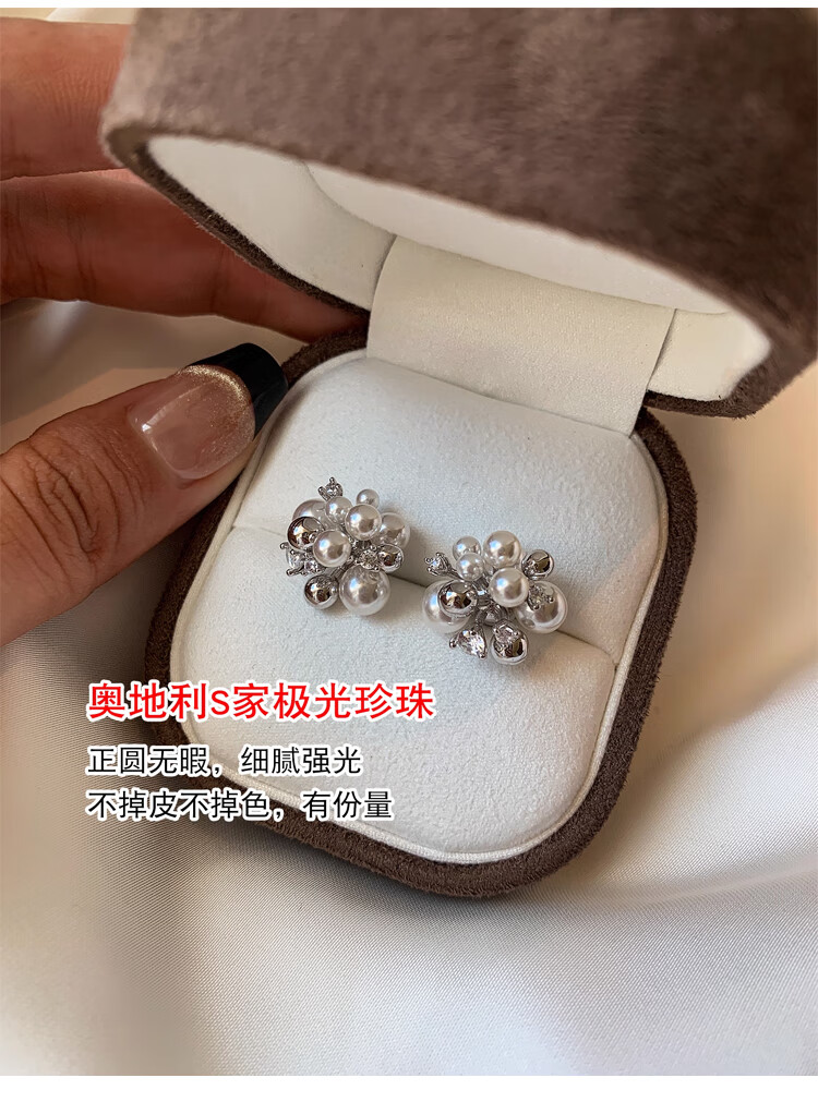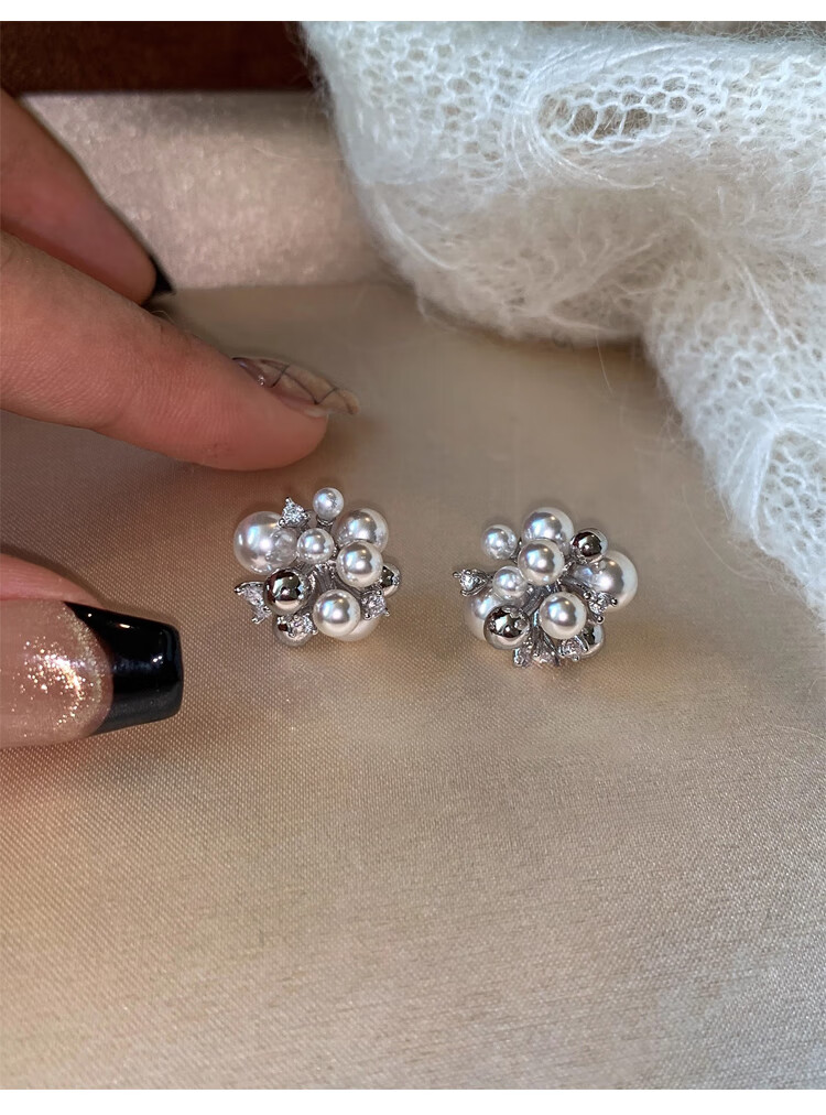 Lnieer925 Silver Needle Zircon Pearl Earrings Women's Light Luxury High-Quality Temperament Versatile Earrings 2025 New Autumn and Winter Earrings Zircon Pearl Flower Ball Earrings 925 Silver Needle