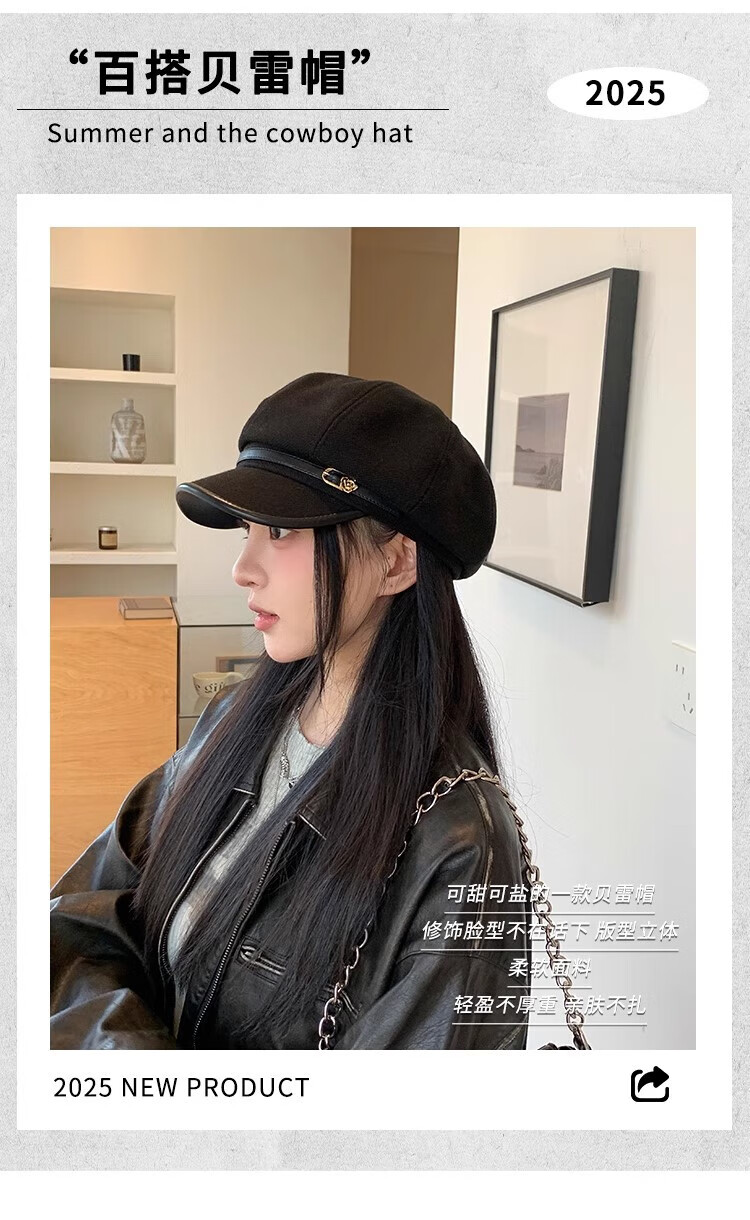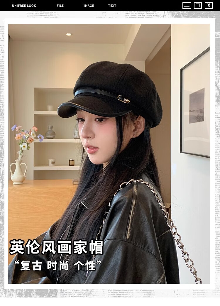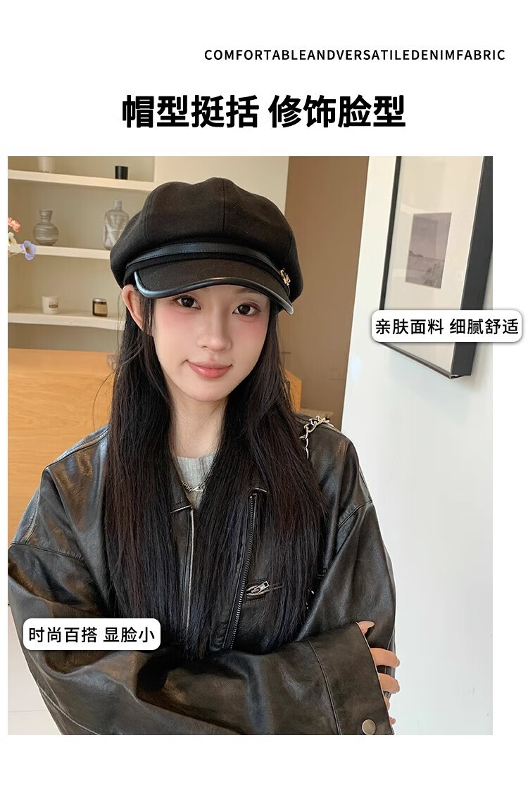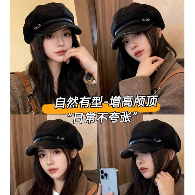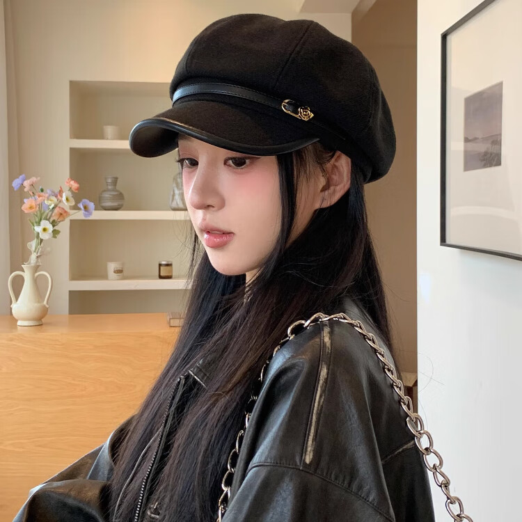 Tokishima beret autumn and winter hat black Japanese retro literary style octagonal female peaked cap female octagonal hat literary sense black one size