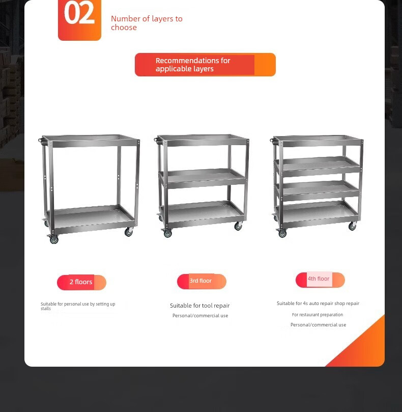 Wen Yijia stainless steel tool cart multi-functional car repair three-layer parts cart tool cabinet car repair mobile shelf hand two-layer stainless steel tool cart (2-inch wheel)