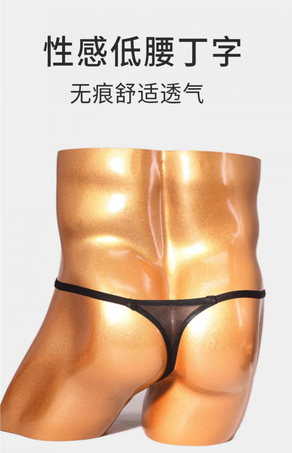 Ayi Men's Underwear Ice Silk Single-layer T-Pants Single-layer Elastic Silky Smooth T-Pants Stimulating Seamless Sexy Thin Strap Fit T-Pants Rose Red M