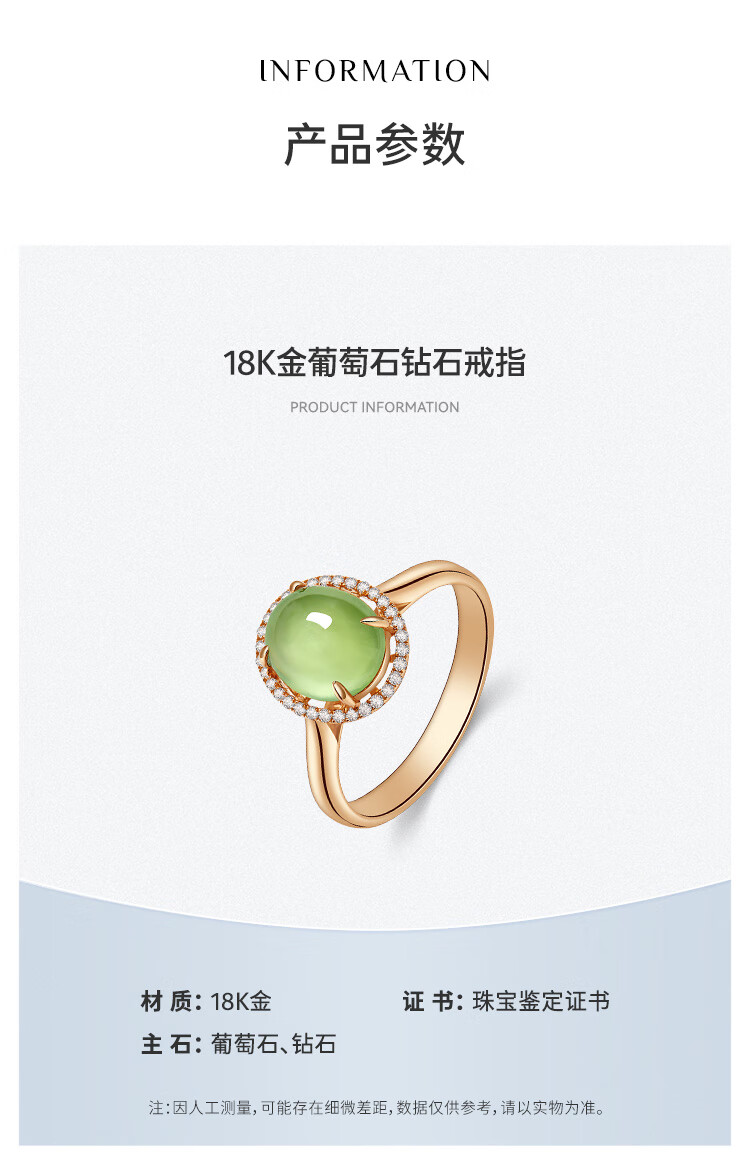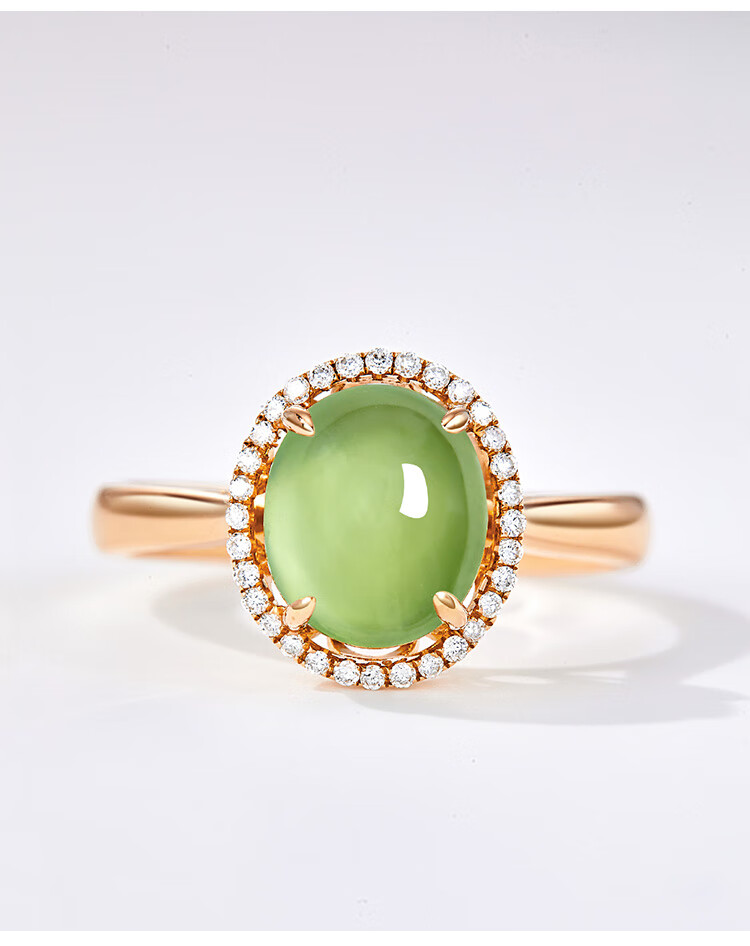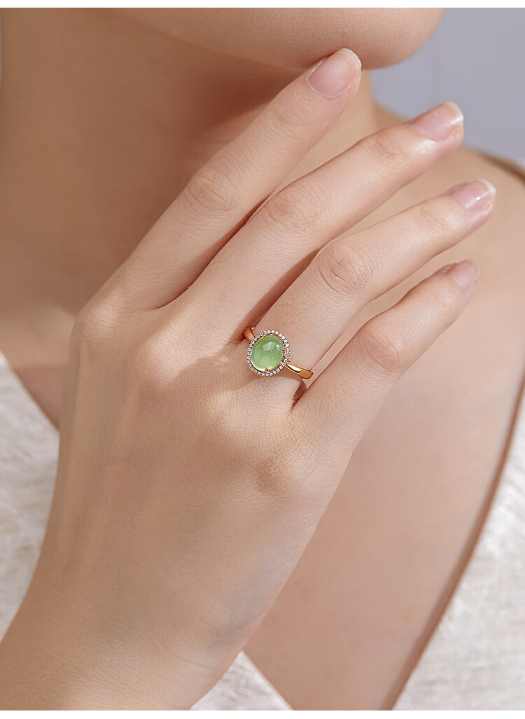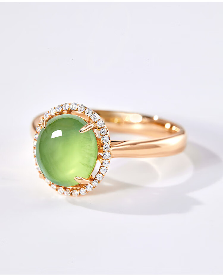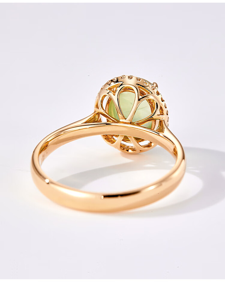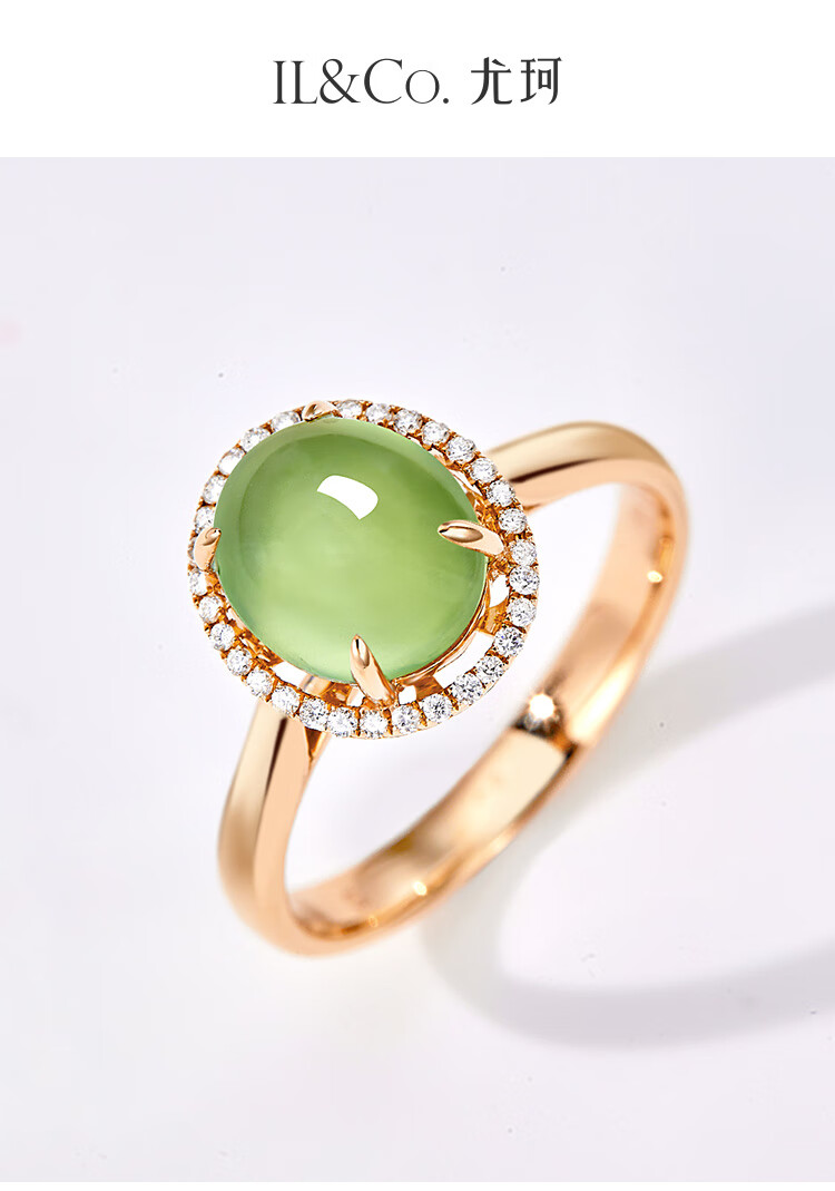 IL&CO Youke 18K gold prehnite ring for women diamond inlaid natural gemstone colored treasure ring birthday and Valentine's Day gift for women 18K gold prehnite ring No. 13