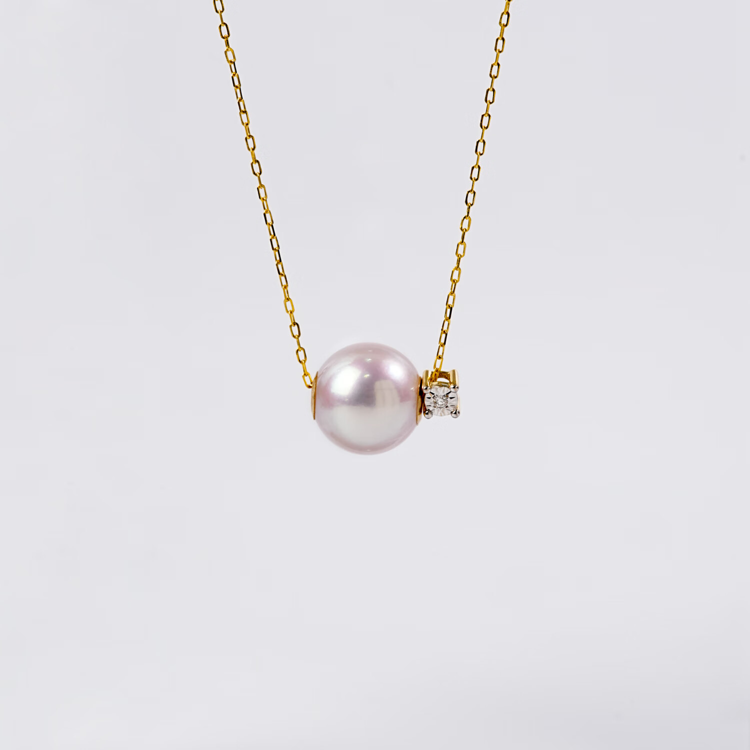 Zun Ding Pearl - Full body 18K gold diamond Chinese south pearl white pearl pendant (including chain) 8-9mm white 8-9mm