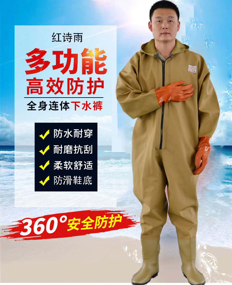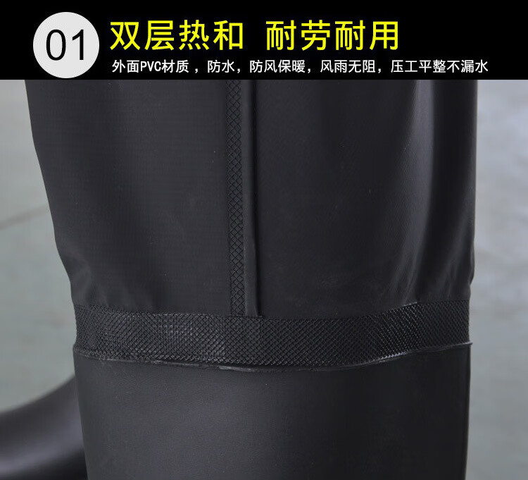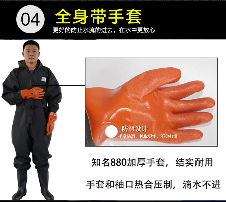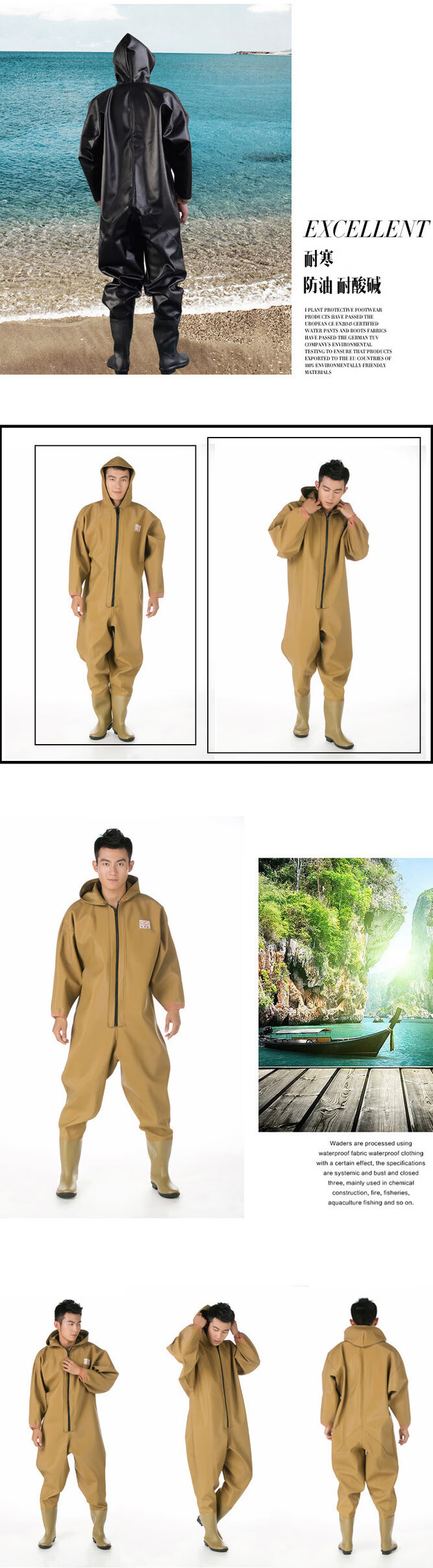 Zailu PVC full body waders for fishing, fishing suits, thickened wading pants, waterproof one-piece fishing pants, yellow knitted gloves, whole body 47 47