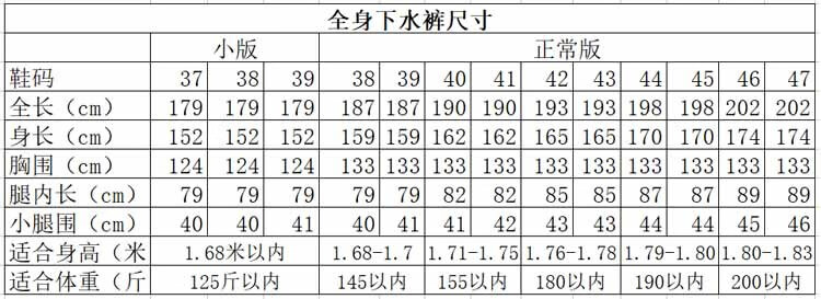 China (cm) 160-165/84-86 165-170 / 88-90 167-172 / 92-96 168-173 / 98-102 170-176 / 106-110