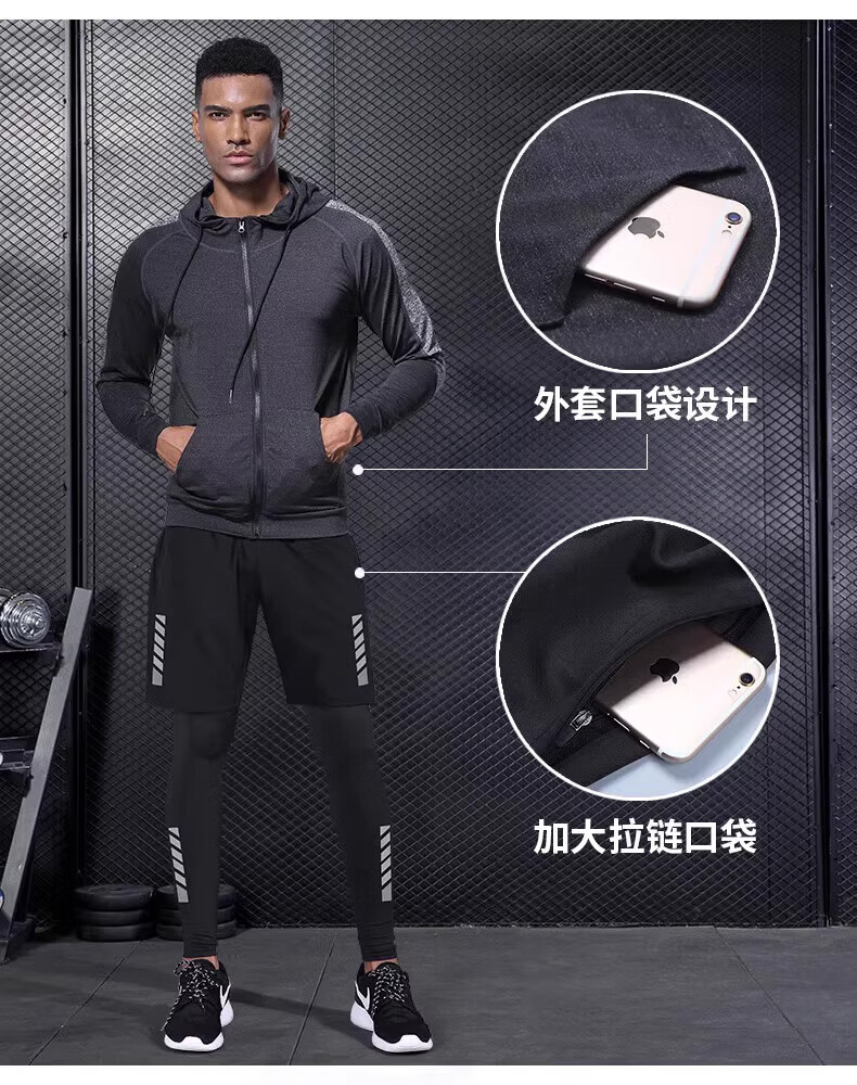 Bimax sports jacket men's spring fitness quick-drying running and cycling morning running training clothes outdoor long-sleeved tops new sports jacket hooded quick-drying S (90-115) Jin Jin equals 0.5 kg