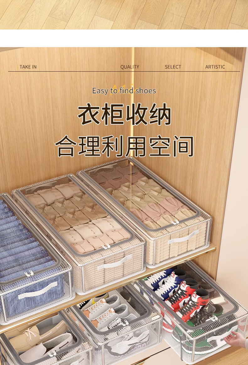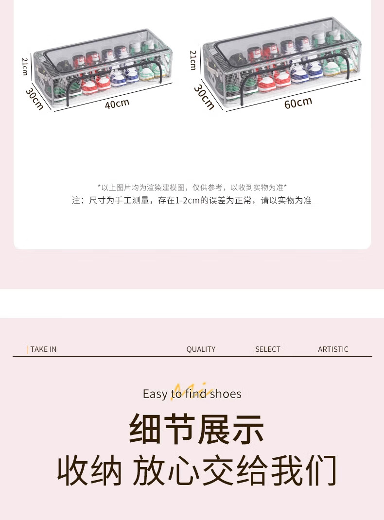Fat Donglai's same style shoe box storage box transparent shoe storage artifact space-saving dust-proof shoe cabinet for boot drawer 1 piece large + medium thick steel frame / stable stacking