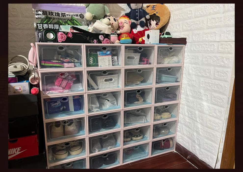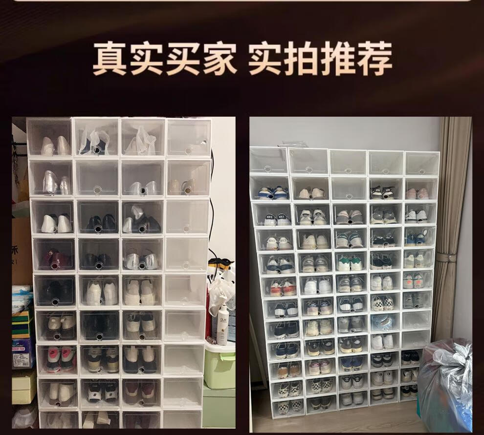 Fat Donglai same style shoe box storage box transparent thickened clamshell shoe storage folding drawer type shoe cabinet plastic shoe rack small size 38 women's blue total 12 pieces