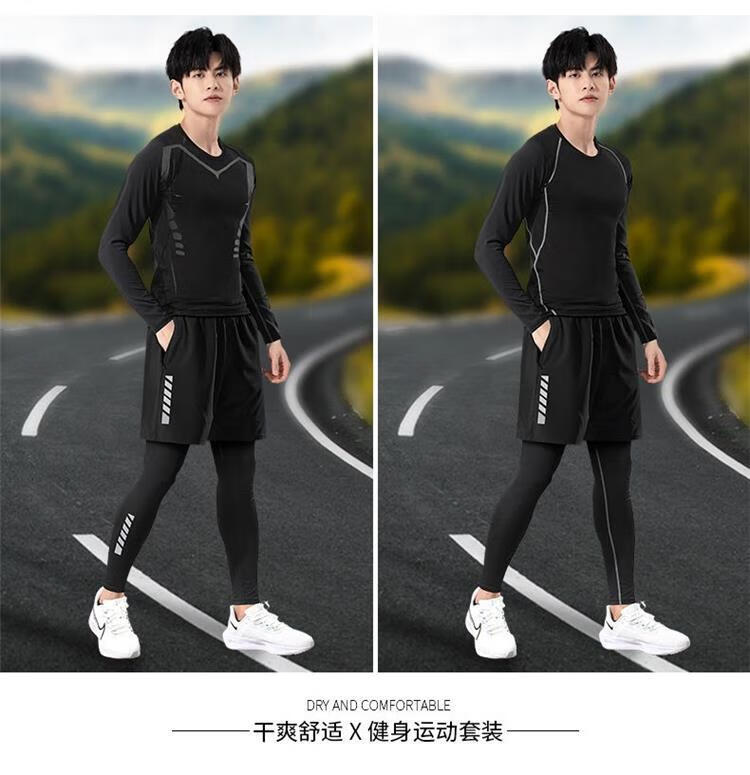 Bimax Cycling Jersey Set Men's Autumn Quick-Drying Tights Public Cycling High-Elastic Training Sports Running Sunscreen Shorts Sci-Fi Two-piece Set High-Elastic Quick-Drying _Buttless Cushion S_ Recommended 60-85Jin Jin is equal to 0.5kg