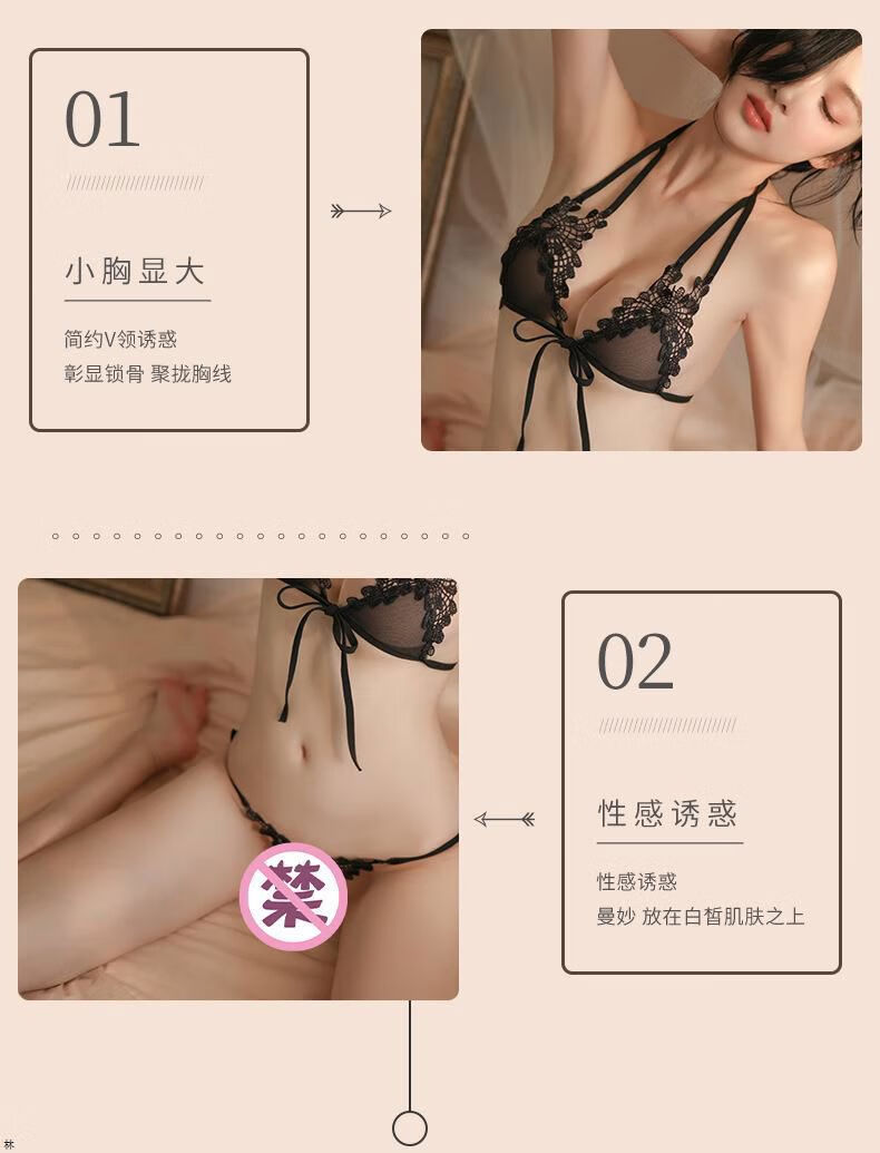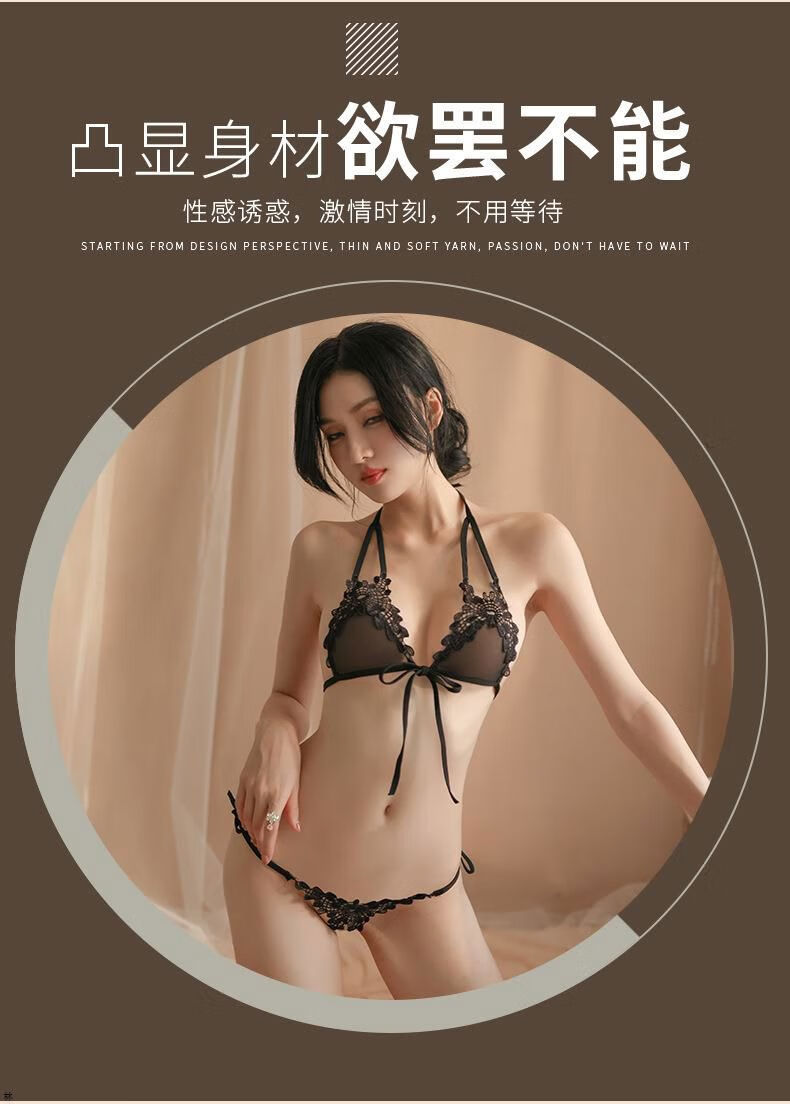 Three-point sexy underwear, sexy bikini, one string, ultra-small thong, strappy halterneck, tube top bra, 9 pieces, black