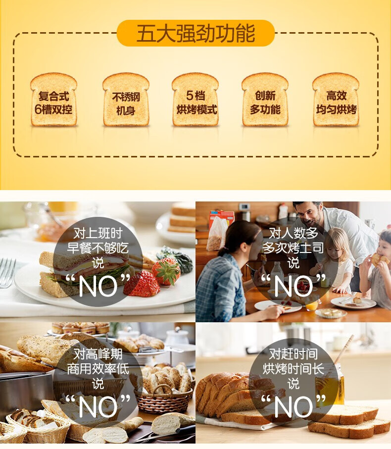 Youpin ecological chain same model Youpin toaster toaster commercial 4-piece 6-piece toaster heating machine HET-upgraded 6-piece toaster main picture video model