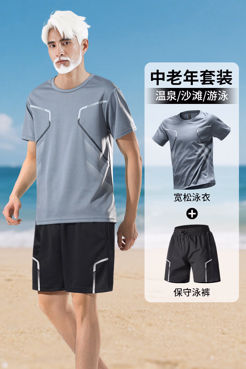 Baiszhuo elderly swimsuit male father middle-aged and elderly swimming trunks suit hot spring conservative beach adult new loose five-quarter pants gray suit loose_breathable_quick-drying M_90115Jin Jin equals 0.5 kg